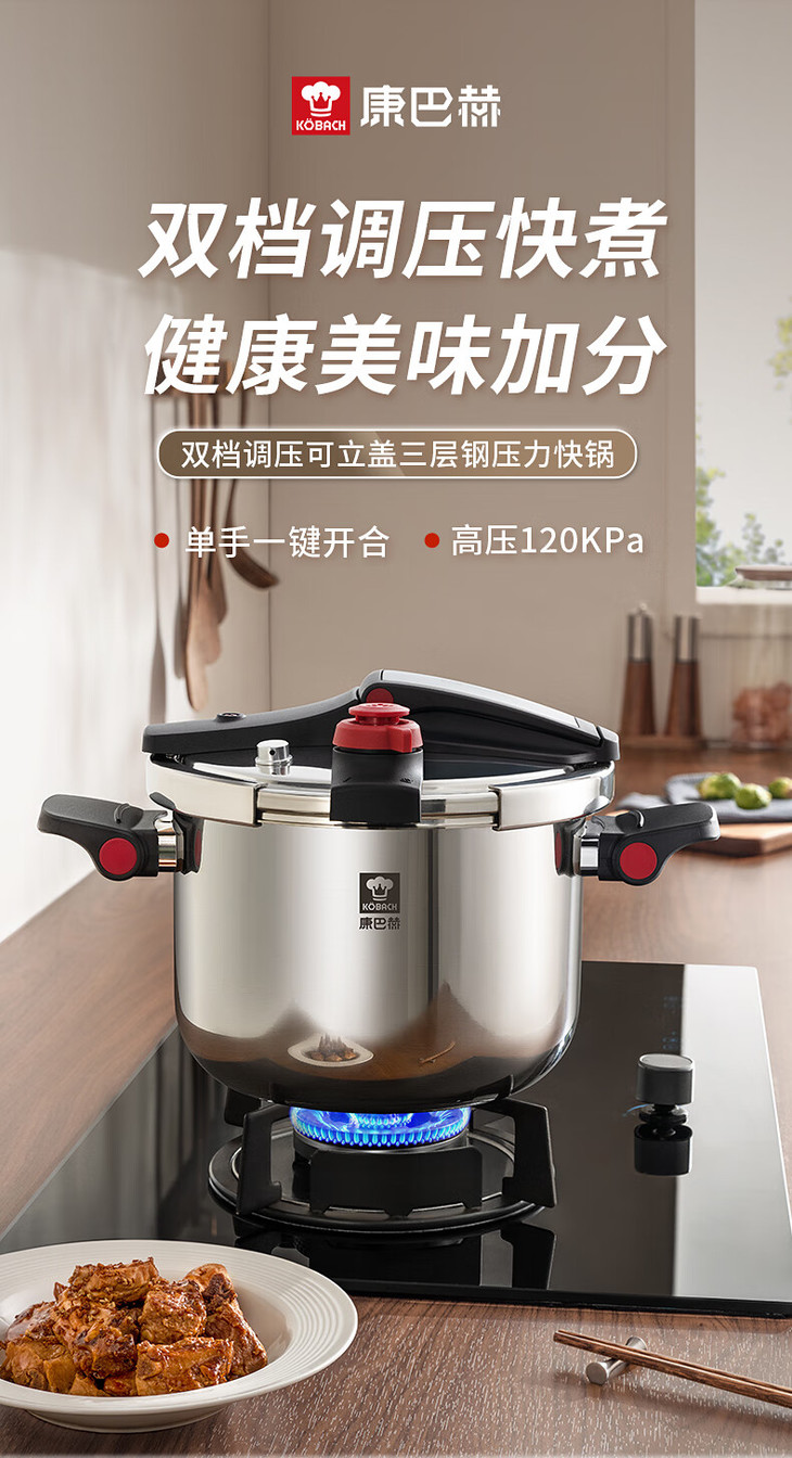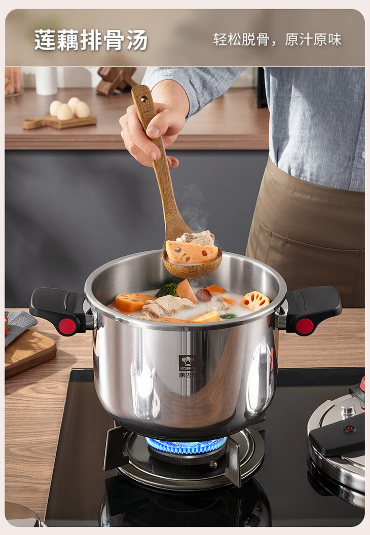 【康巴赫】新升级炫动双档位压力锅 更安全【22cm-5.5L】304不锈钢压力锅 三层钢压力快锅家用燃气电磁炉通用防爆高压锅【14050246】 DSZ22-6L