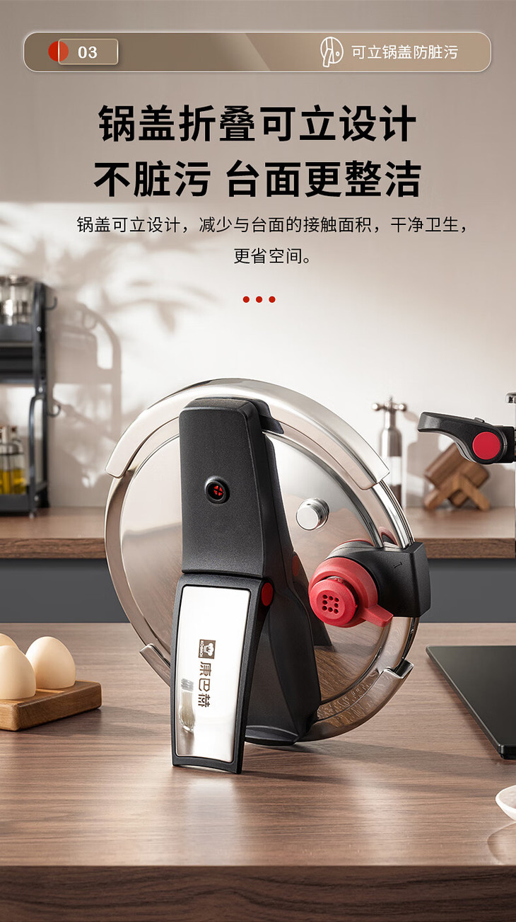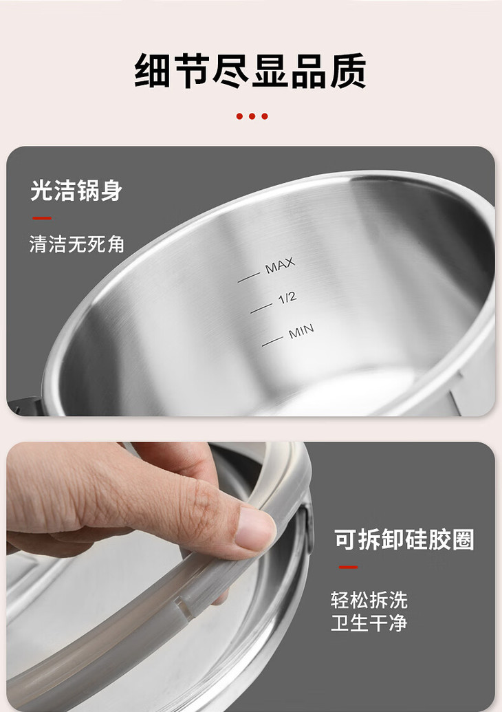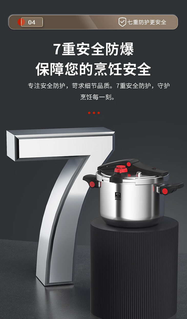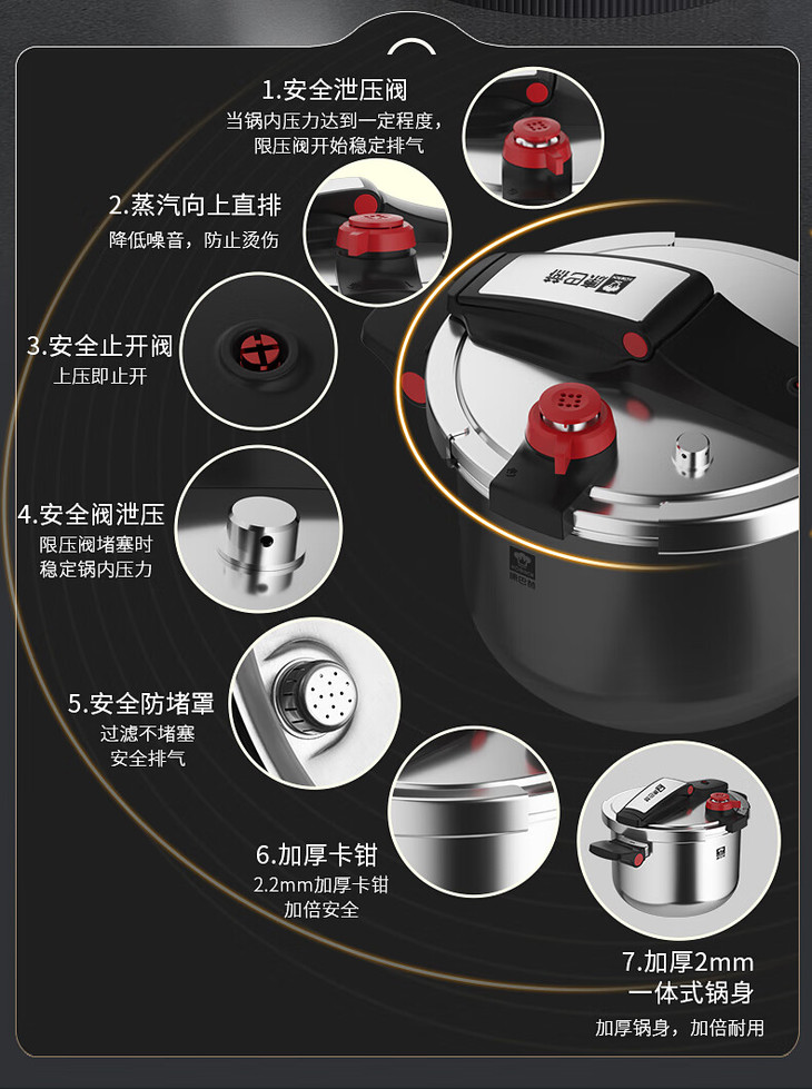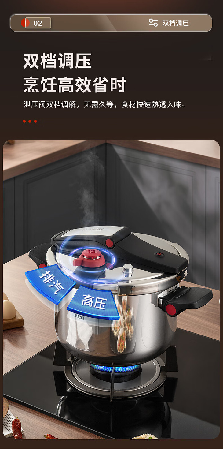 【康巴赫】新升级炫动双档位压力锅 更安全【22cm-5.5L】304不锈钢压力锅 三层钢压力快锅家用燃气电磁炉通用防爆高压锅【14050246】 DSZ22-6L 商品图0