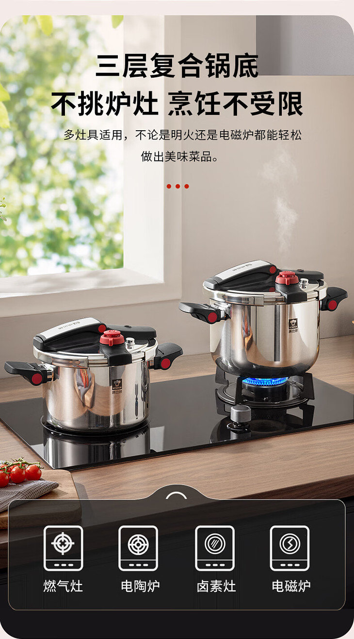 【康巴赫】新升级炫动双档位压力锅 更安全【22cm-5.5L】304不锈钢压力锅 三层钢压力快锅家用燃气电磁炉通用防爆高压锅【14050246】 DSZ22-6L 商品缩略图0