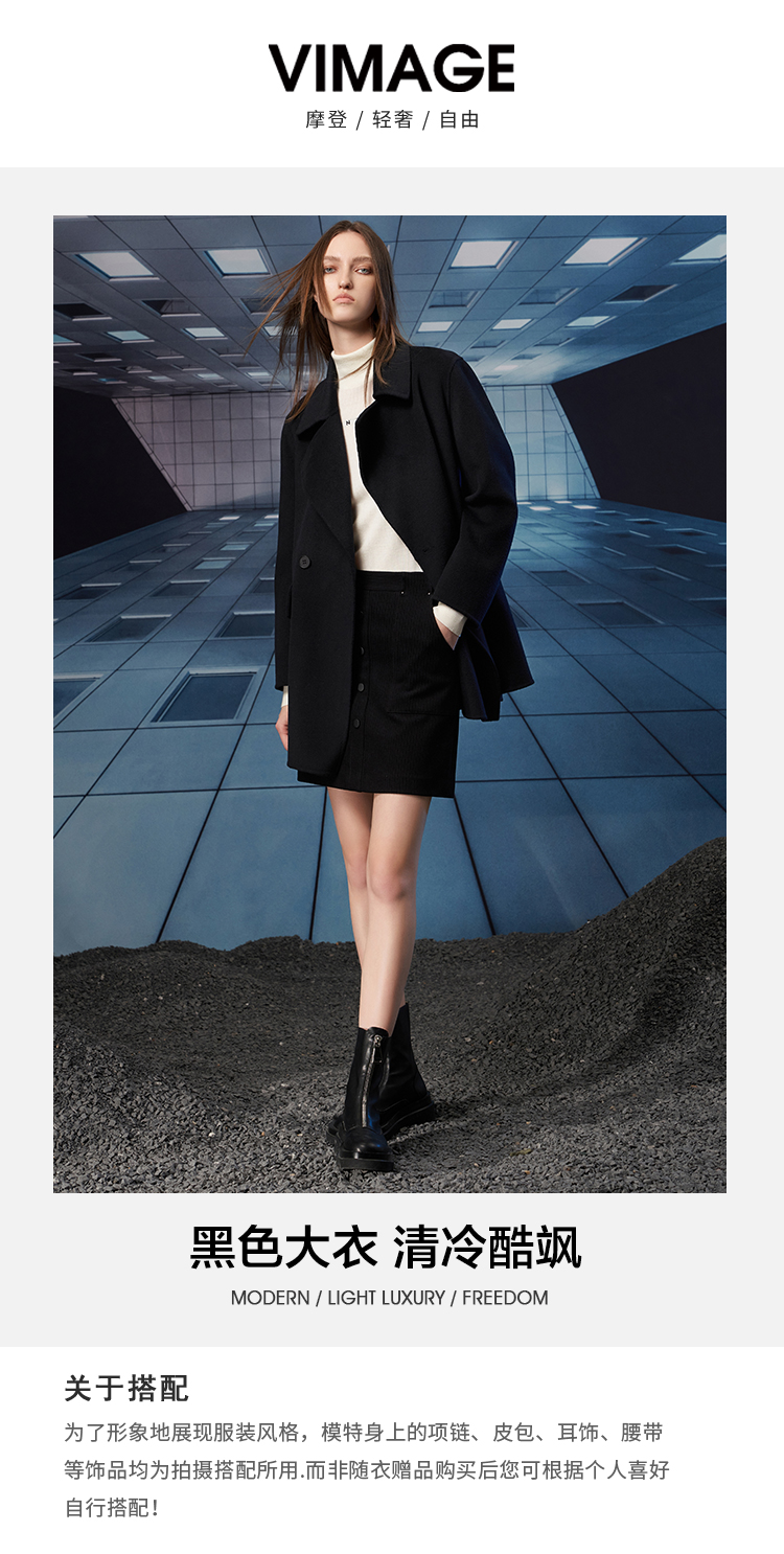 VIMAGE纬漫纪冬季新款翻领洋气显瘦中长款外套V1814404
