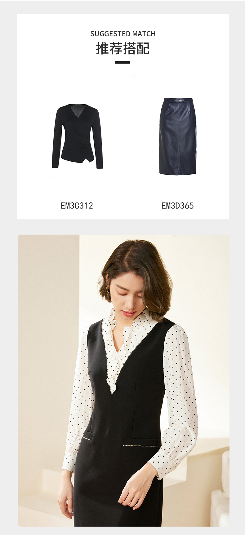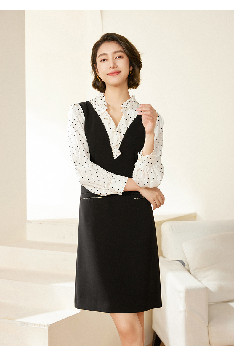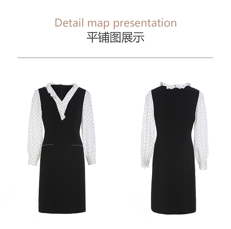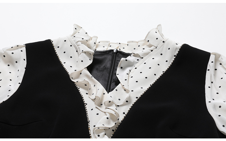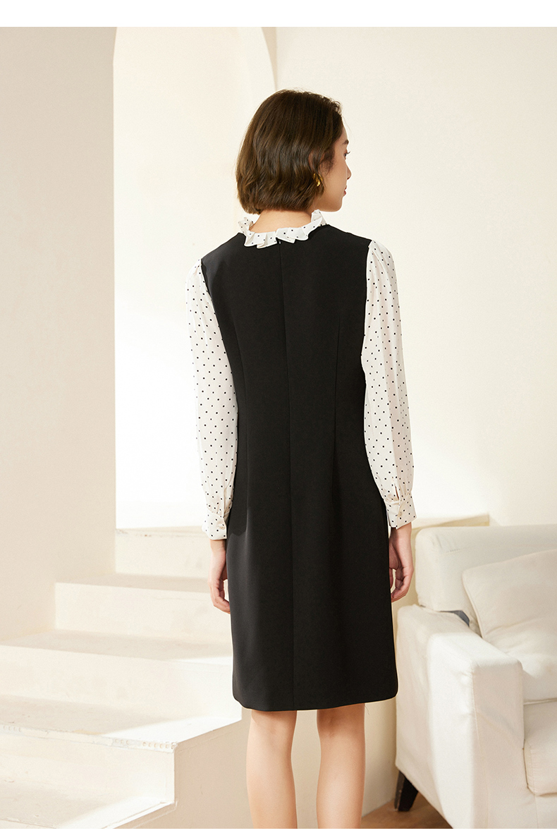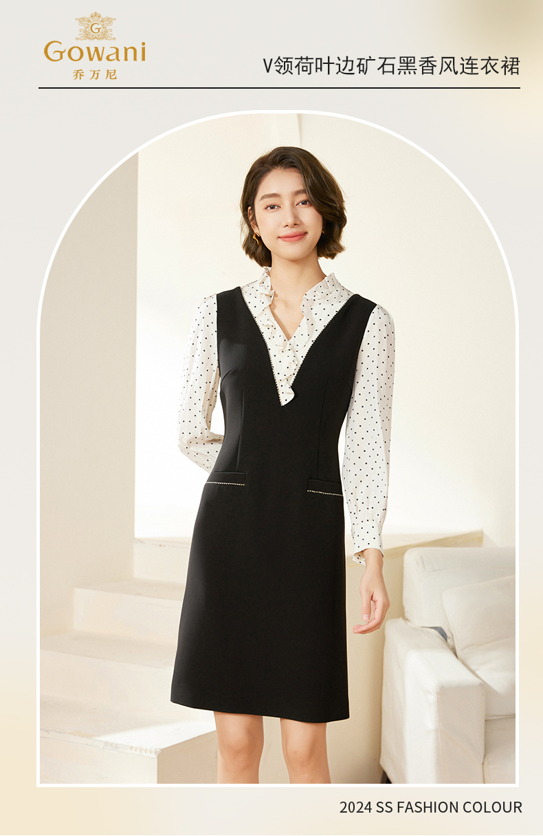 乔万尼连衣裙新款女春秋荷叶边小香风假两件EM3E419