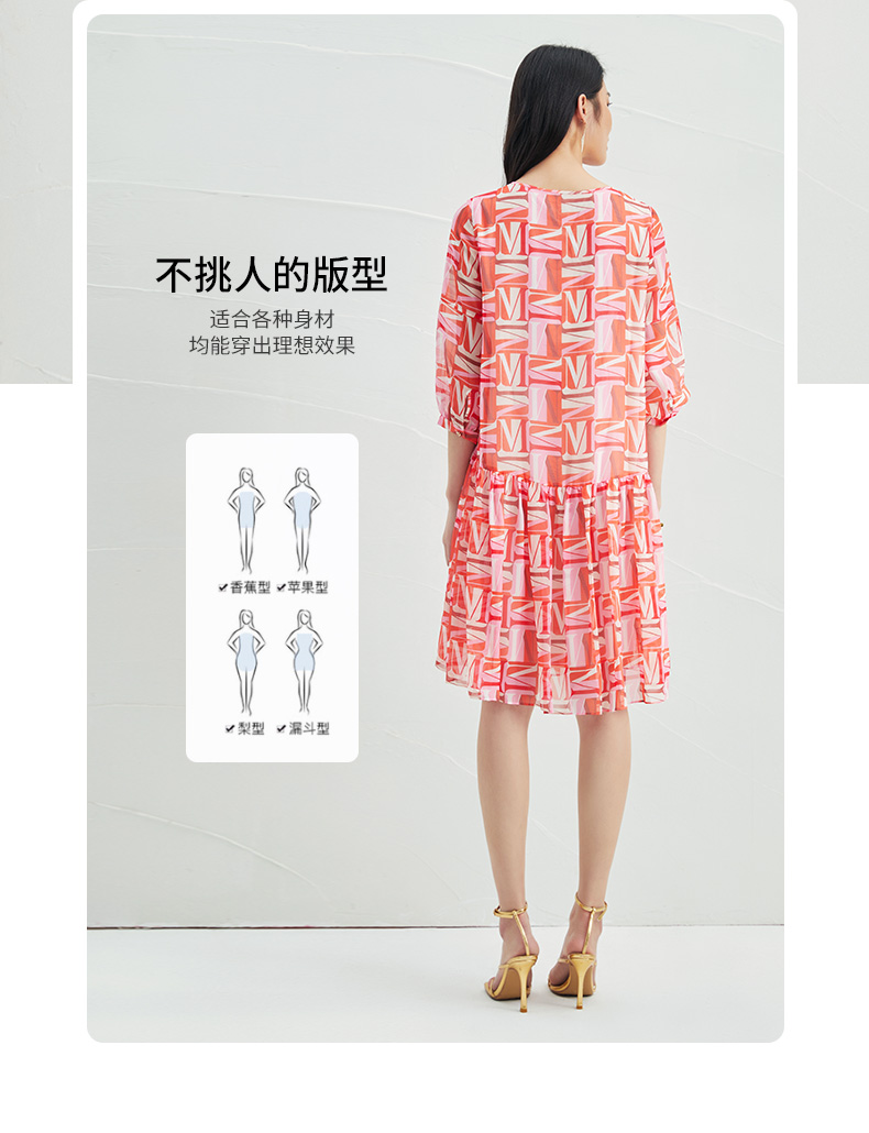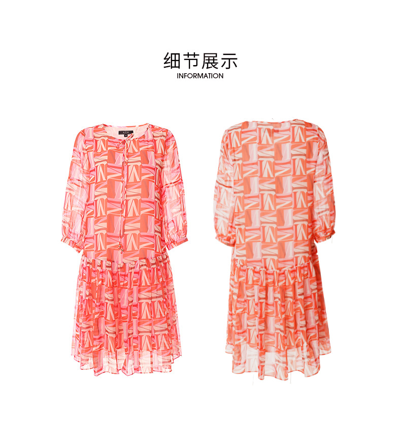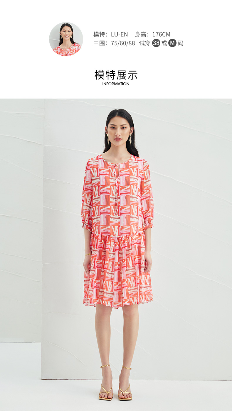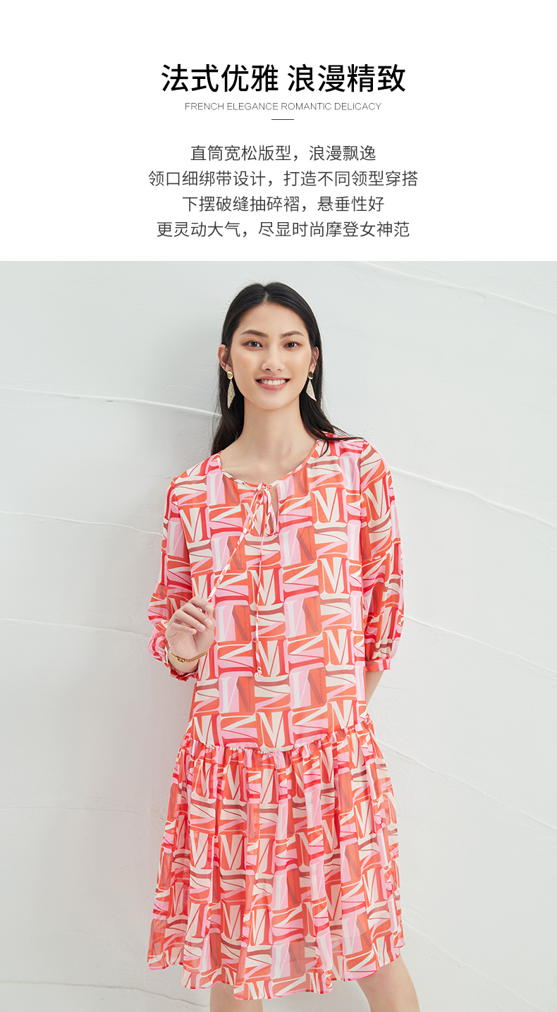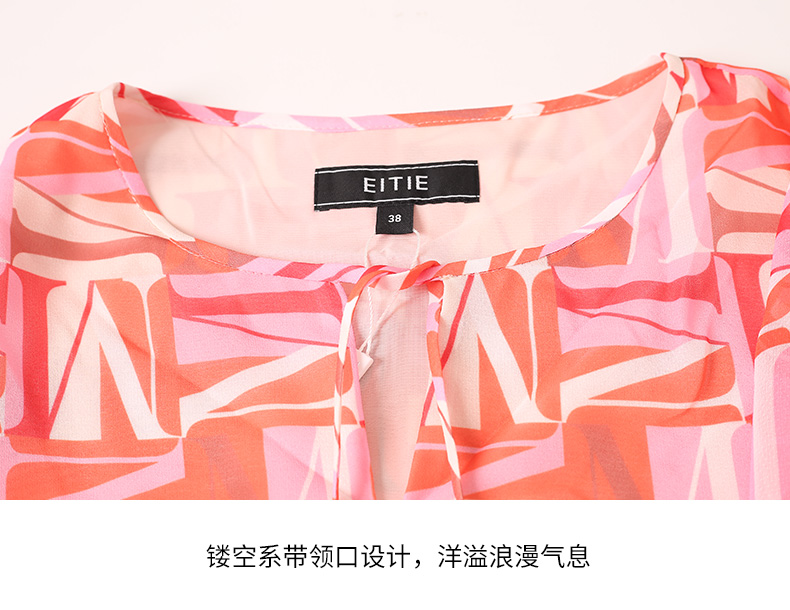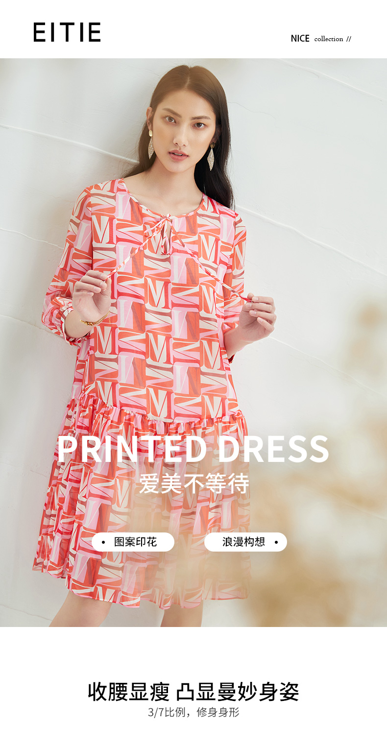 EITIE爱特爱夏季新款时尚减龄五分袖修身印花连衣裙女短款连衣裙6607307