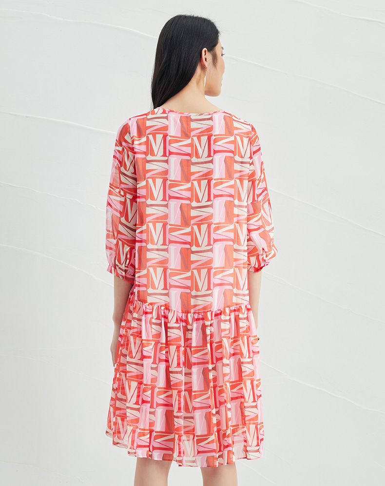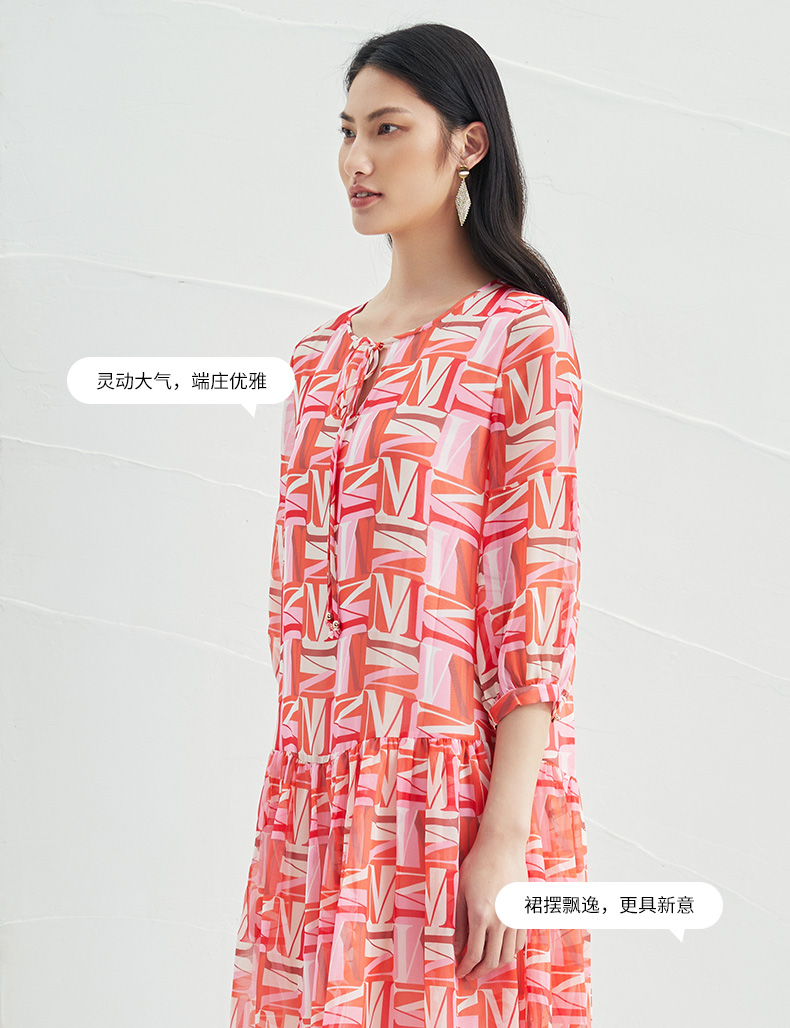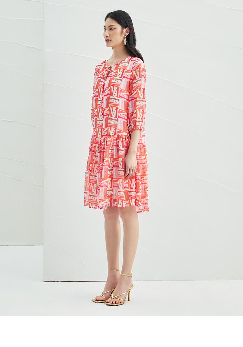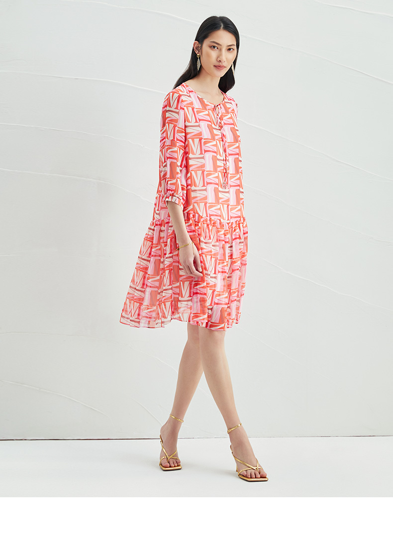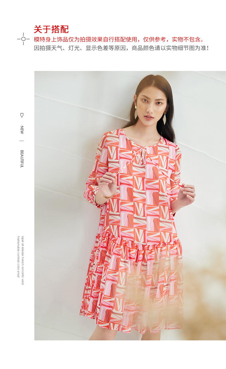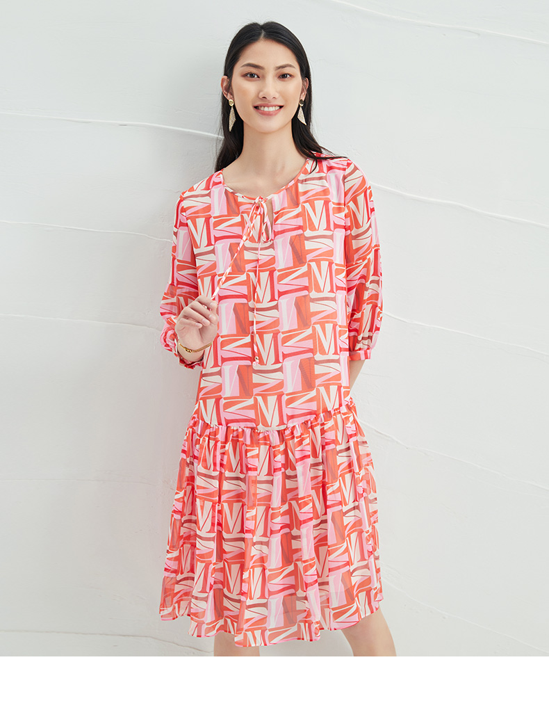EITIE爱特爱夏季新款时尚减龄五分袖修身印花连衣裙女短款连衣裙6607307