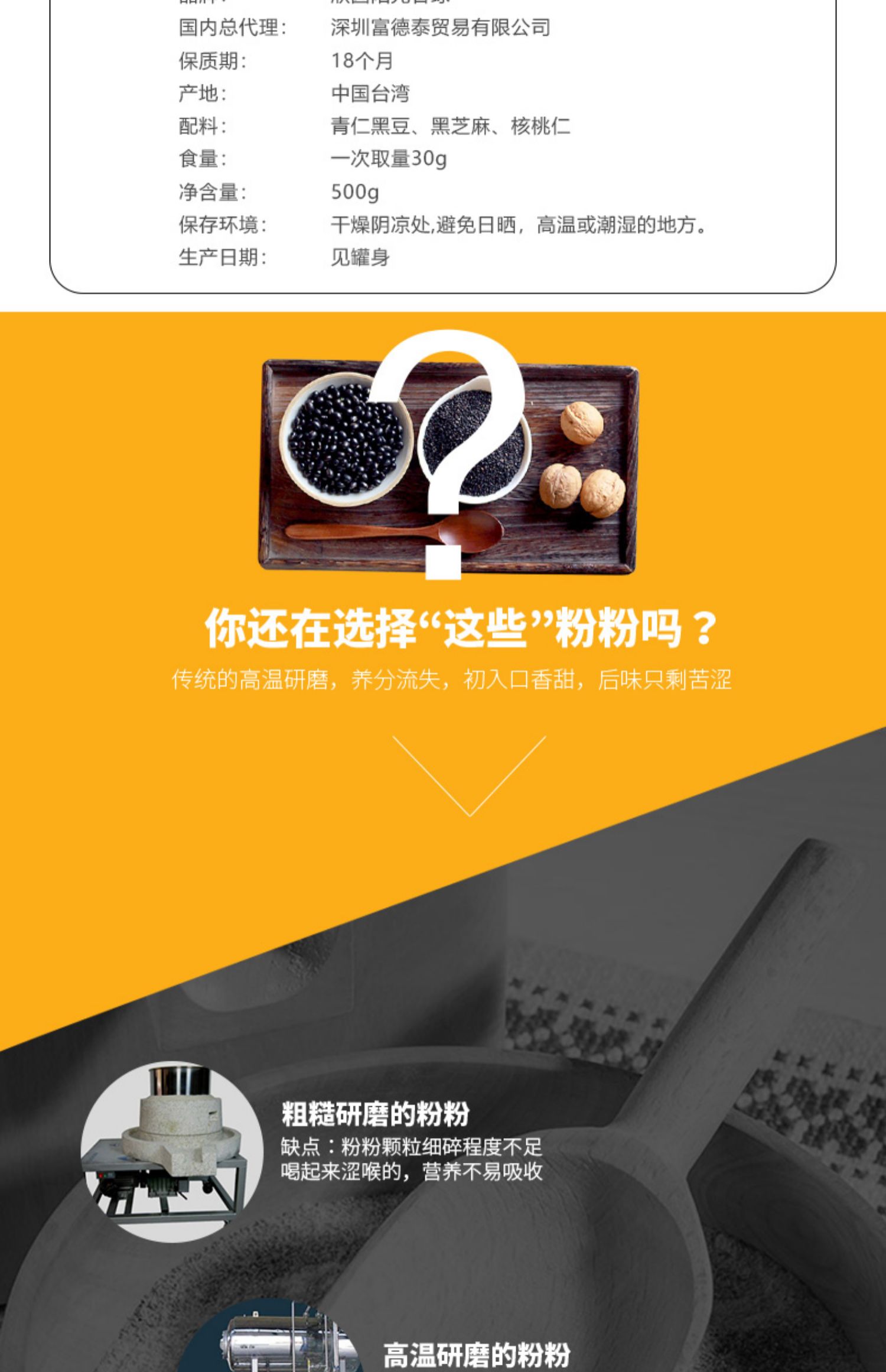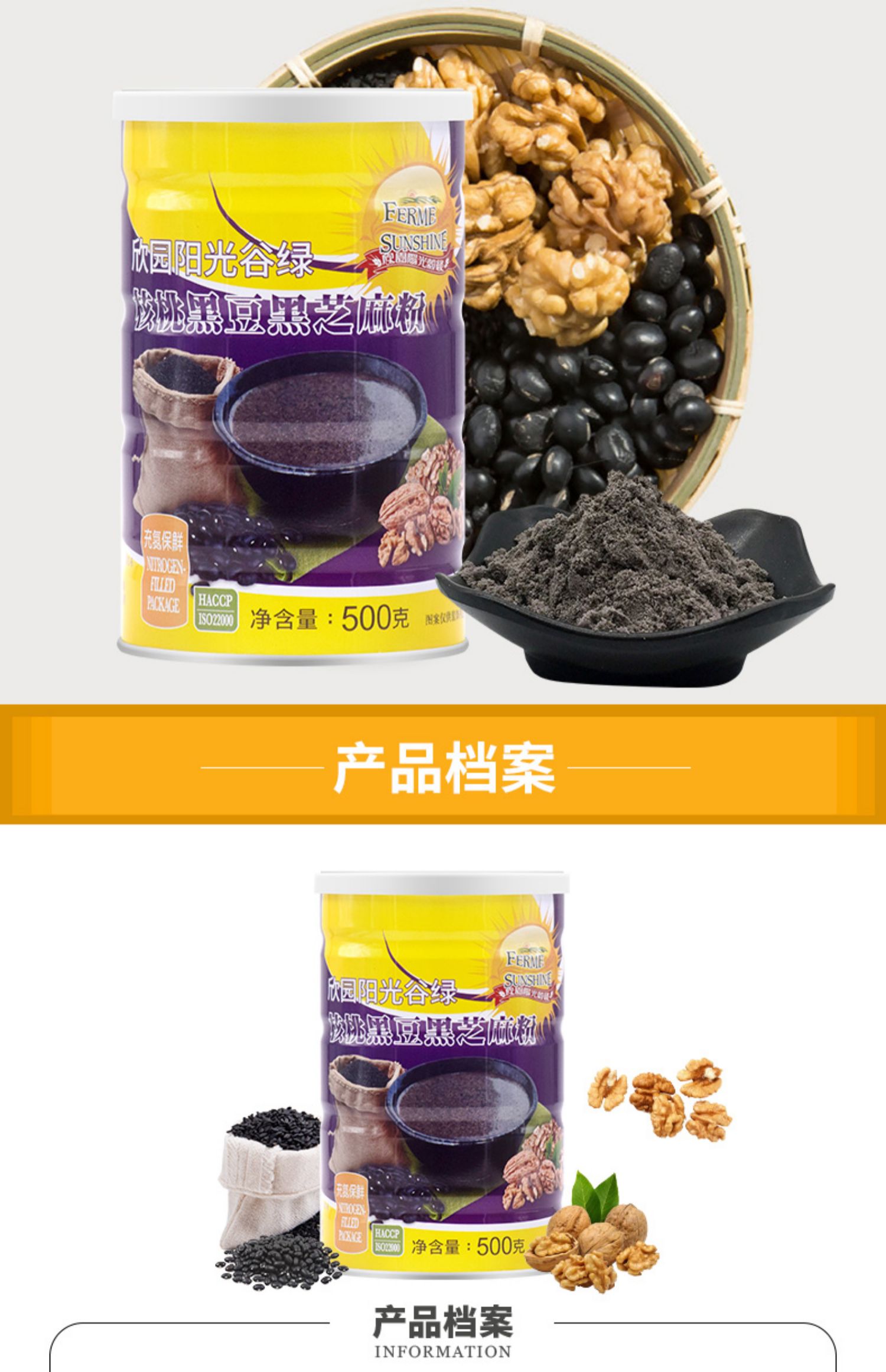 中国台湾欣园阳光谷绿核桃黑豆黑芝麻粉500g