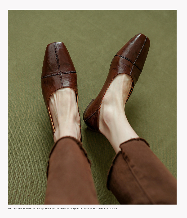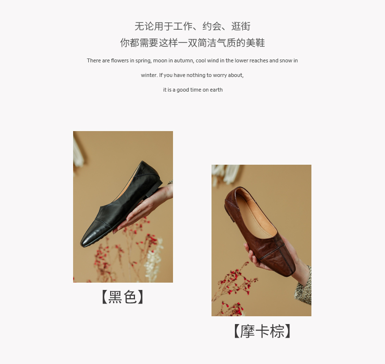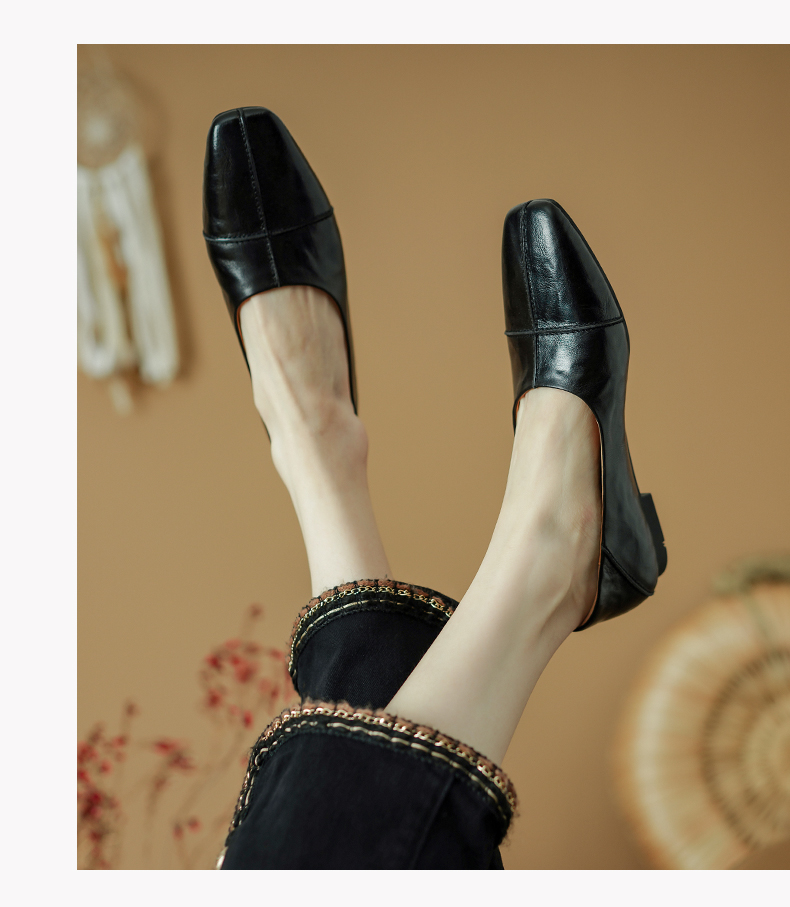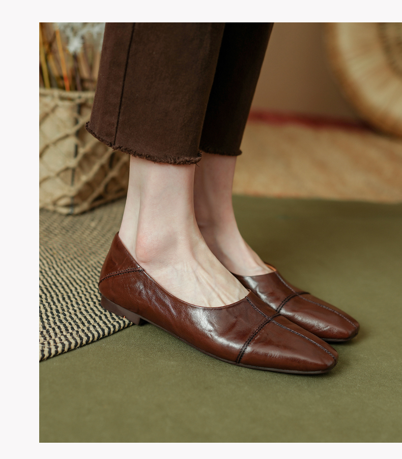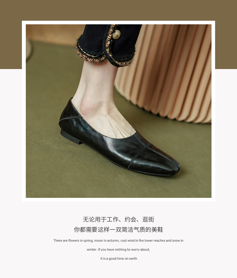 【预售5天】纯色简约,升级版胎水牛皮浅口平底单鞋PS1705