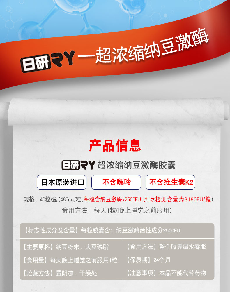 日研日本超浓缩纳豆激酶胶囊1盒体验装40粒