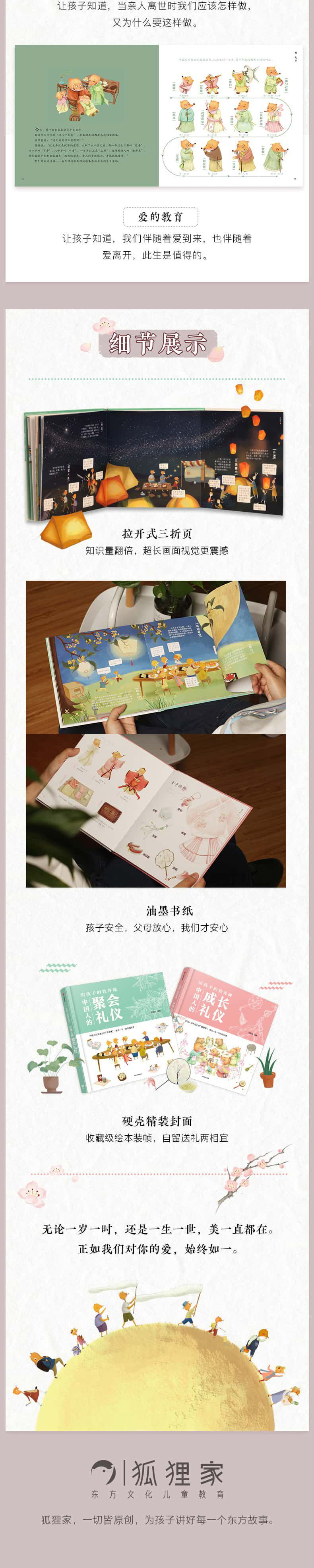 狐狸家,东方文化儿童教育品牌,秉持着“一切皆原创”的理念,致力于为孩子讲好每一个东方故事。狐狸家唯愿中国儿童爱上母体文化,学会感时、惜物、得体,学会一世从容的做人风范。