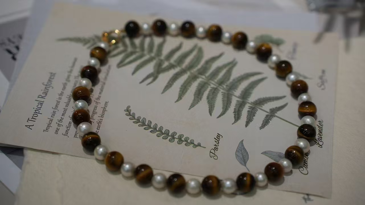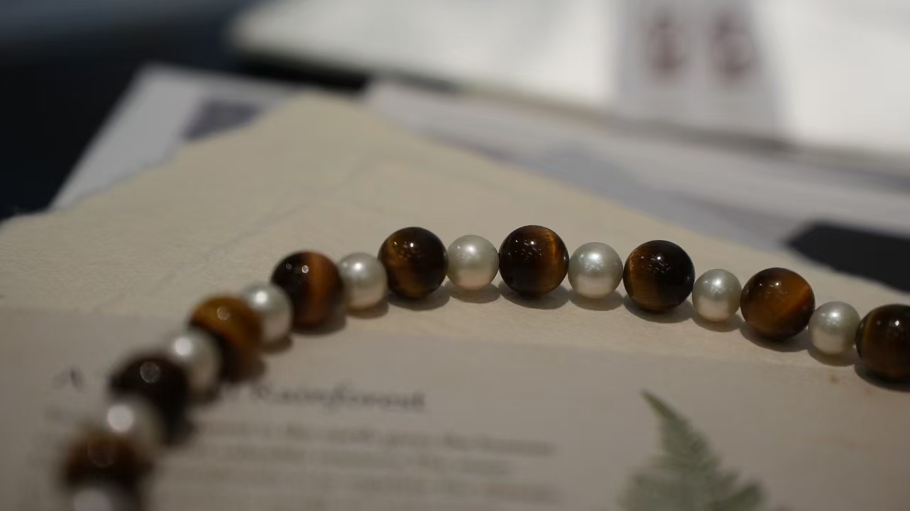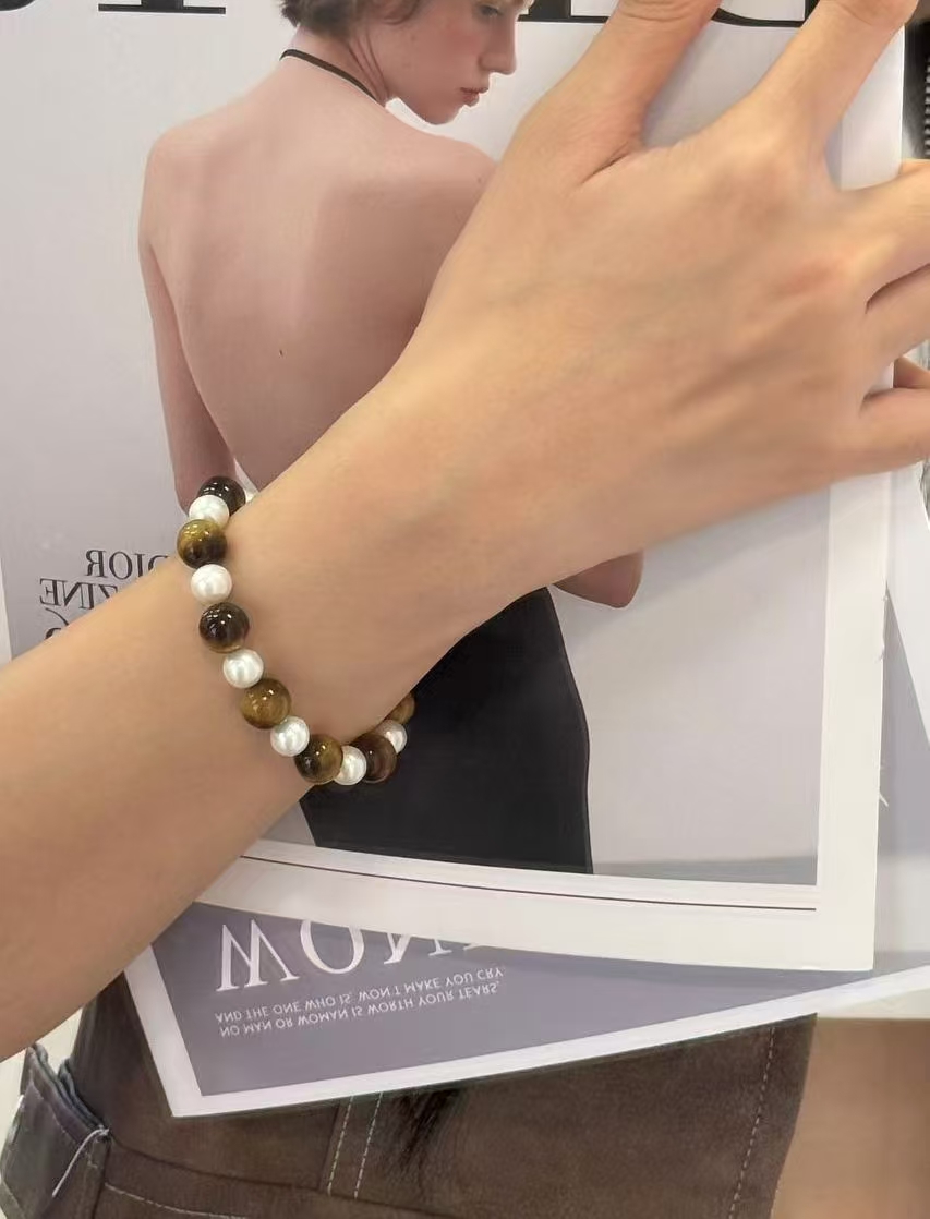海外市场卖两千多的👇,珍珠用的全部都是正圆无暇的无核淡水珍珠。好漂亮。虎眼石也是天然石哦。质感满满。