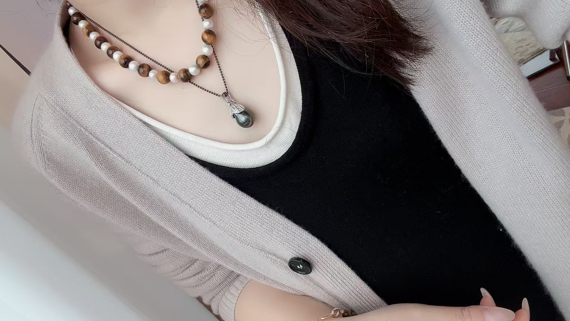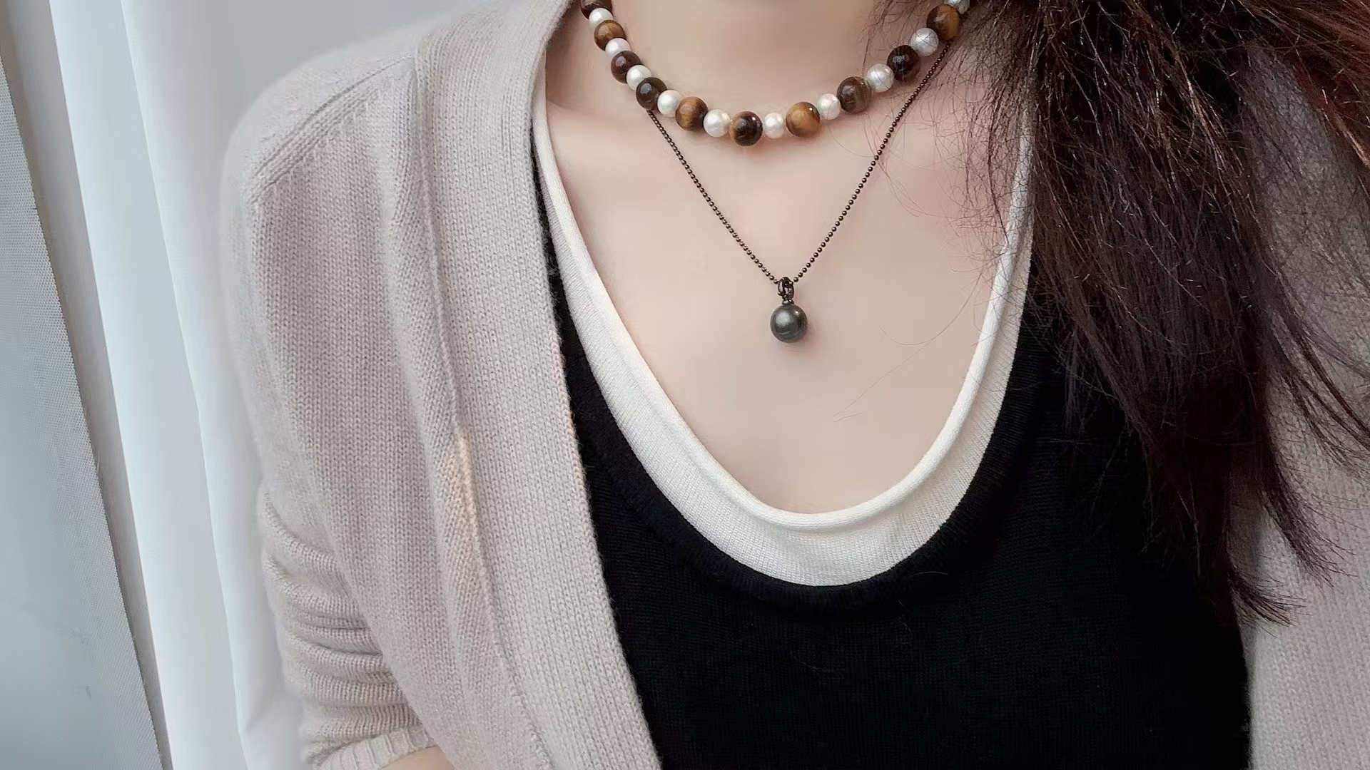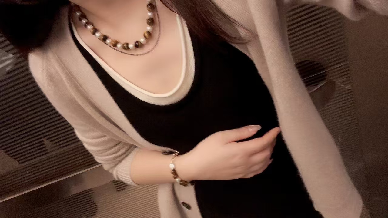 【甄珠贝】 爱惨了的雅丹色系!天然虎眼石和正圆无暇珍珠项链,满满的秋冬氛围感