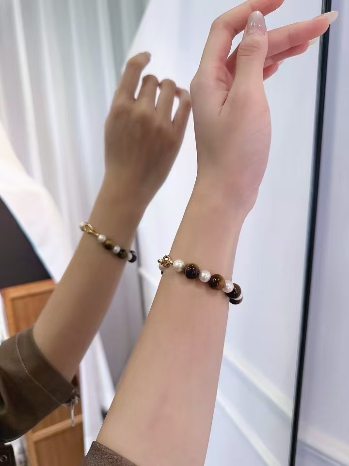 新品,高品质虎眼石10mm+珍珠7-8mm,用的是天然虎眼石,和正圆无暇强光的珍珠。