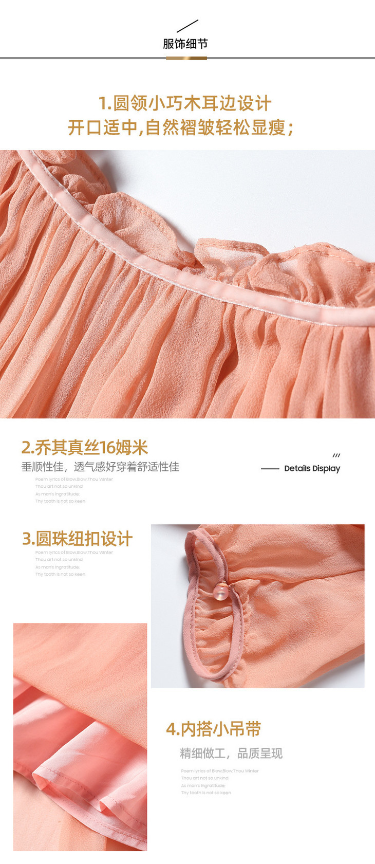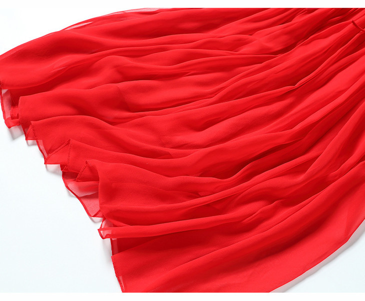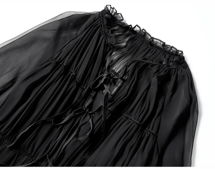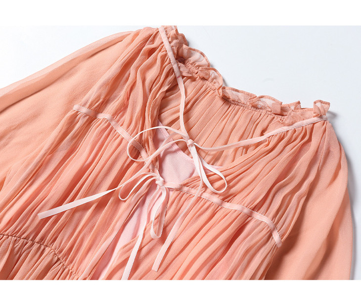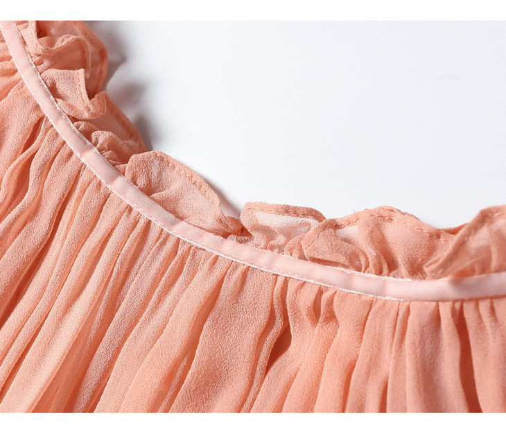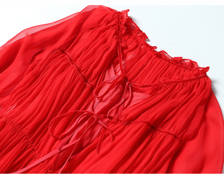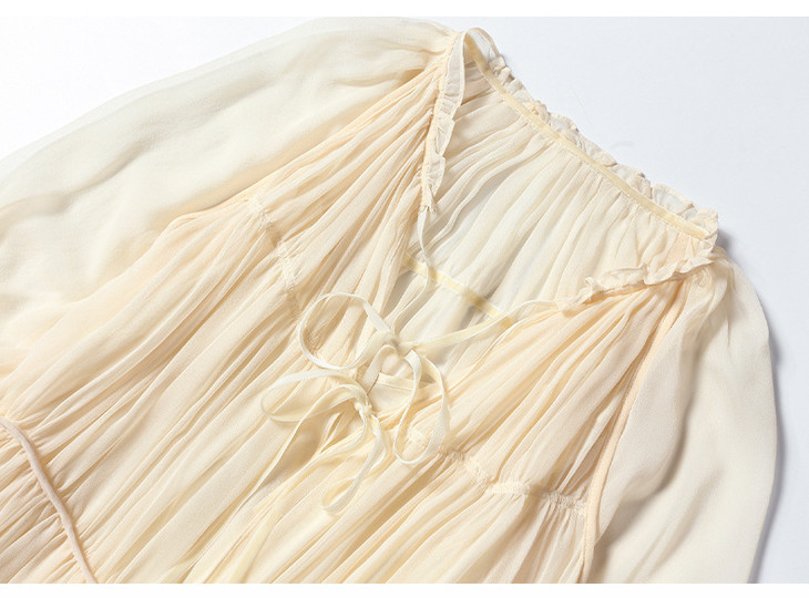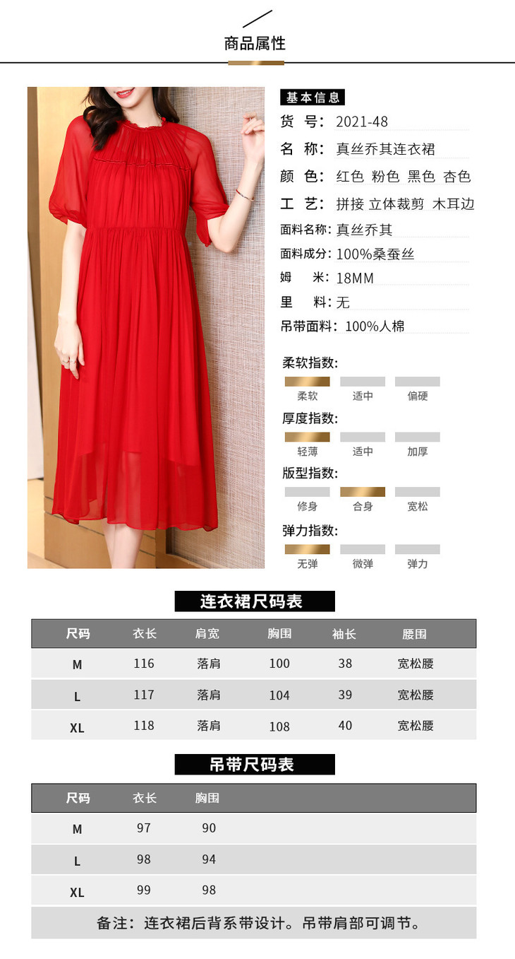 NYT- 2021_48-2021夏季新款圆领木耳边宽松a版系带纯色气质通勤真丝乔其连衣裙