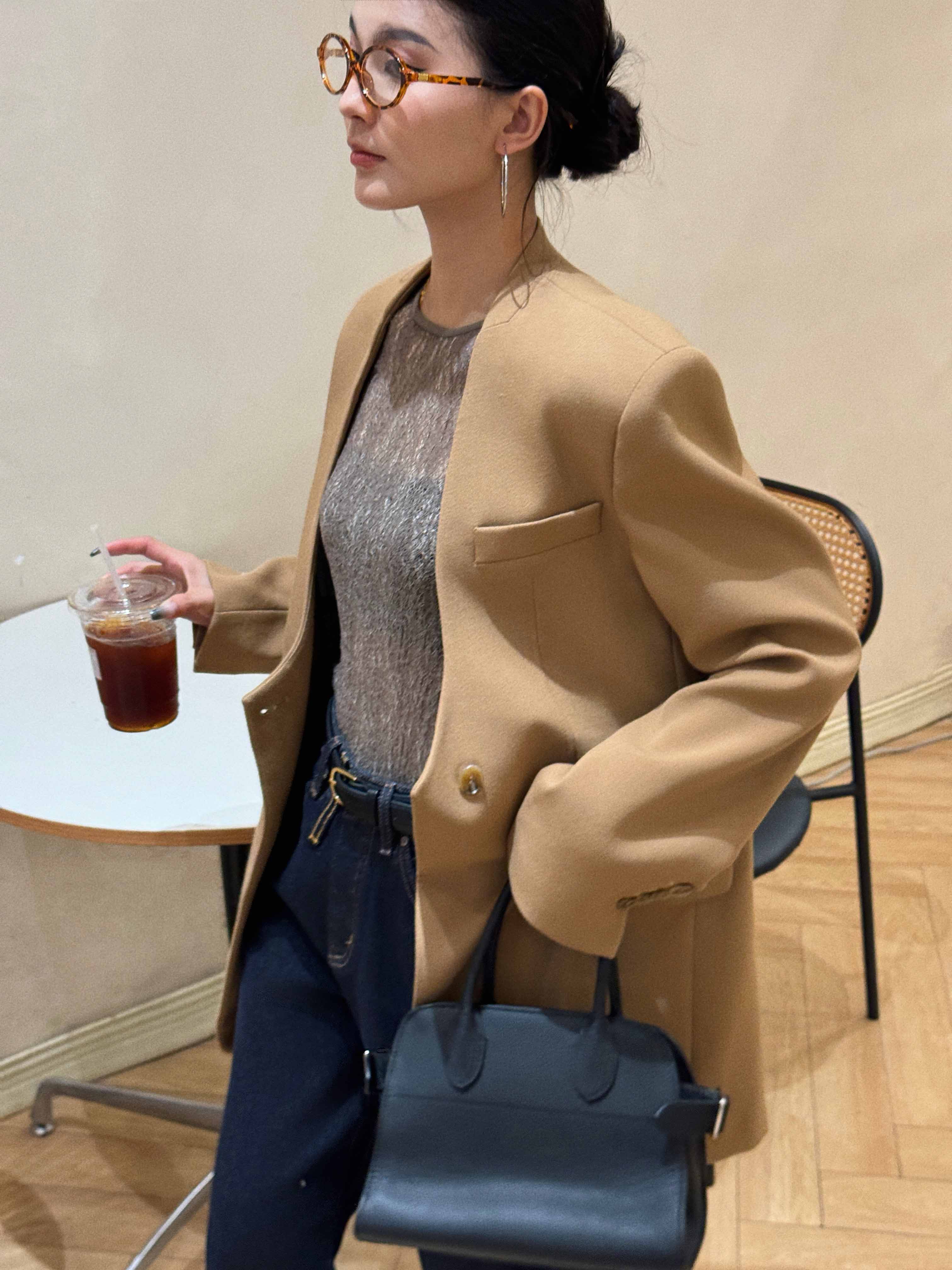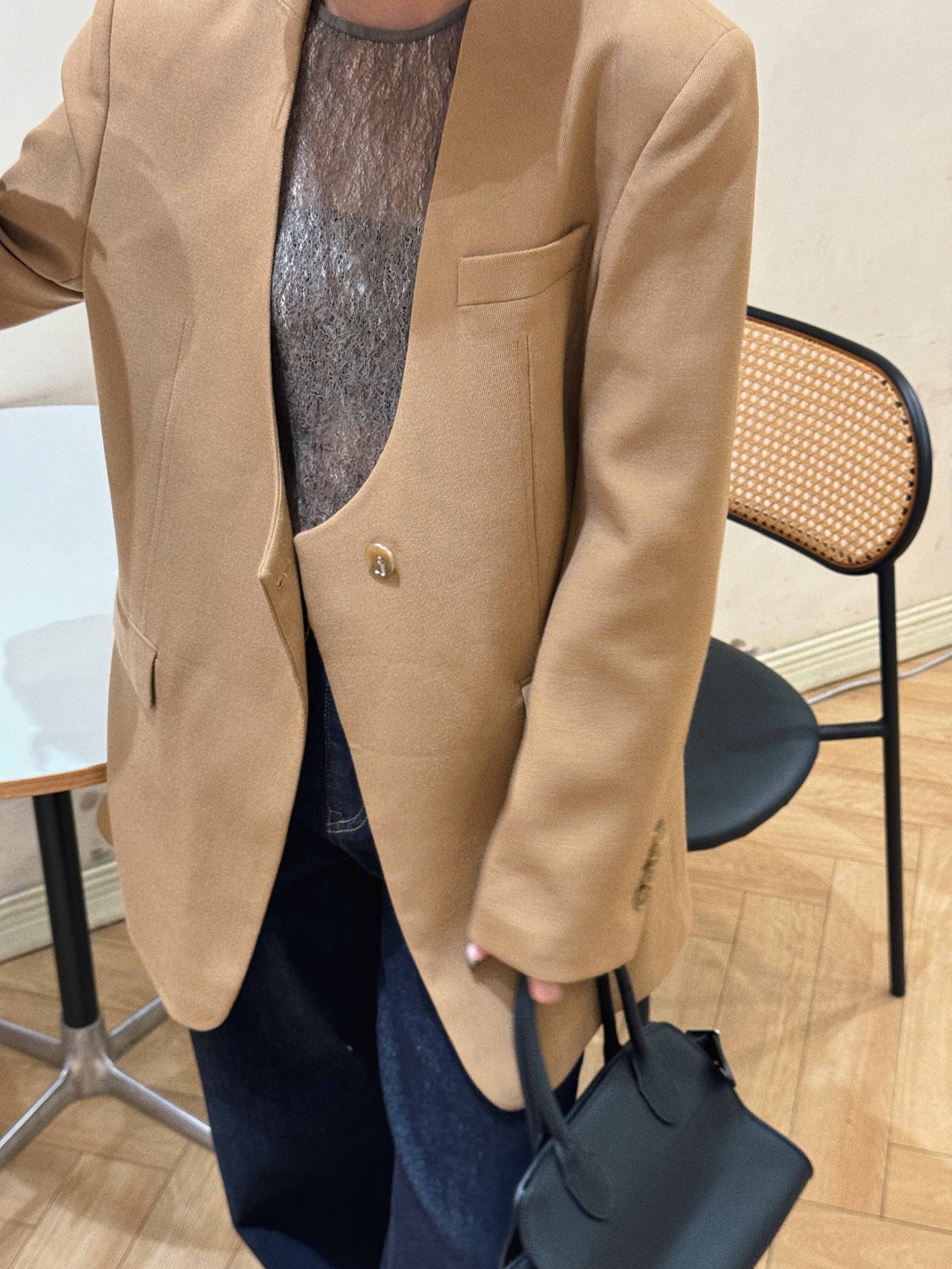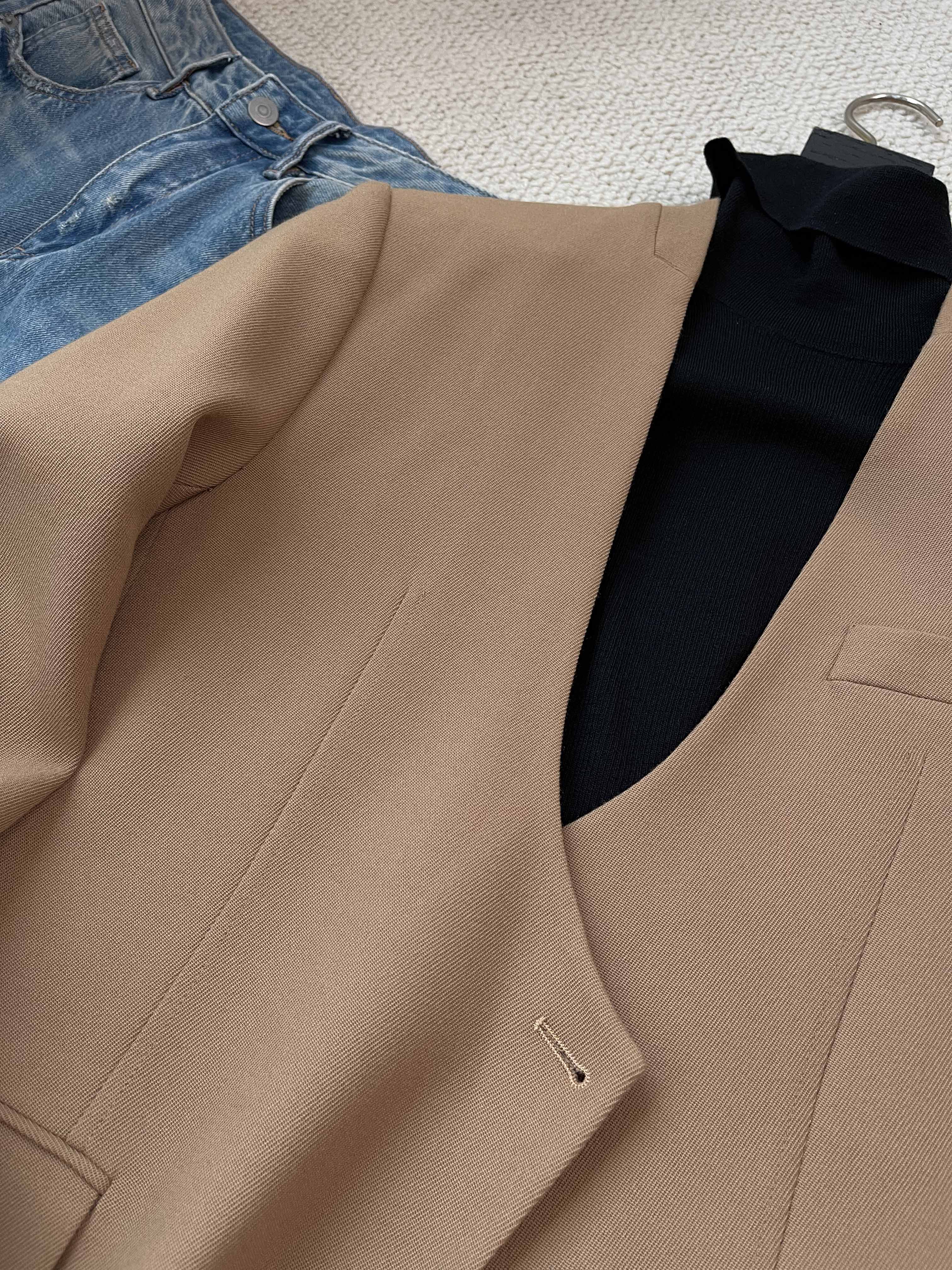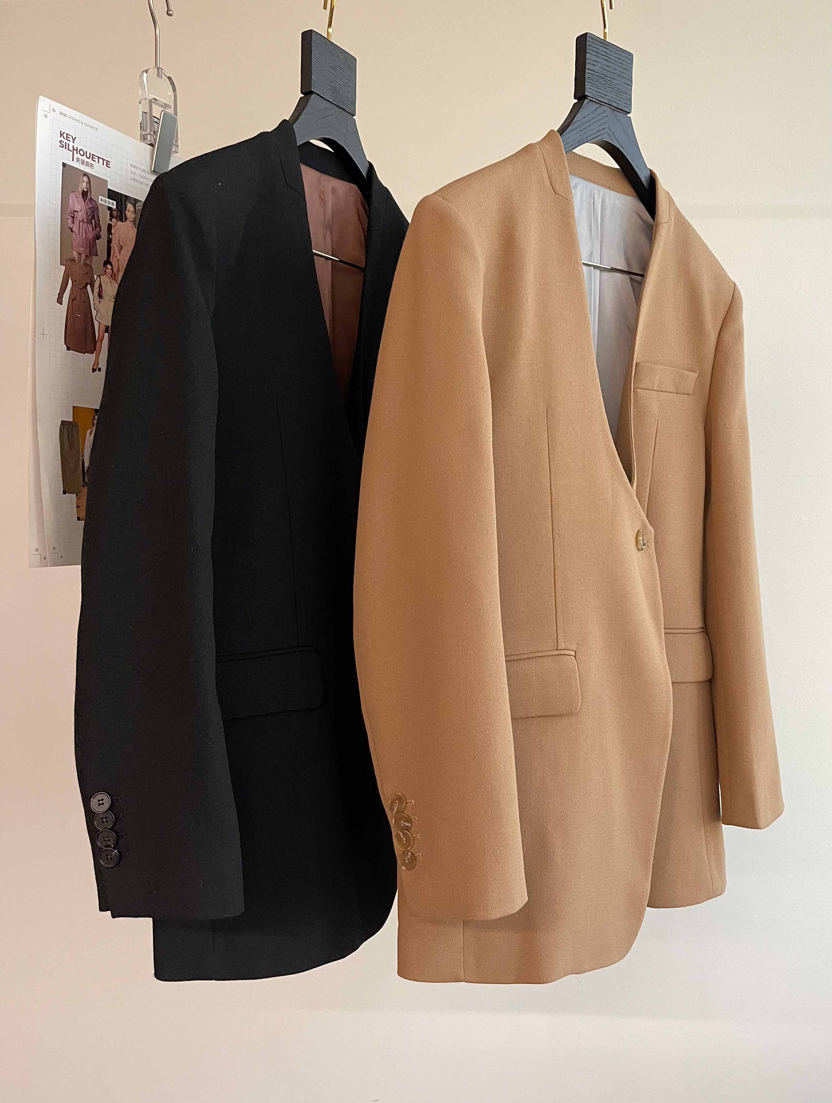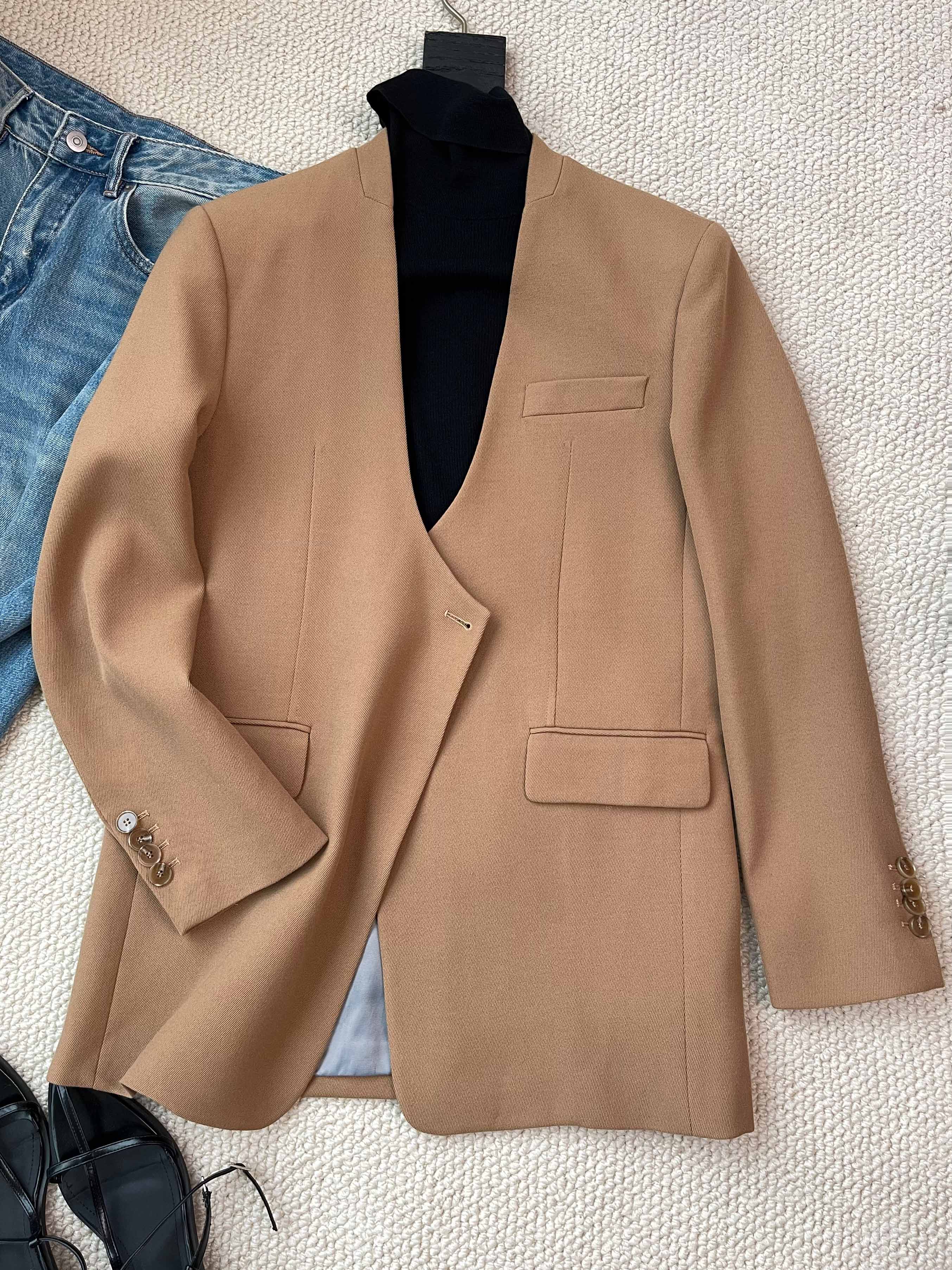 顺丰包邮洛诗琳35706设通勤复穿非常高的设计感U领羊毛西装160459