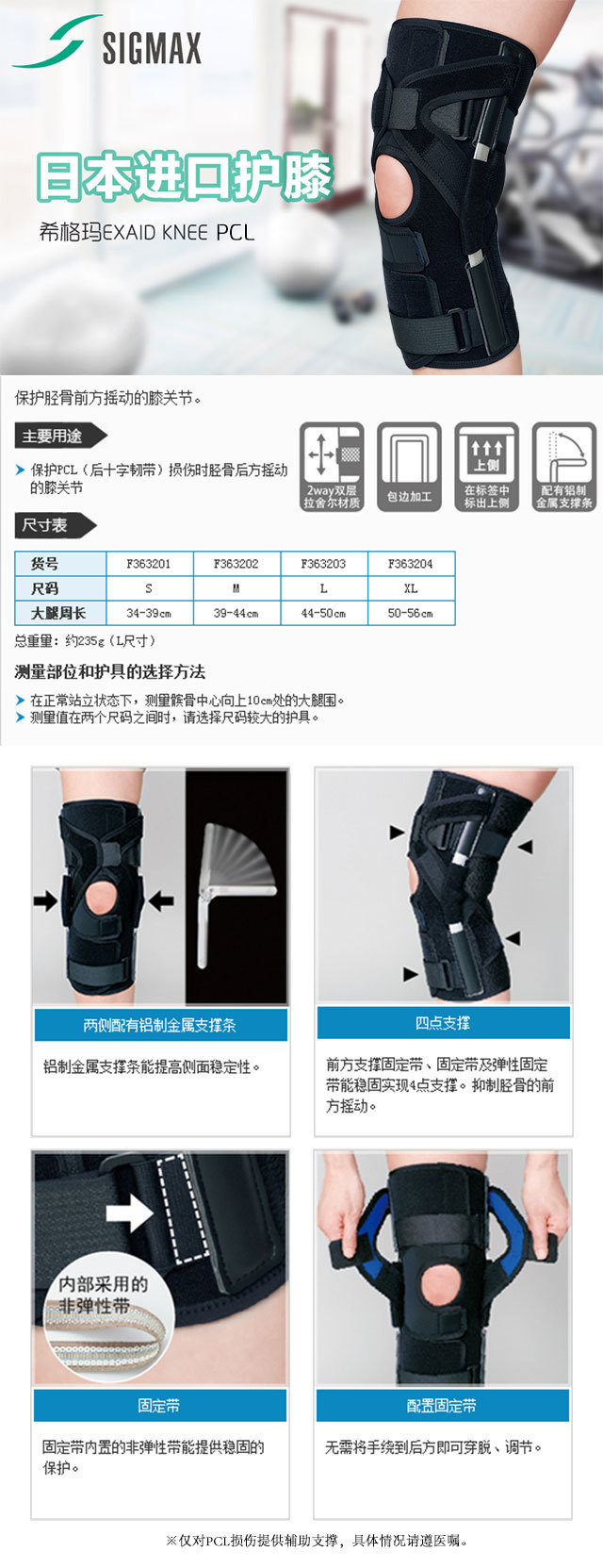 【日本进口护具品牌Sigmax】EXAID KNEE PCL 膝盖后交叉韧带护具