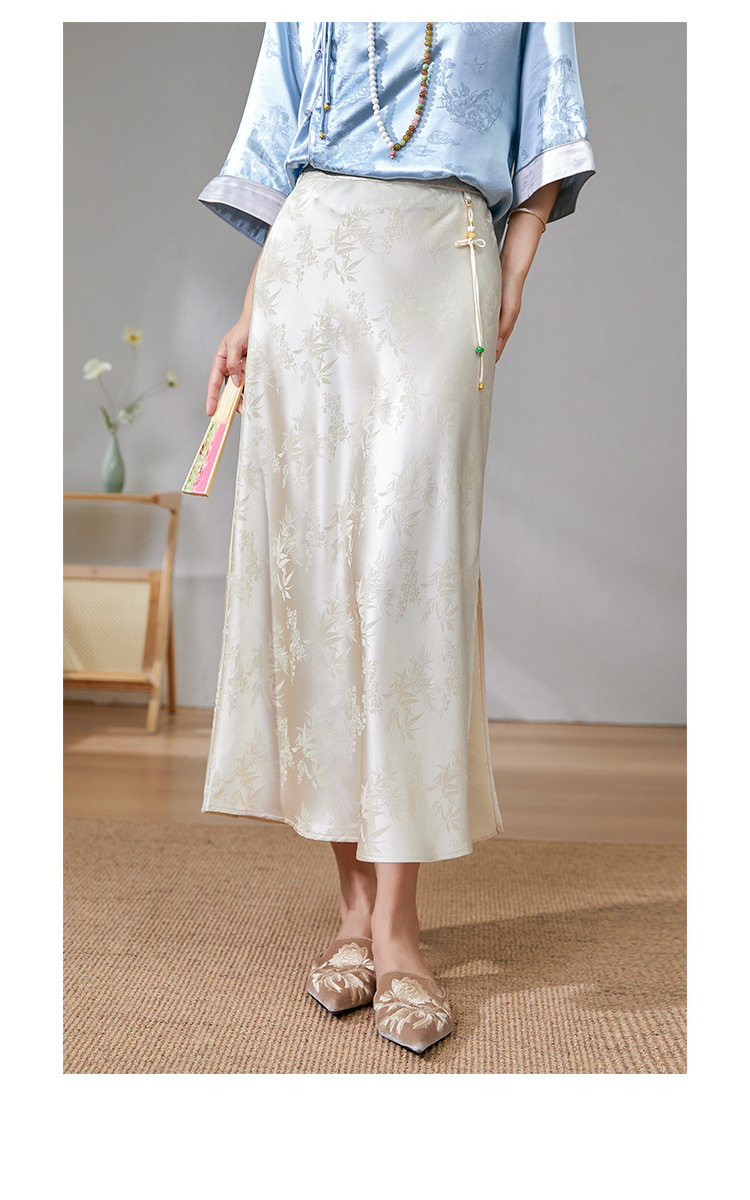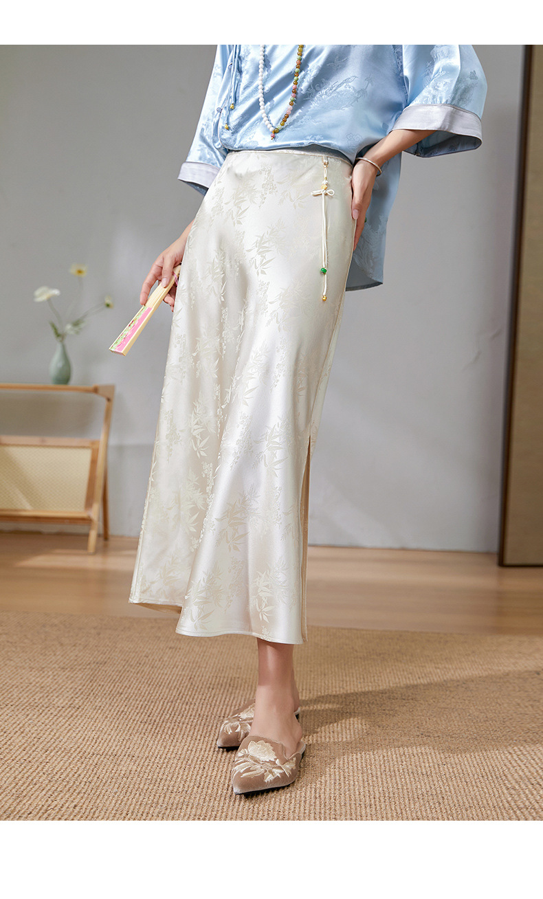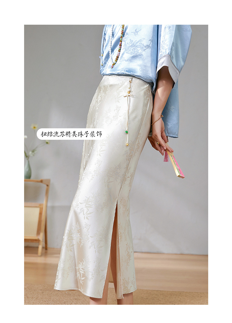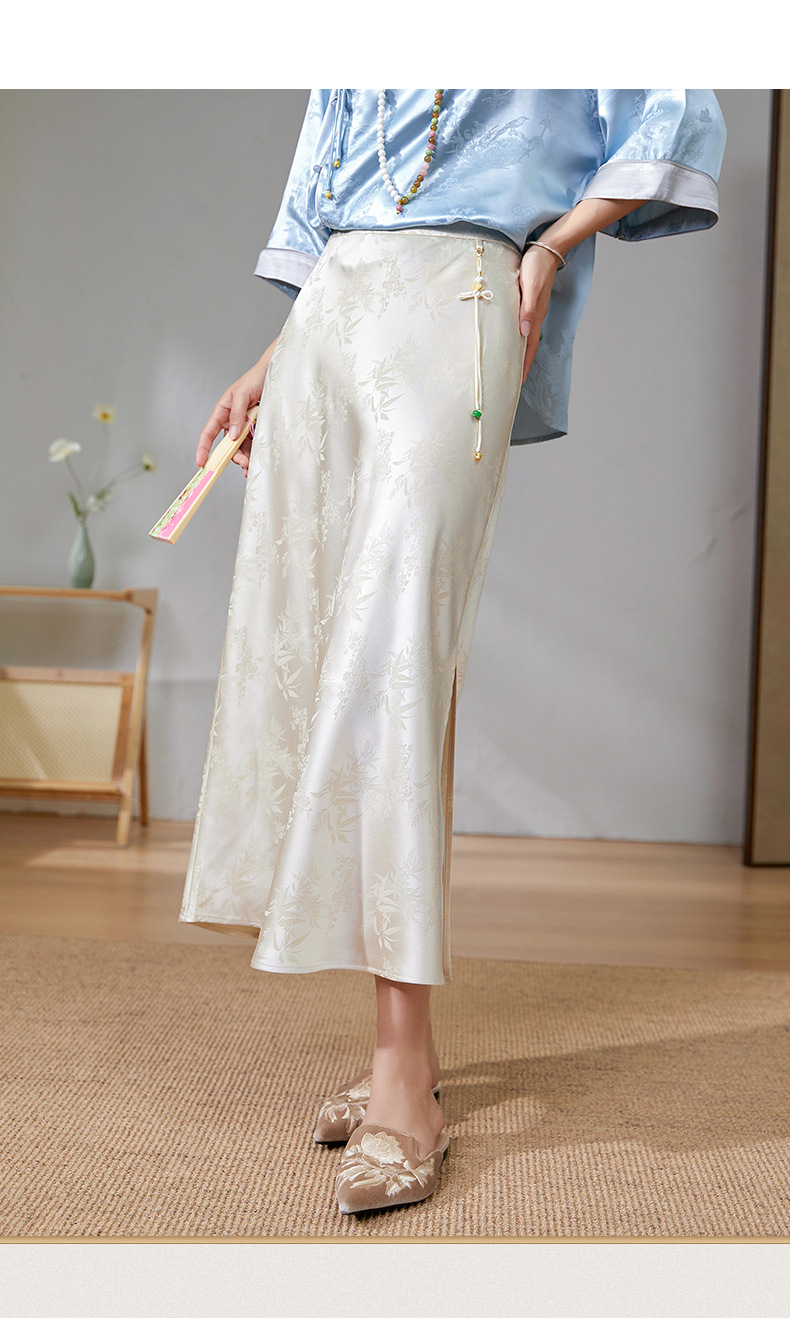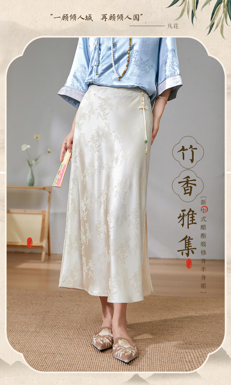 「自」全新升级【铂金会员358/天猫479/差价121】(52135)洛诗琳新中式三醋酸提花半裙2025夏季高腰开叉显瘦国风半裙