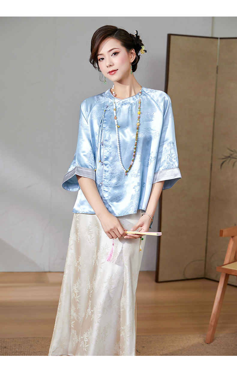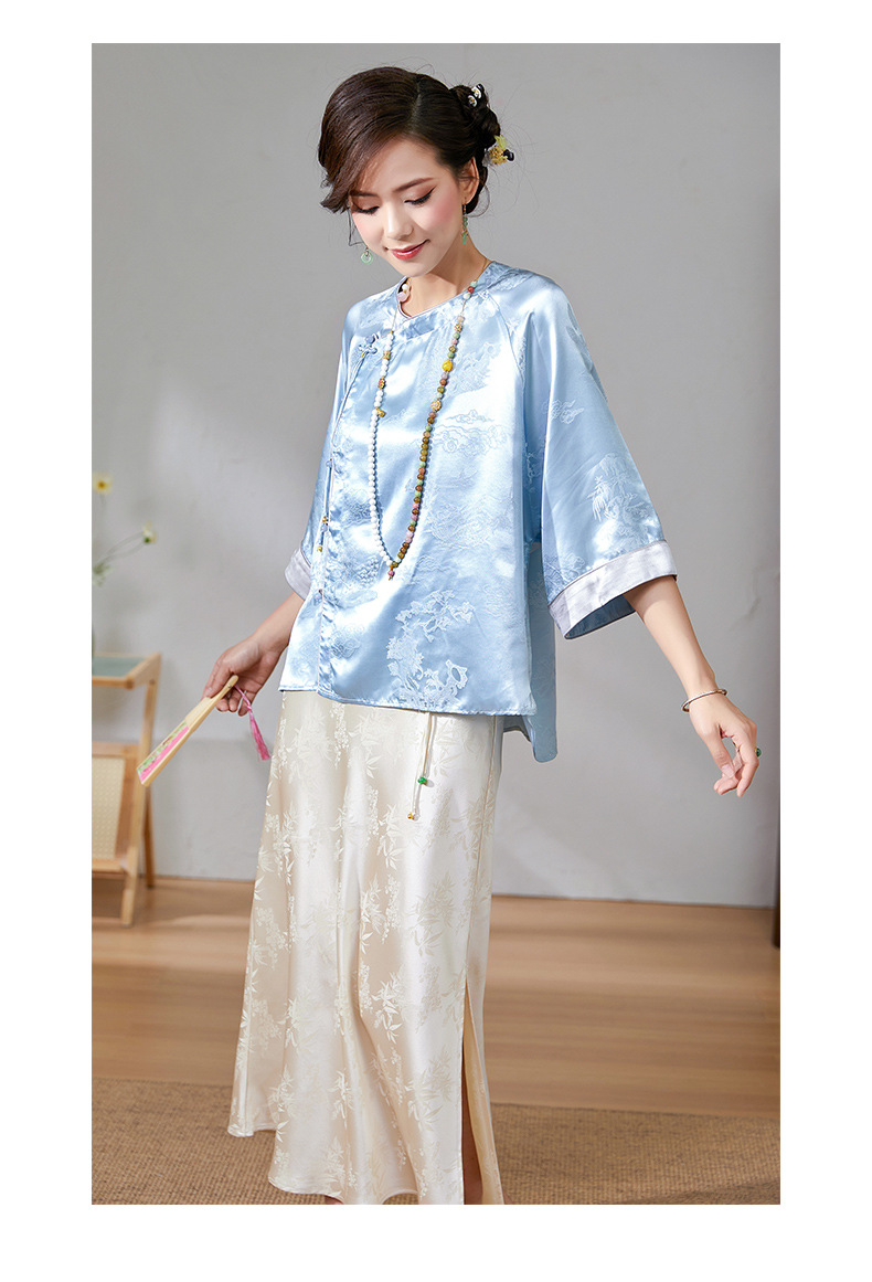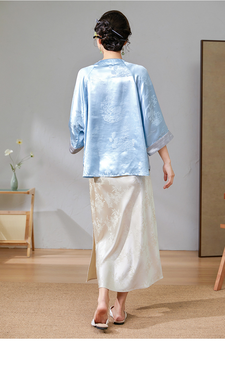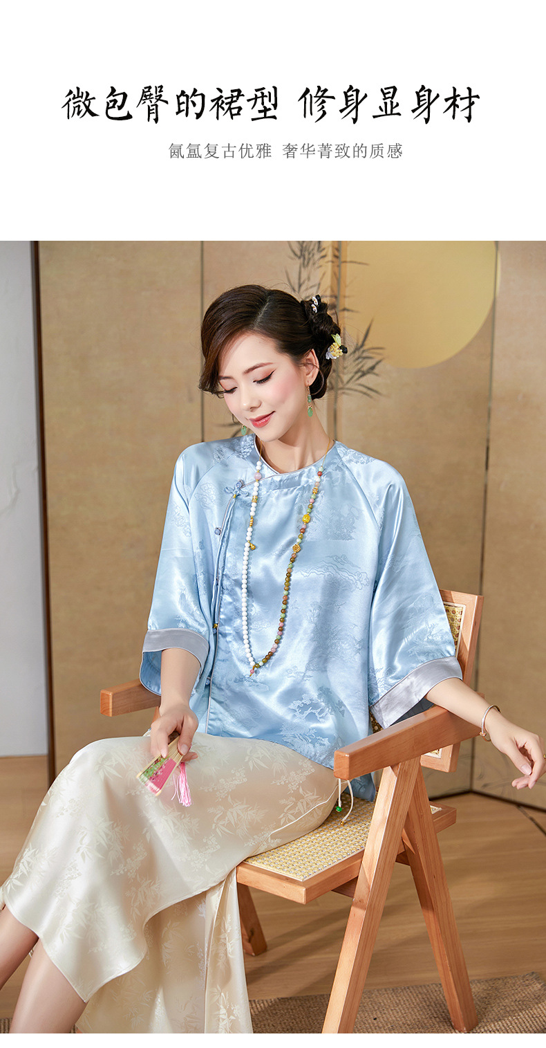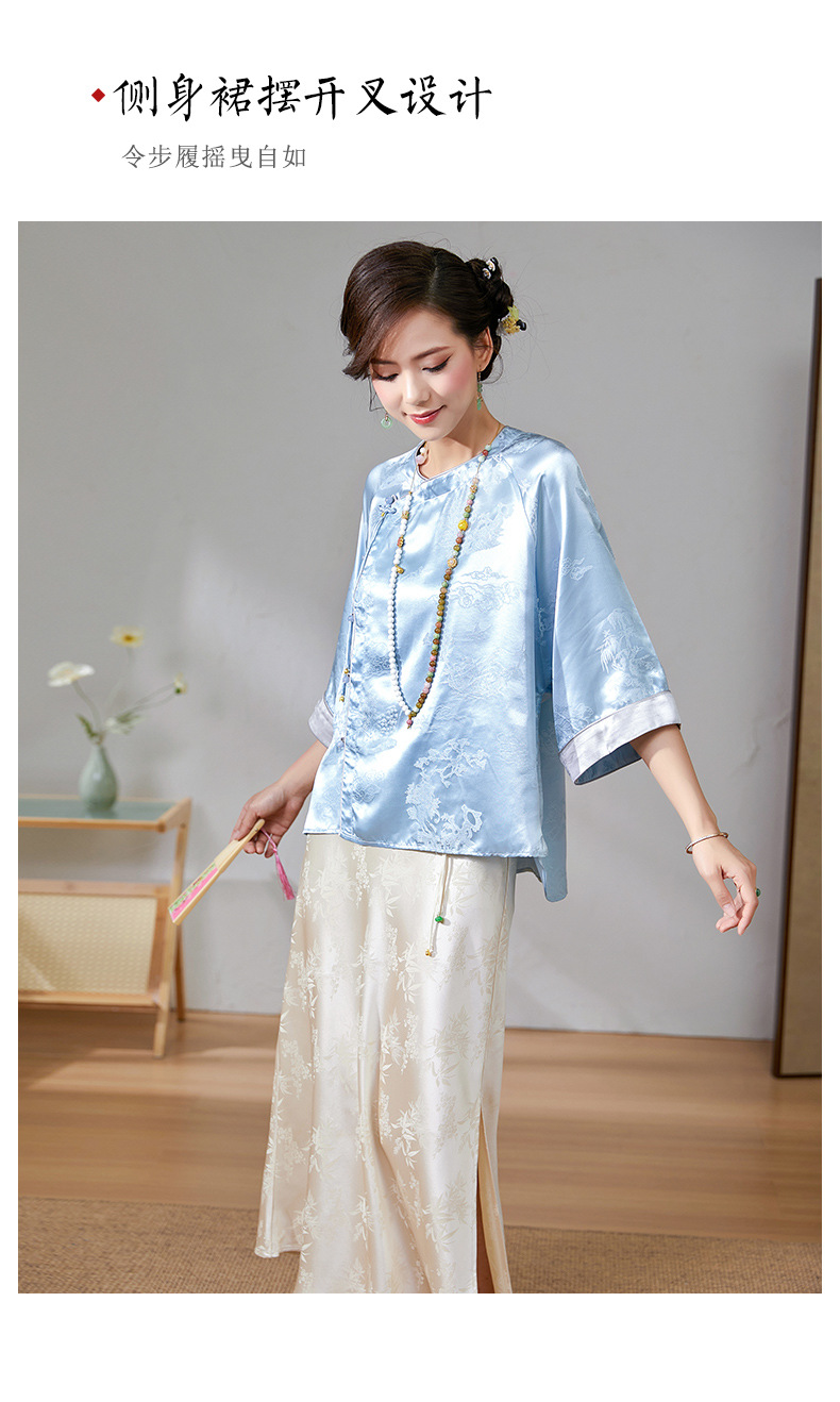 「自」全新升级【铂金会员358/天猫479/差价121】(52135)洛诗琳新中式三醋酸提花半裙2025夏季高腰开叉显瘦国风半裙