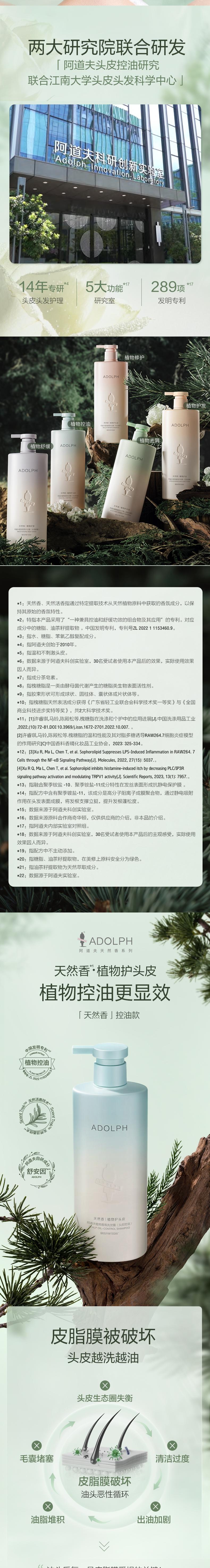 阿道夫 天然香植物香氛洗发水(头皮控油)400ml A111