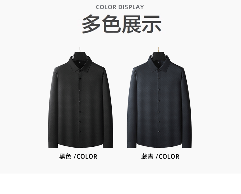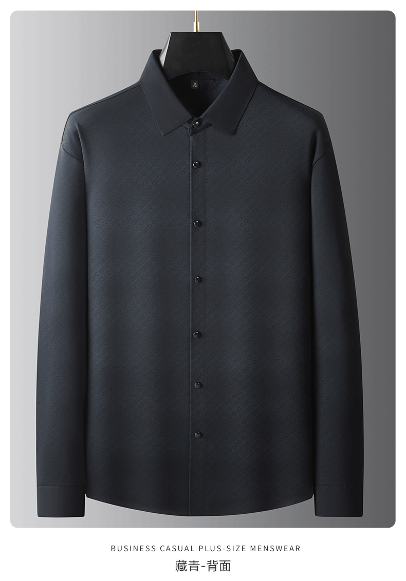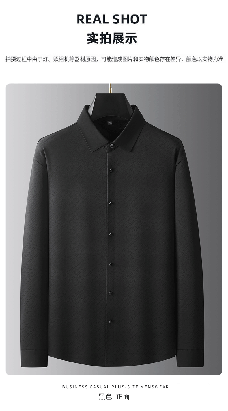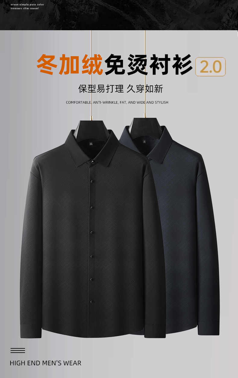 大依优型大码男装秋冬免烫加绒翻领长袖衬衫休闲商务衬衣上衣300斤