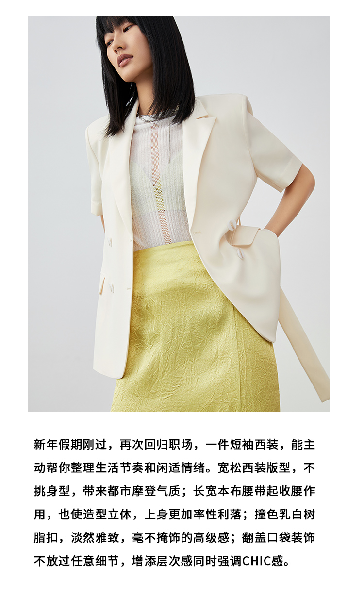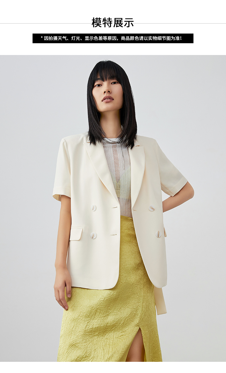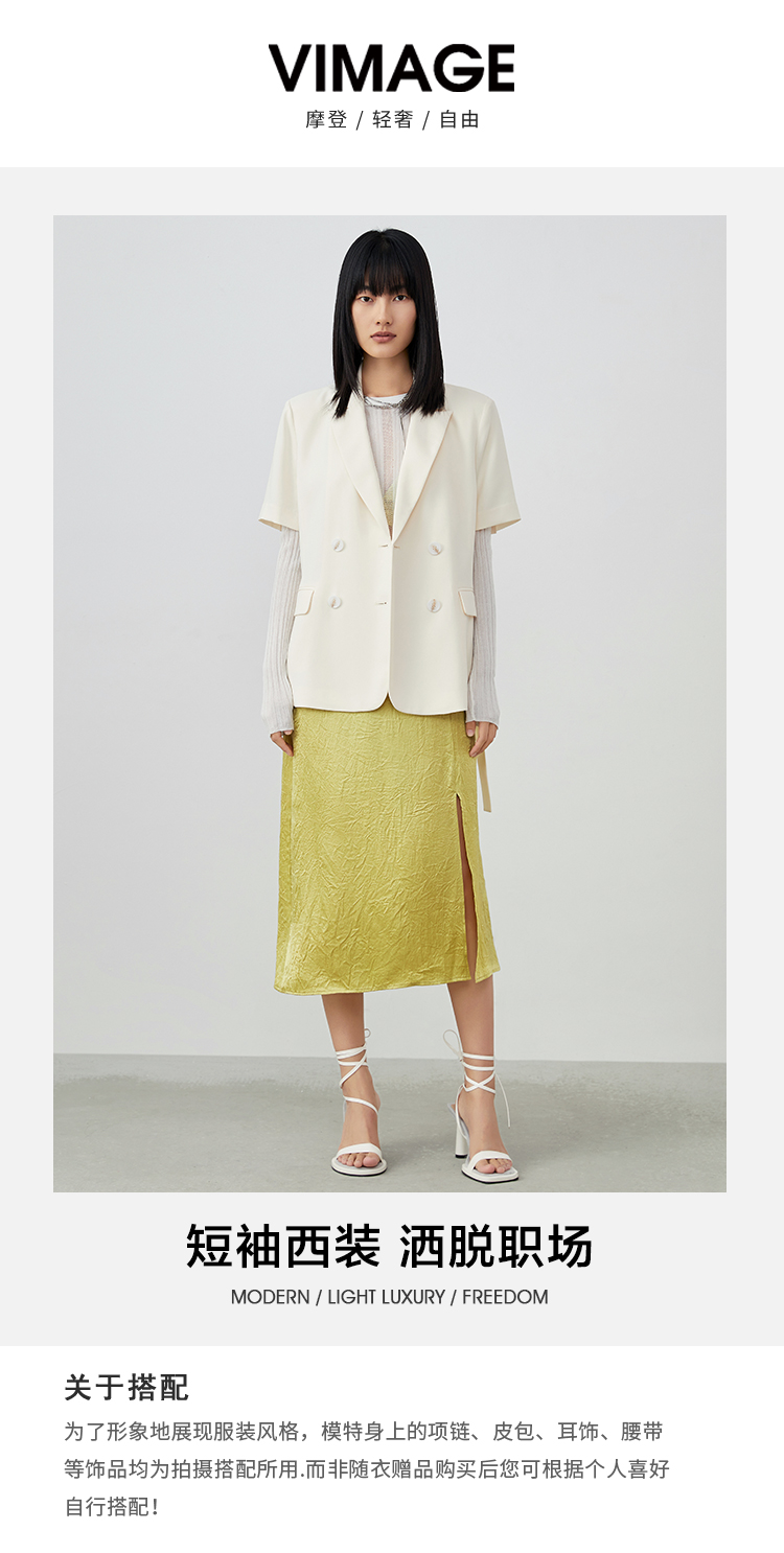 VIMAGE纬漫纪春夏季新款通勤纯色短袖宽松西装外套V1703310