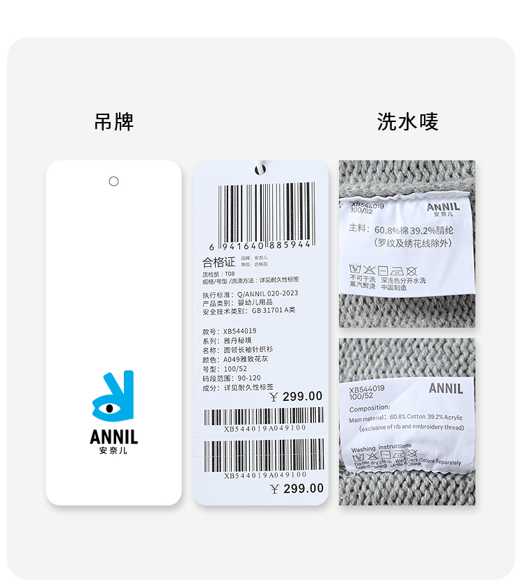 【实体店同款】男童圆领长袖针织衫冬季新款安奈儿童装XB544019