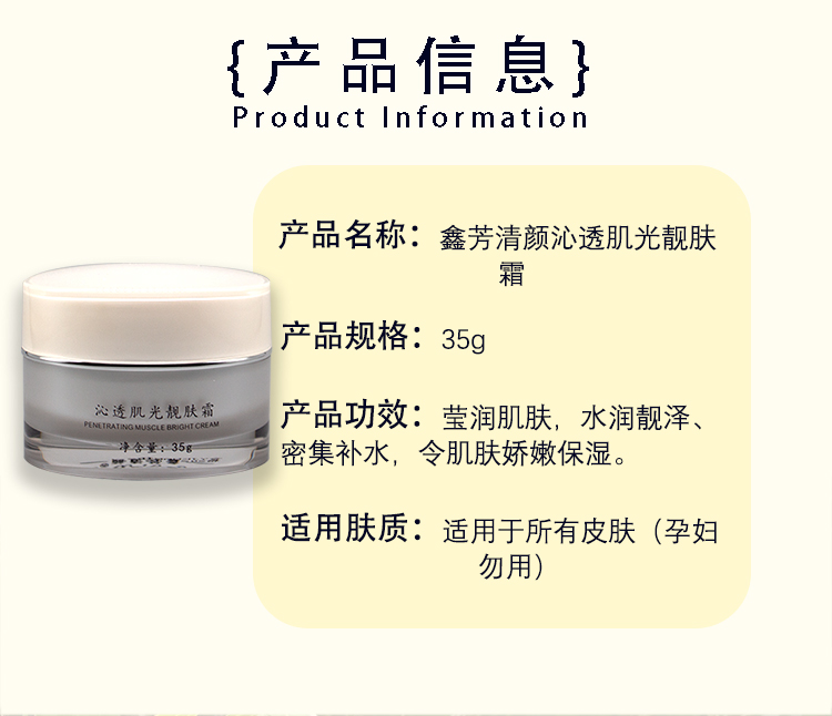 鑫芳清颜沁透肌光靓肤霜35g美容院正品直发补水莹润保湿