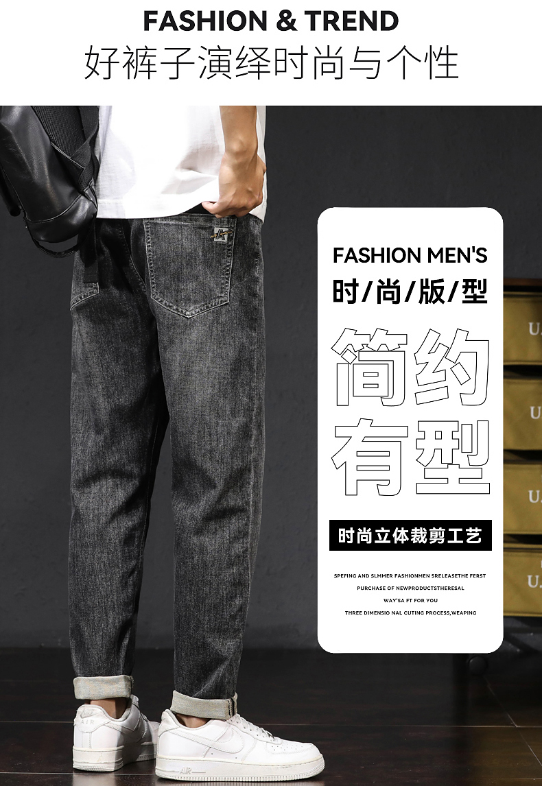 【DYG】大依优型大码牛仔裤休闲百搭长裤宽松加肥加大潮流薄款裤子胖子男士