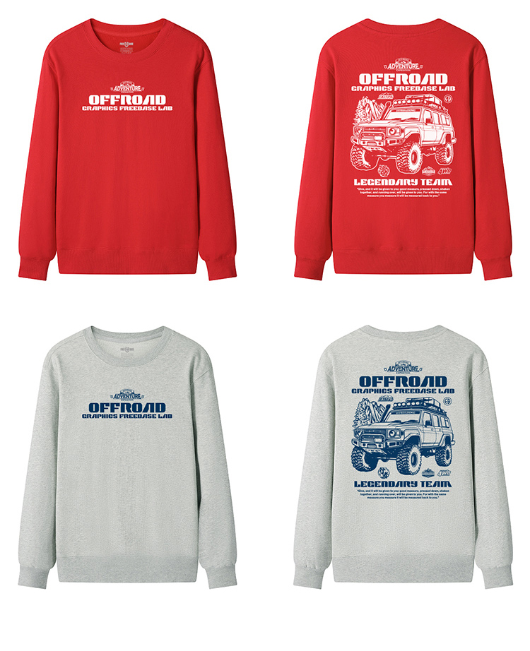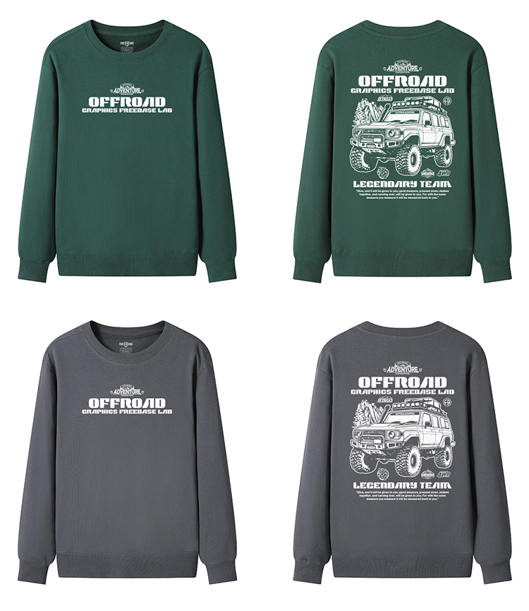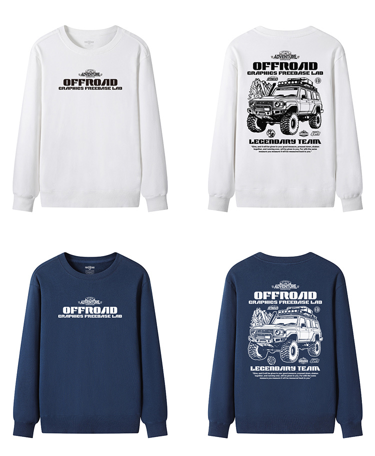 自由基地2023秋冬新款越野车穿越图案设计团队队服圆领毛圈卫衣 NMT-2060