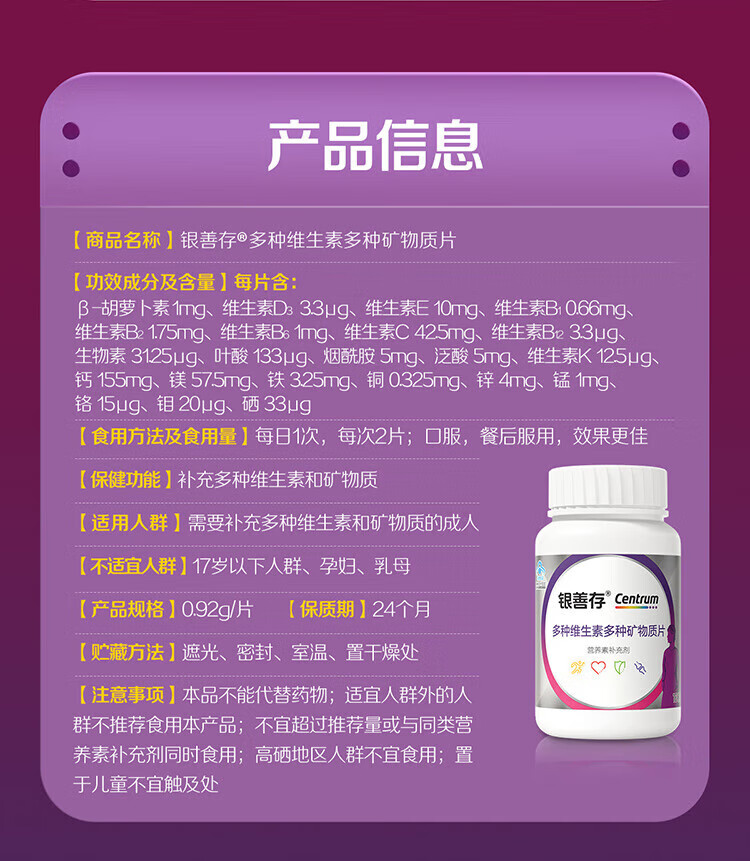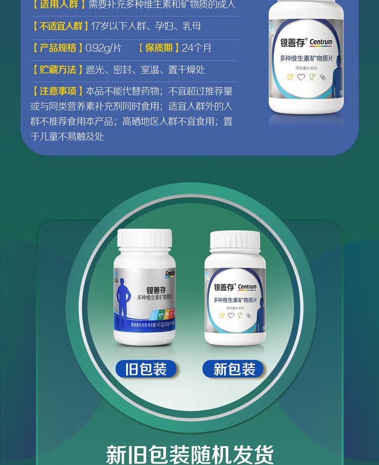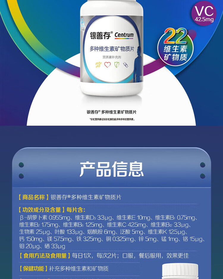 善存银善存 锌镁片 复合维生素矿物质片 中老年男士女士160片