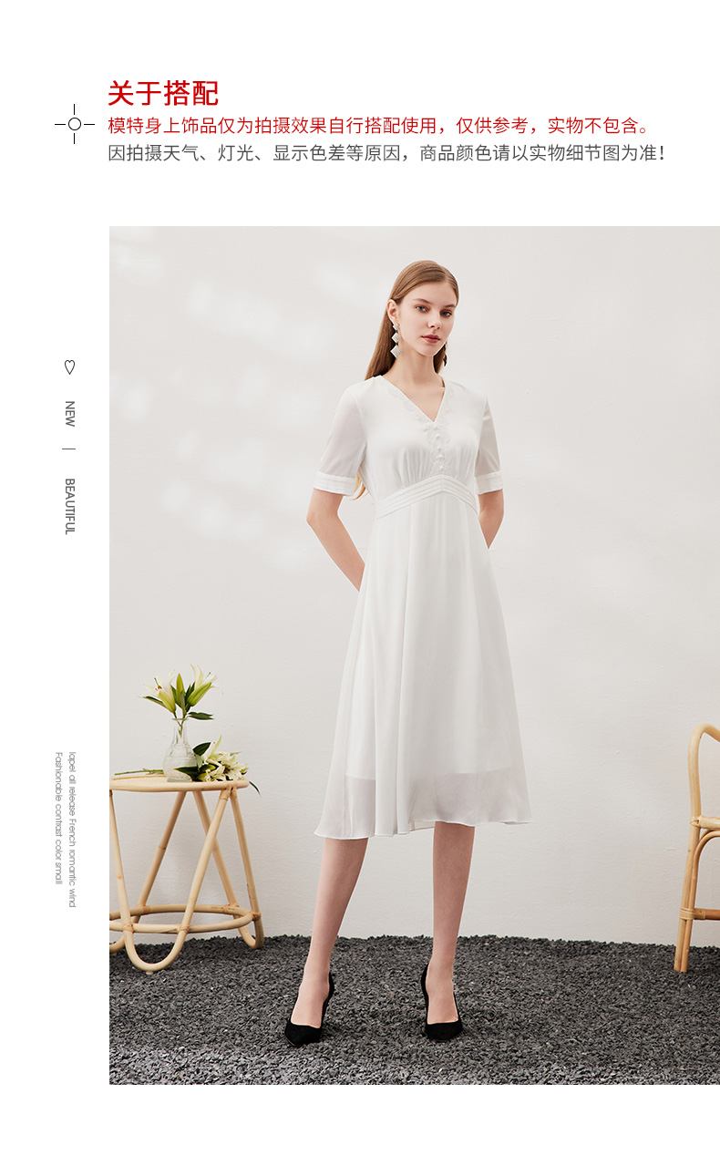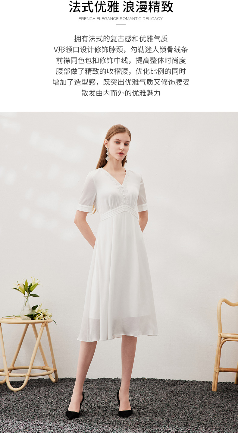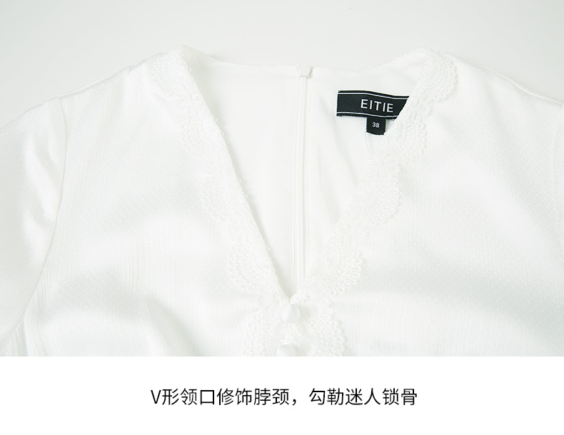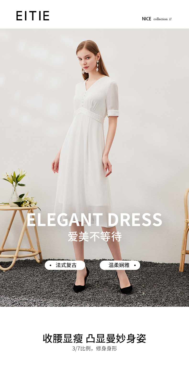 EITIE爱特爱夏季新款气质V领显瘦高腰连衣裙7007738