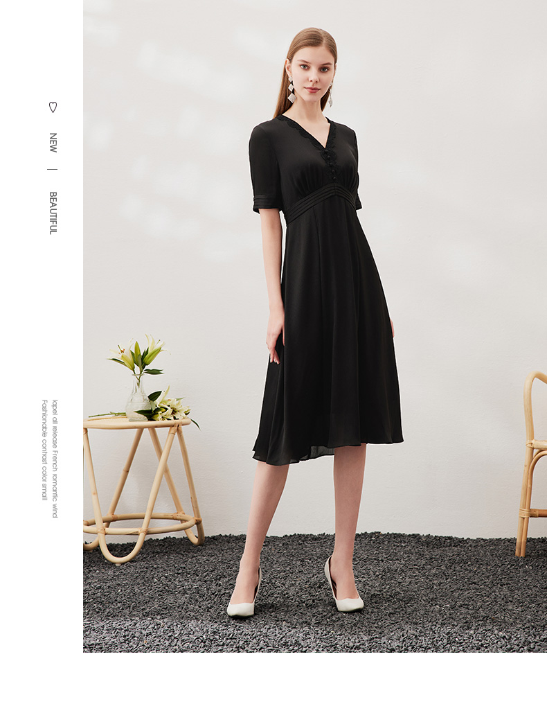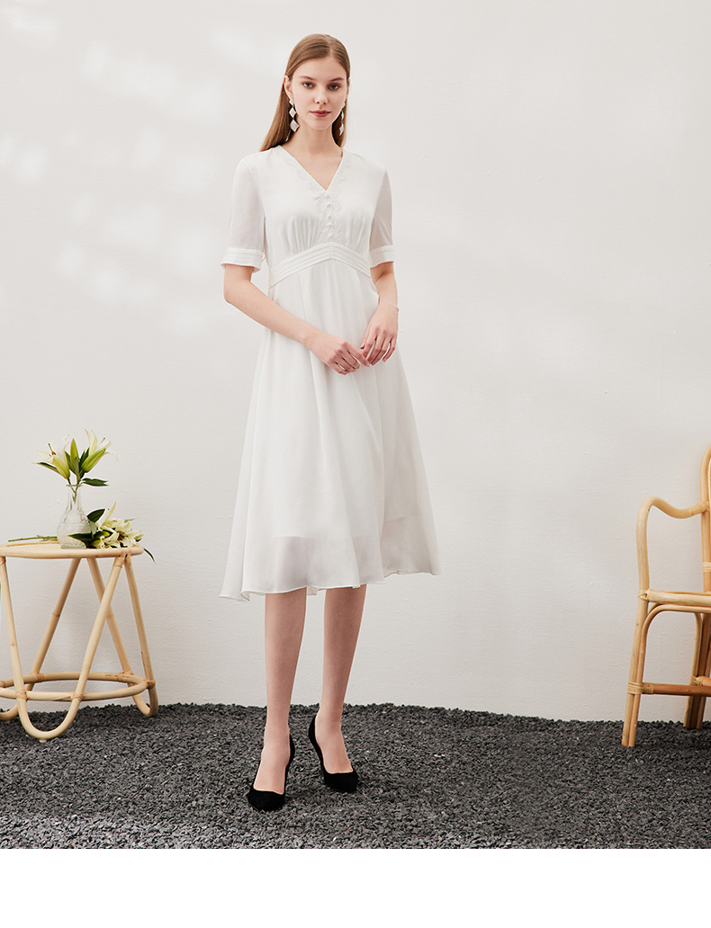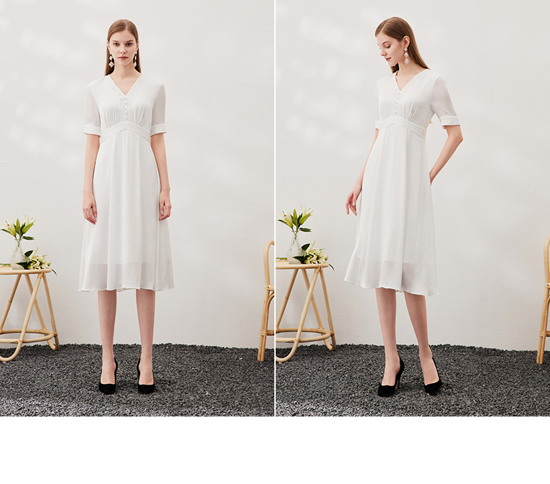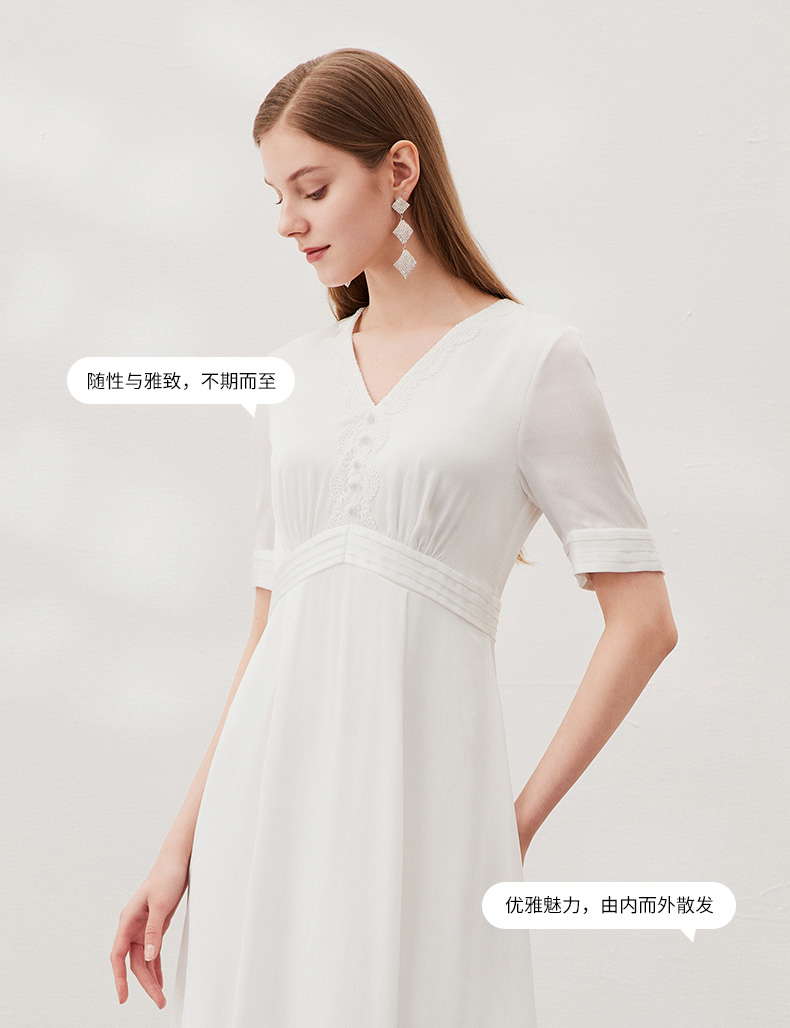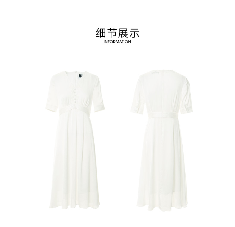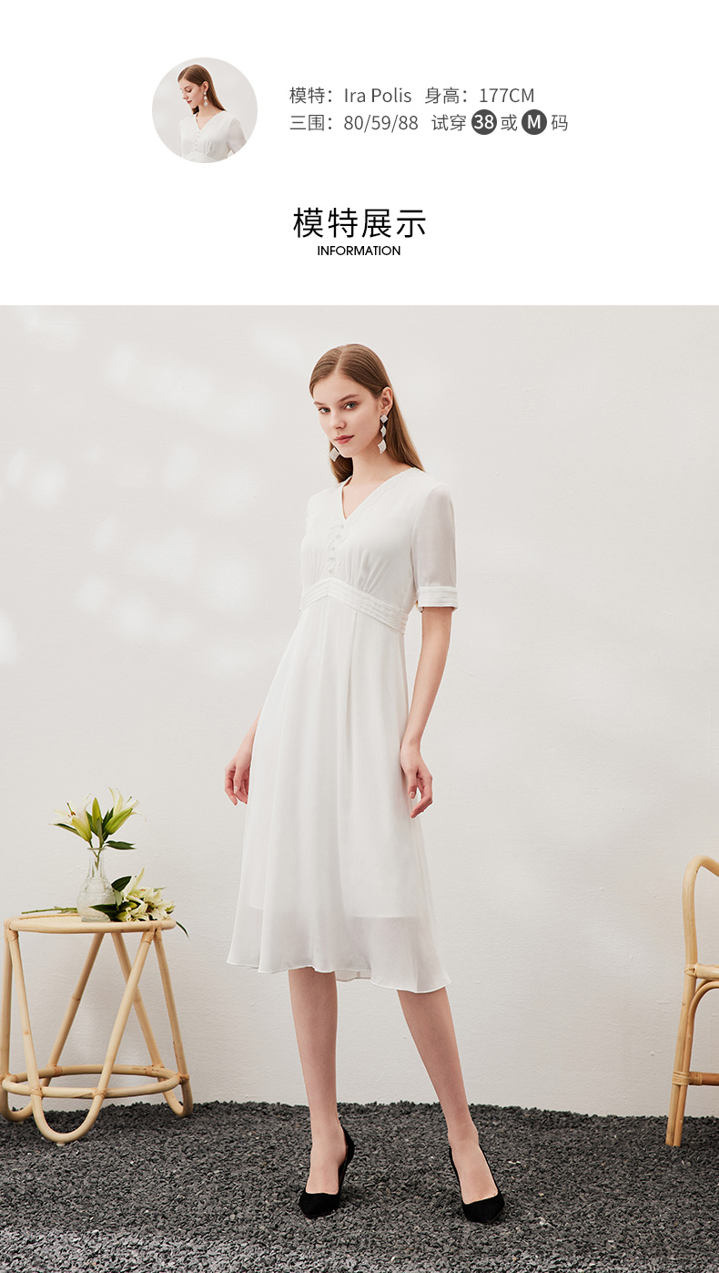 EITIE爱特爱夏季新款气质V领显瘦高腰连衣裙7007738
