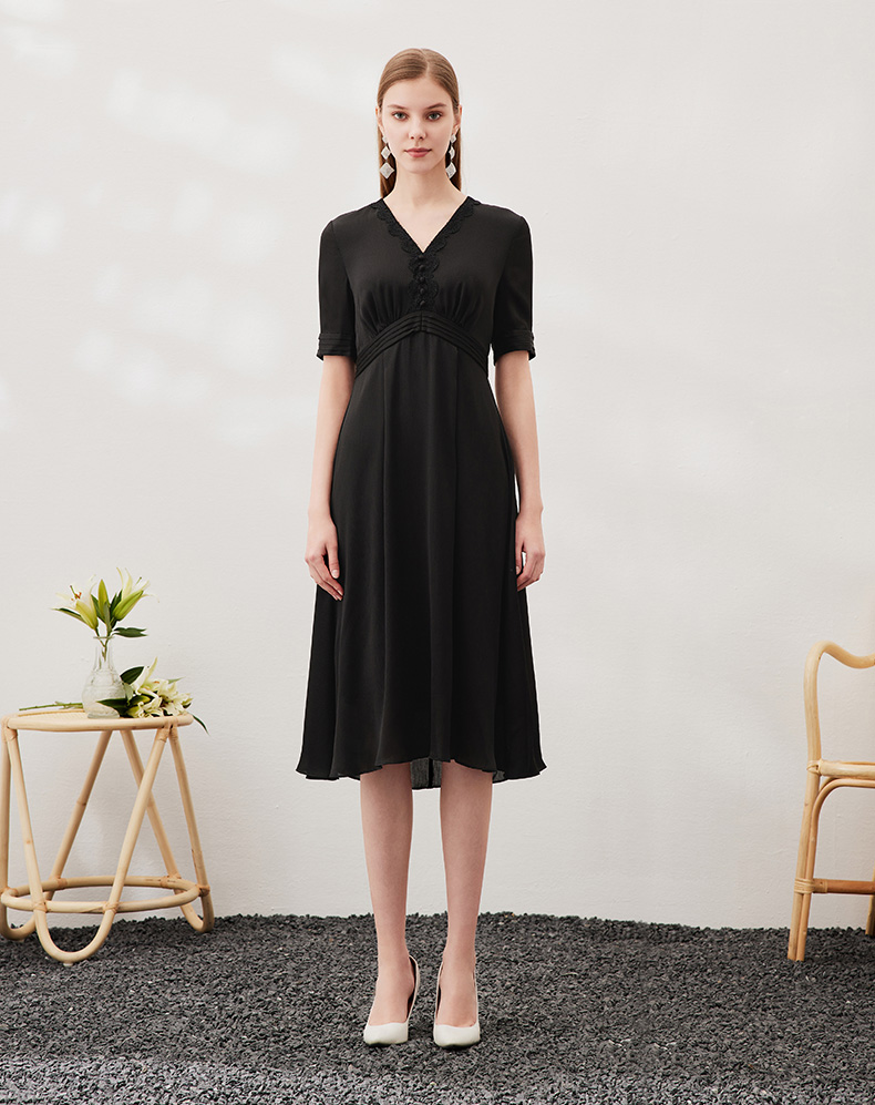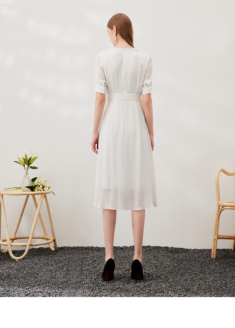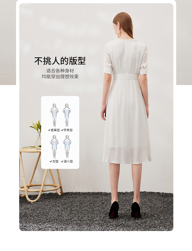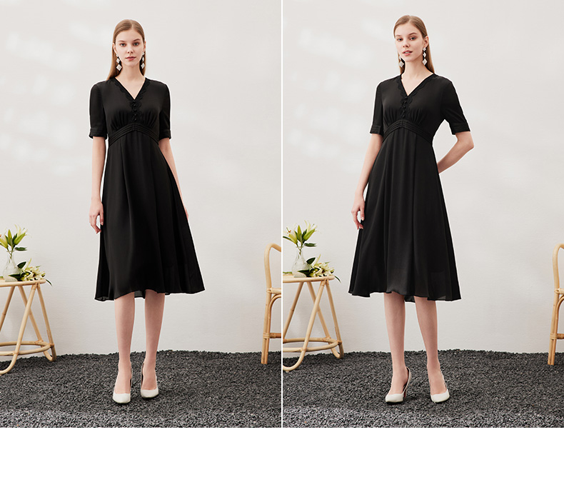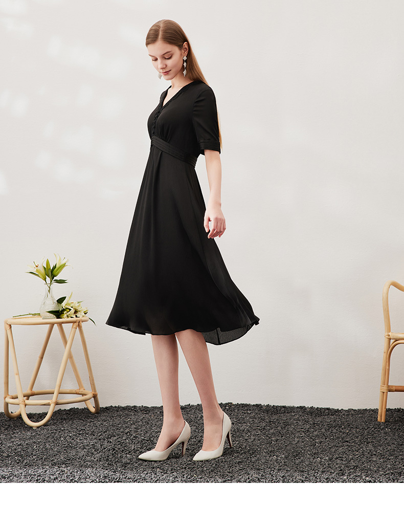 EITIE爱特爱夏季新款气质V领显瘦高腰连衣裙7007738
