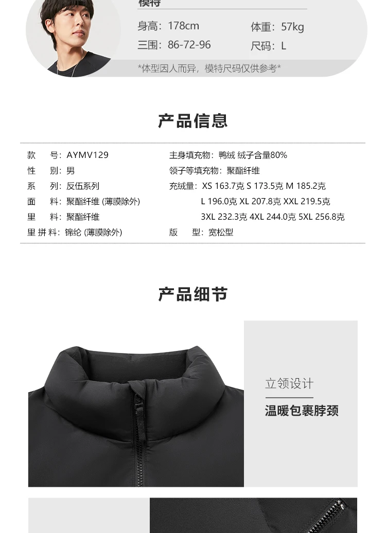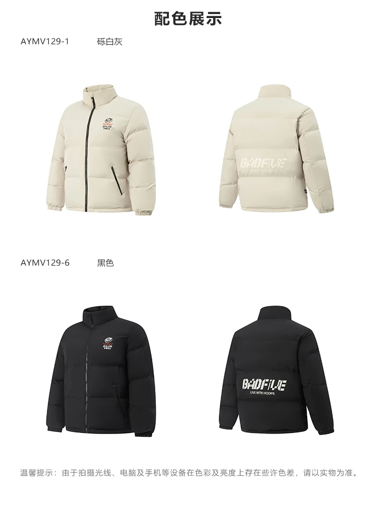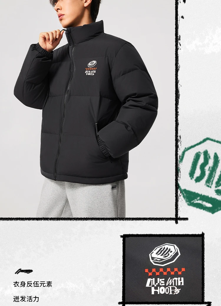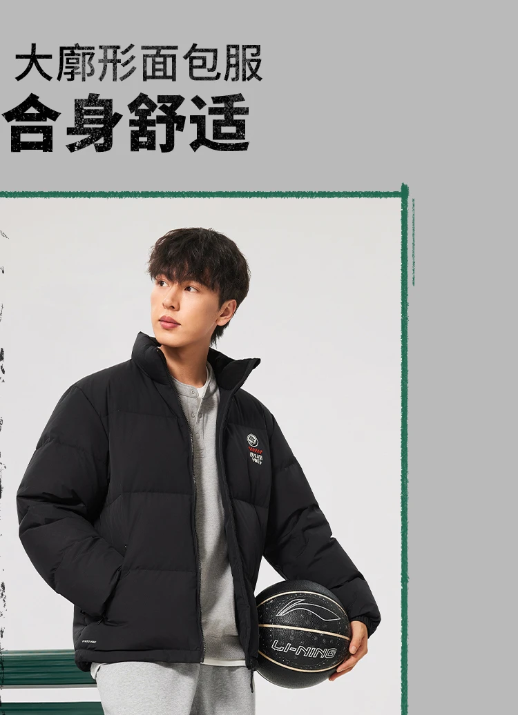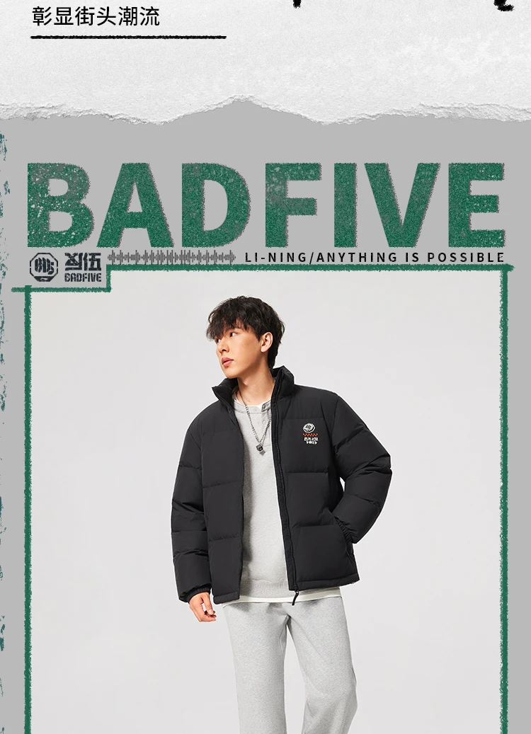 李宁反伍BADFIVE男子防泼水保暖宽松鸭绒短羽绒服AYMV129