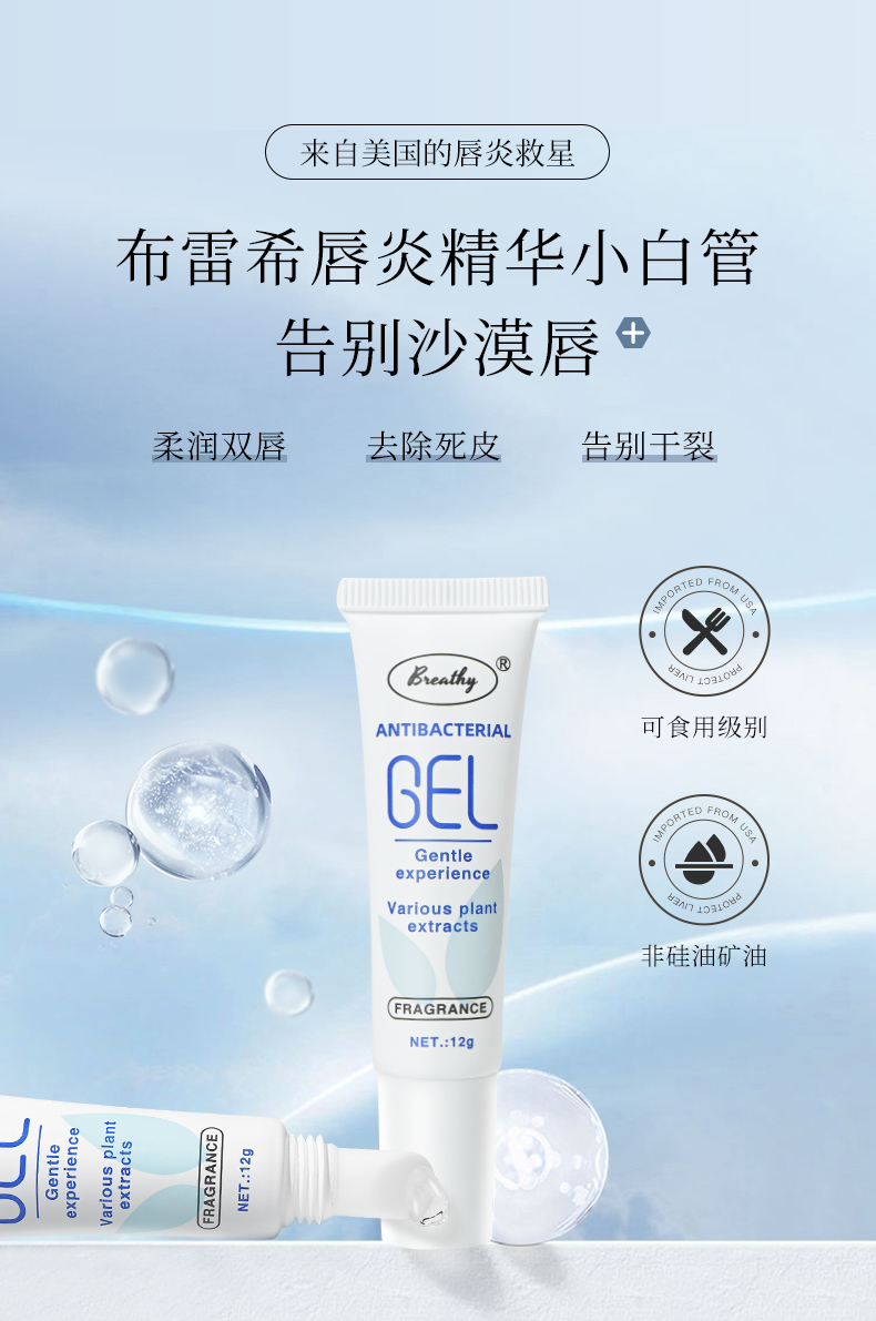 【第二支半价】美国布雷希唇炎精华保湿滋润干裂克星淡化唇纹唇色无矿油硅油添加全家安全好用