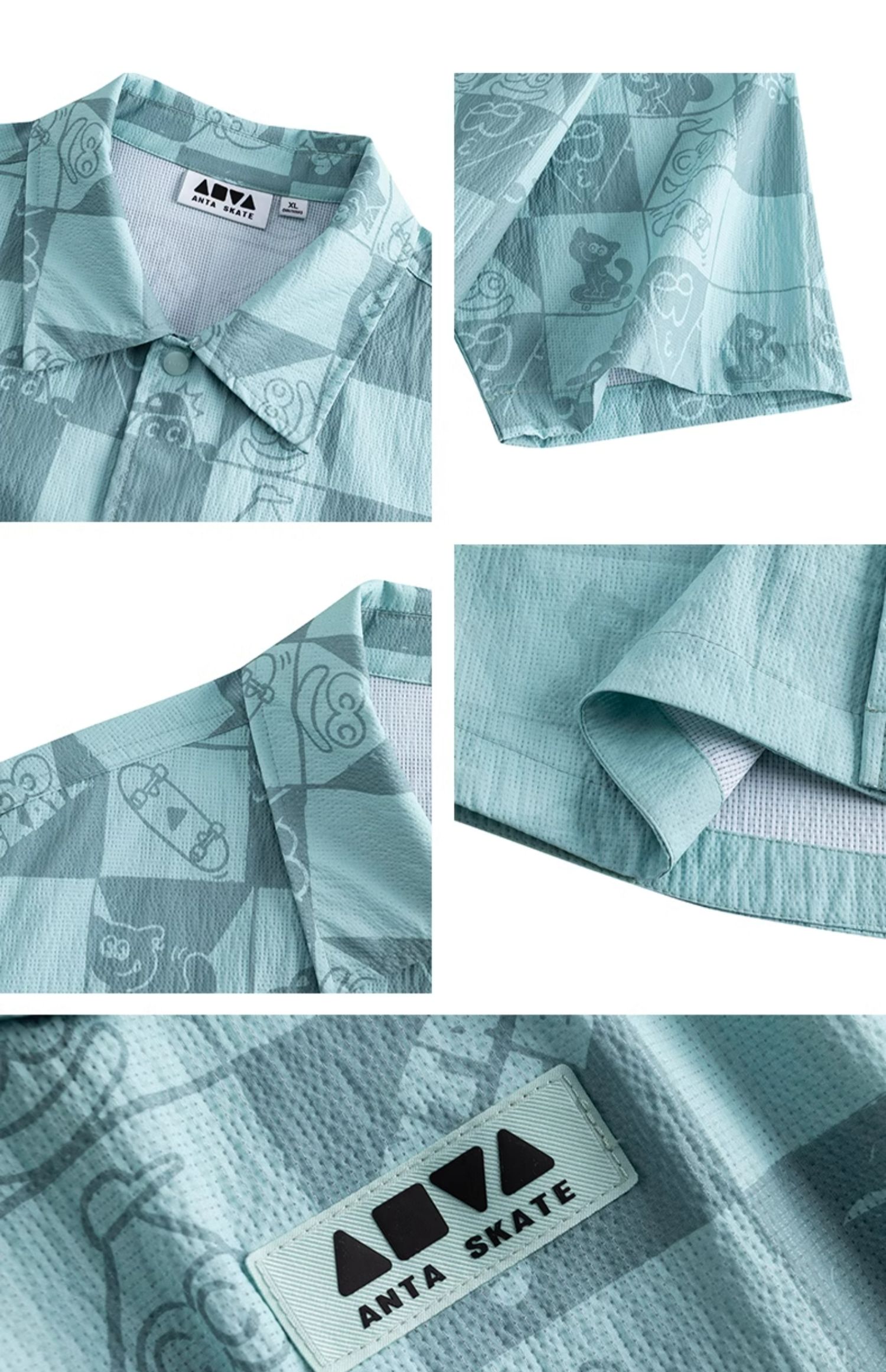 安踏休闲百搭短袖衬衫男女同款夏季满印潮流宽松t恤上衣172528113