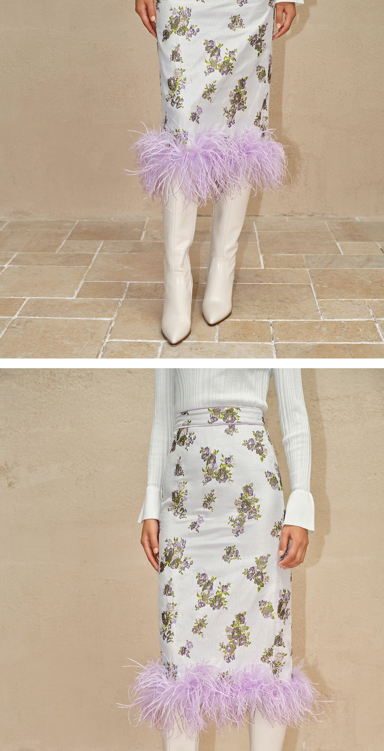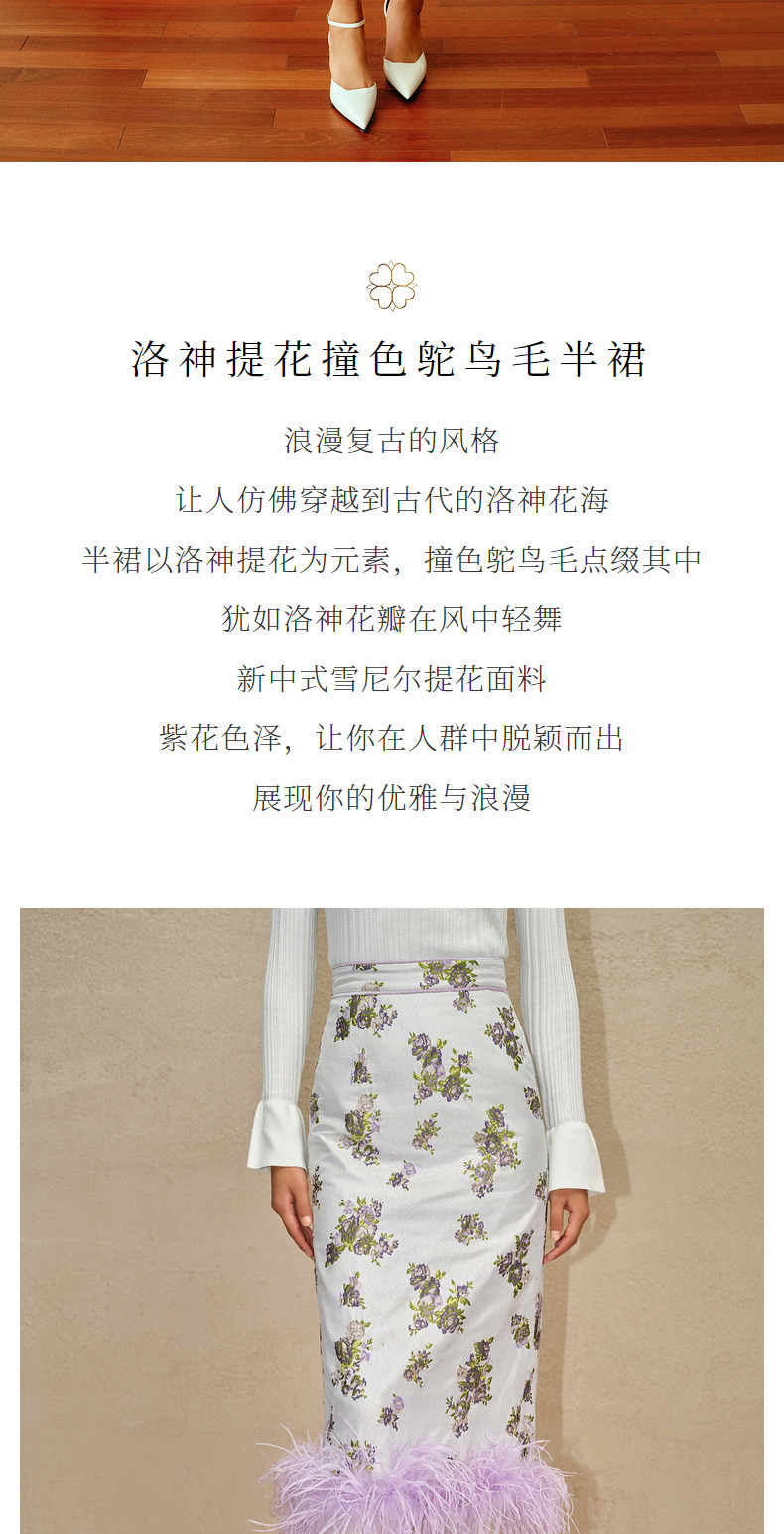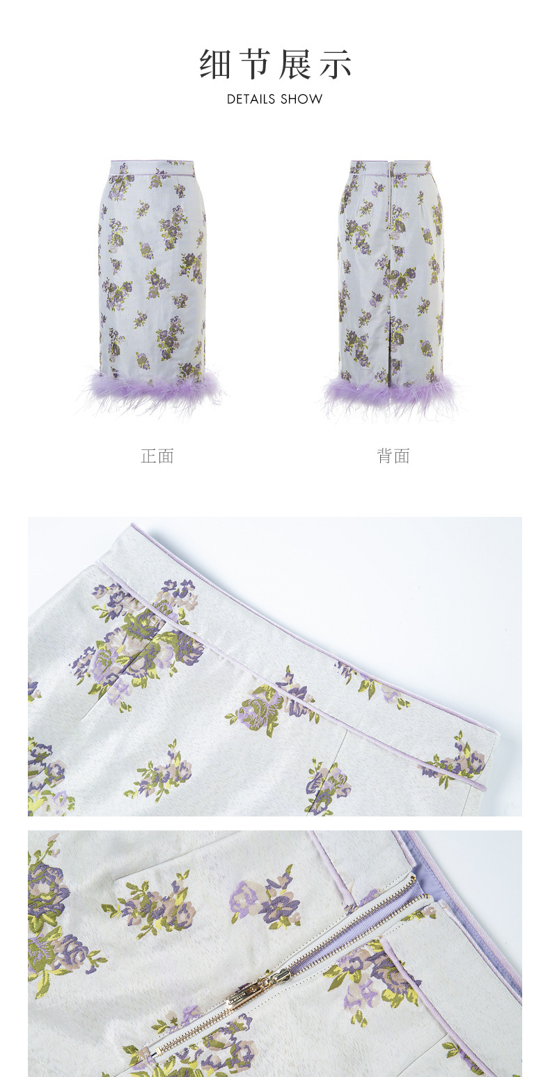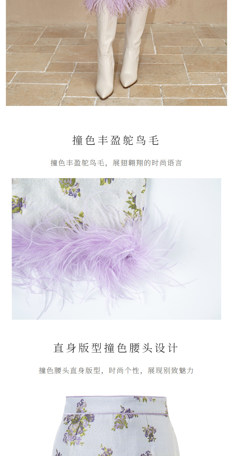 MAXRIENY*复古浪漫感洛神提花撞色鸵鸟毛半裙(货号:MC88SK754)