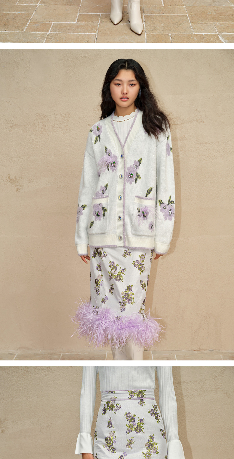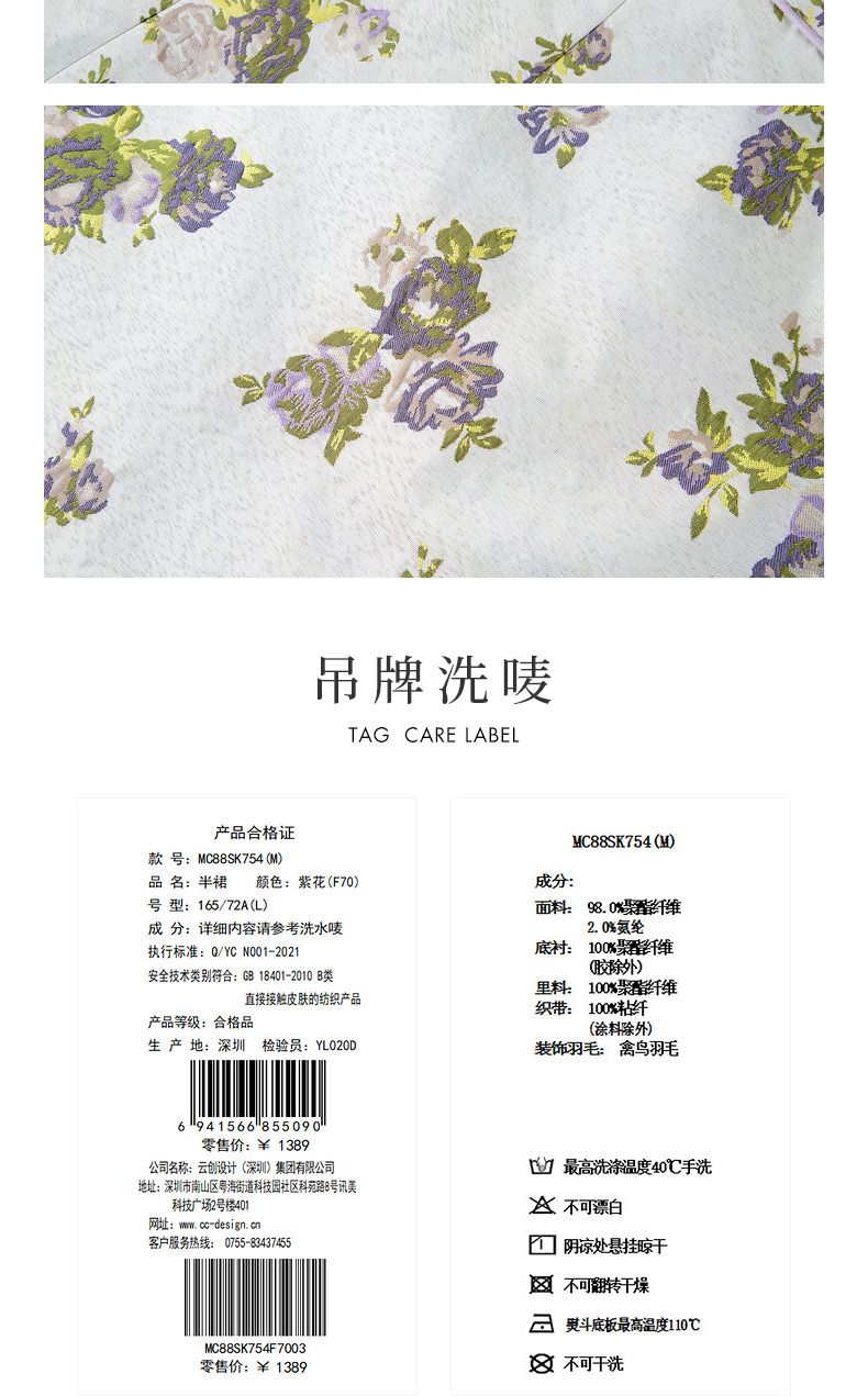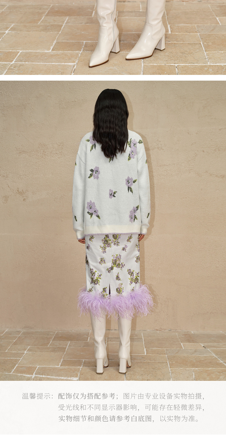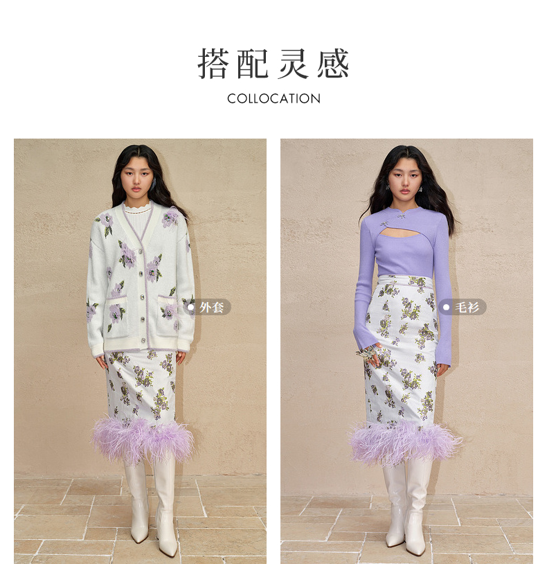MAXRIENY*复古浪漫感洛神提花撞色鸵鸟毛半裙(货号:MC88SK754)