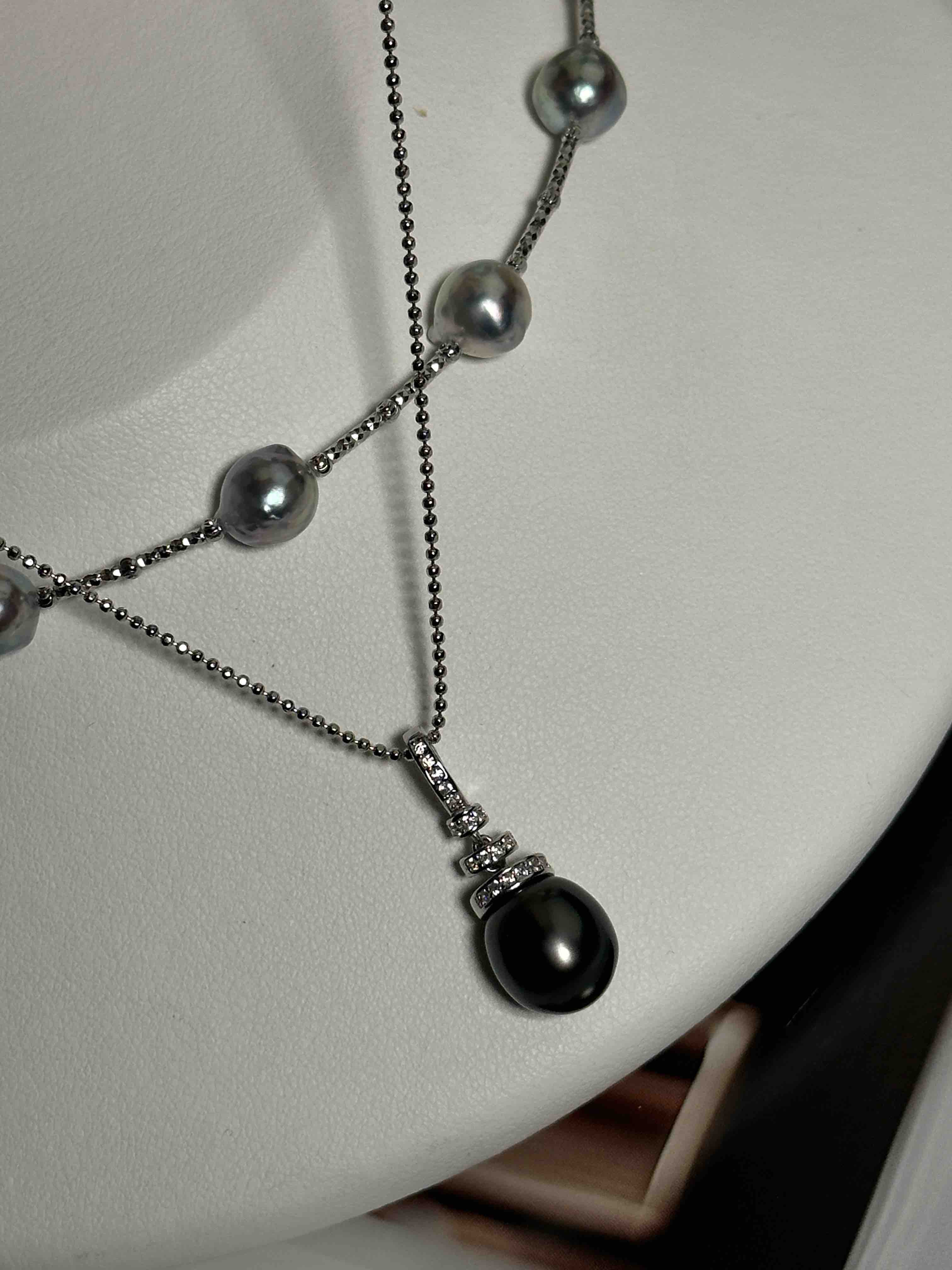 接近9mm的真多麻色日本进口akoya大珠珠。8-9mmakoya项链,有生长痕迹,没有大坑洼,越看越喜欢太亮了不止一点。附GRC大证