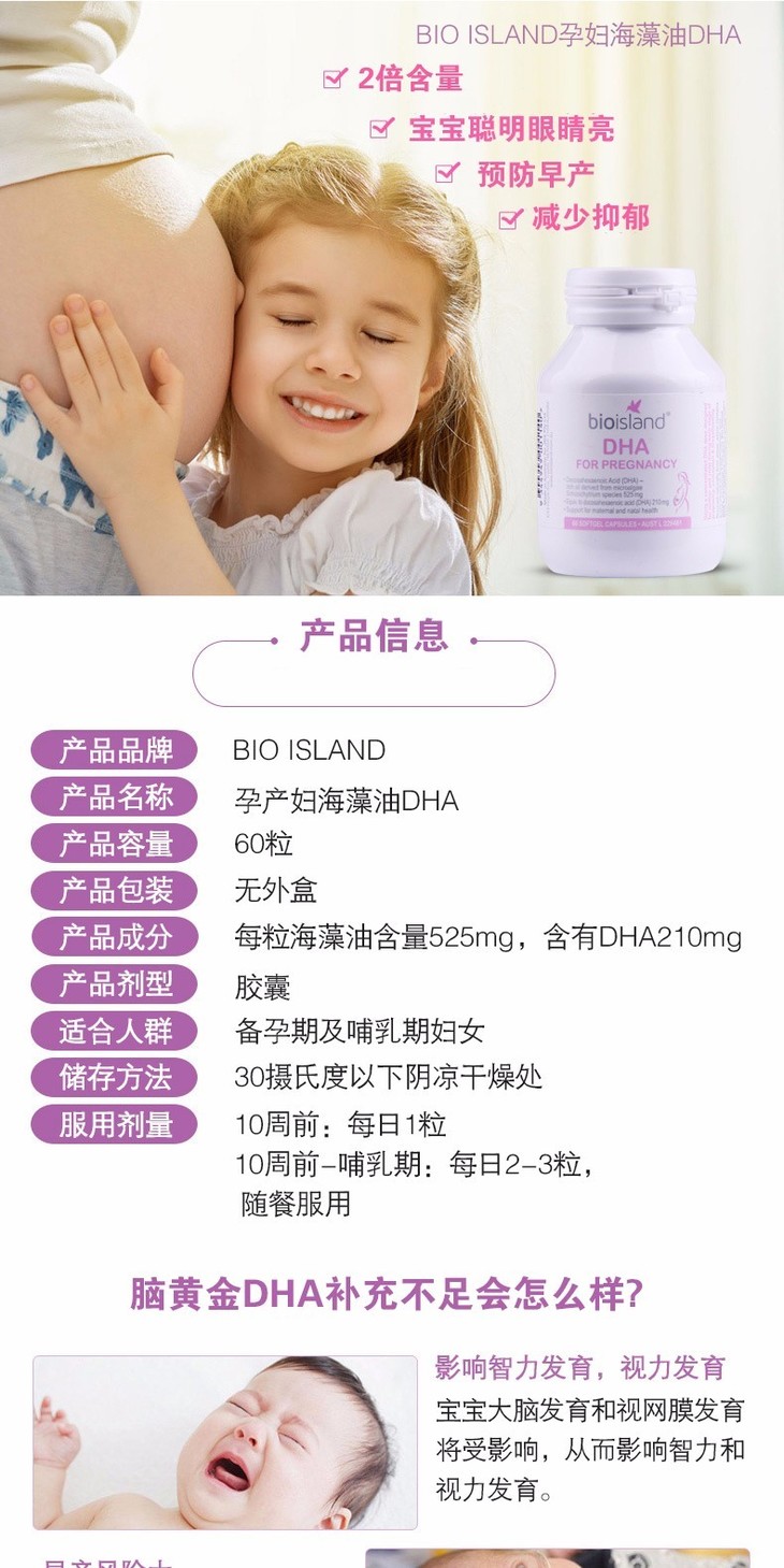 BIO ISLAND 海藻油DHA 孕妇孕期备孕专用 补脑补眼 60粒 Bio island Bio DHA for pregenancy 6