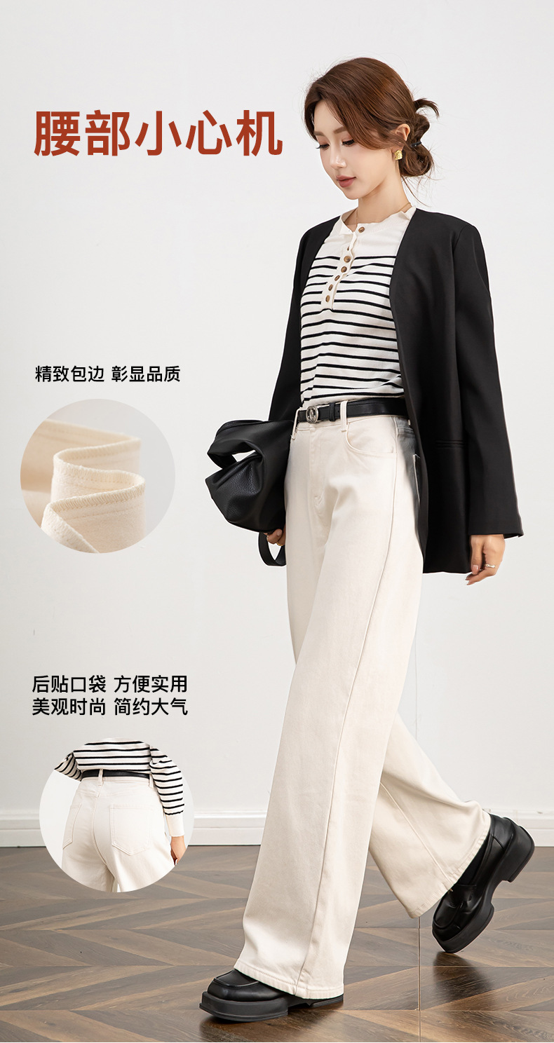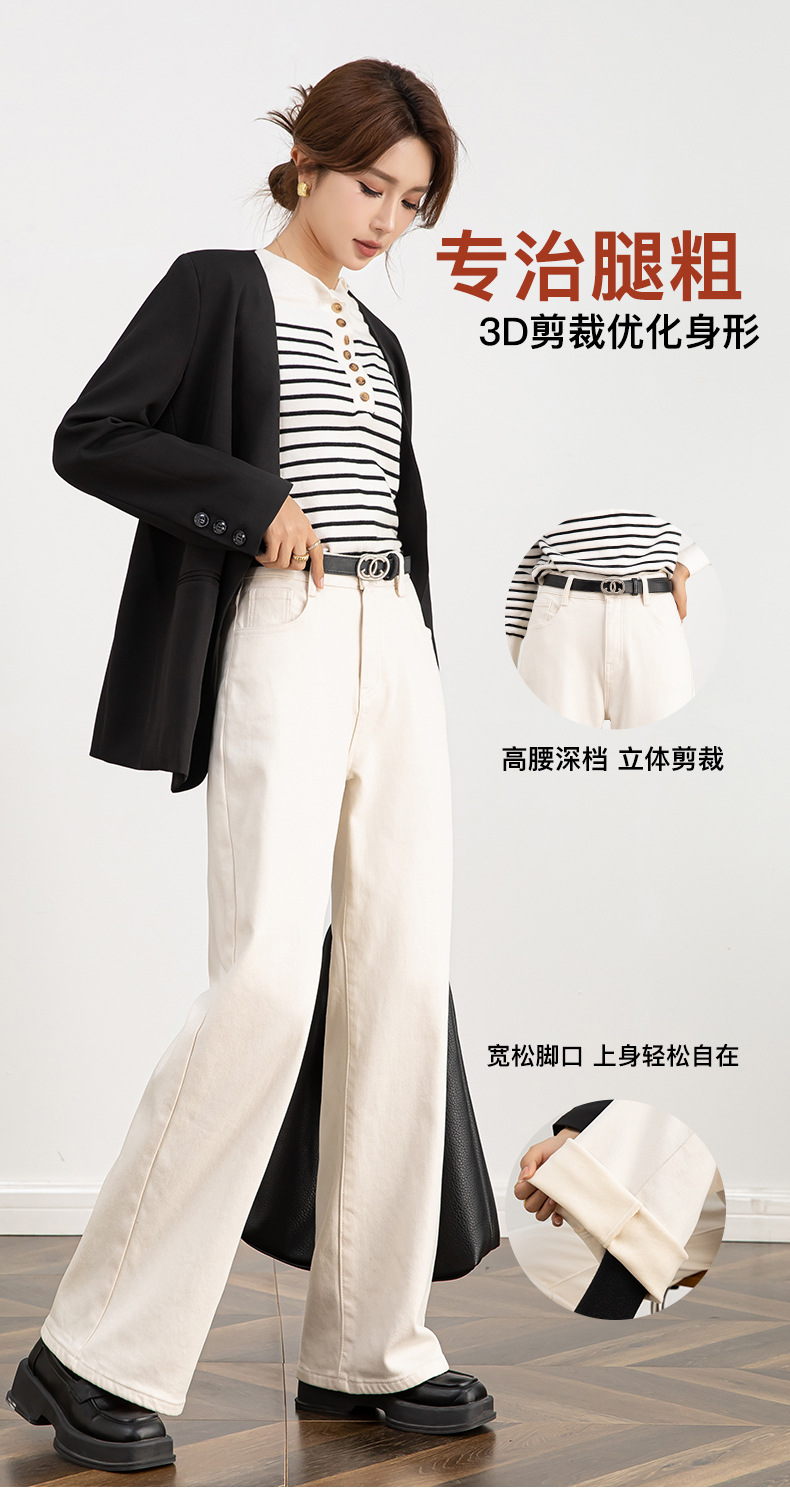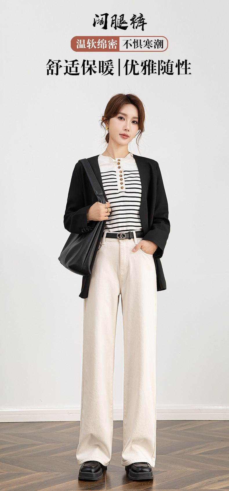 【高货rg】全新升级【铂金会员165/天猫219/差价54】(35133) 洛诗琳冬季新款米白色一体绒牛仔阔腿裤女高腰垂感直筒裤
