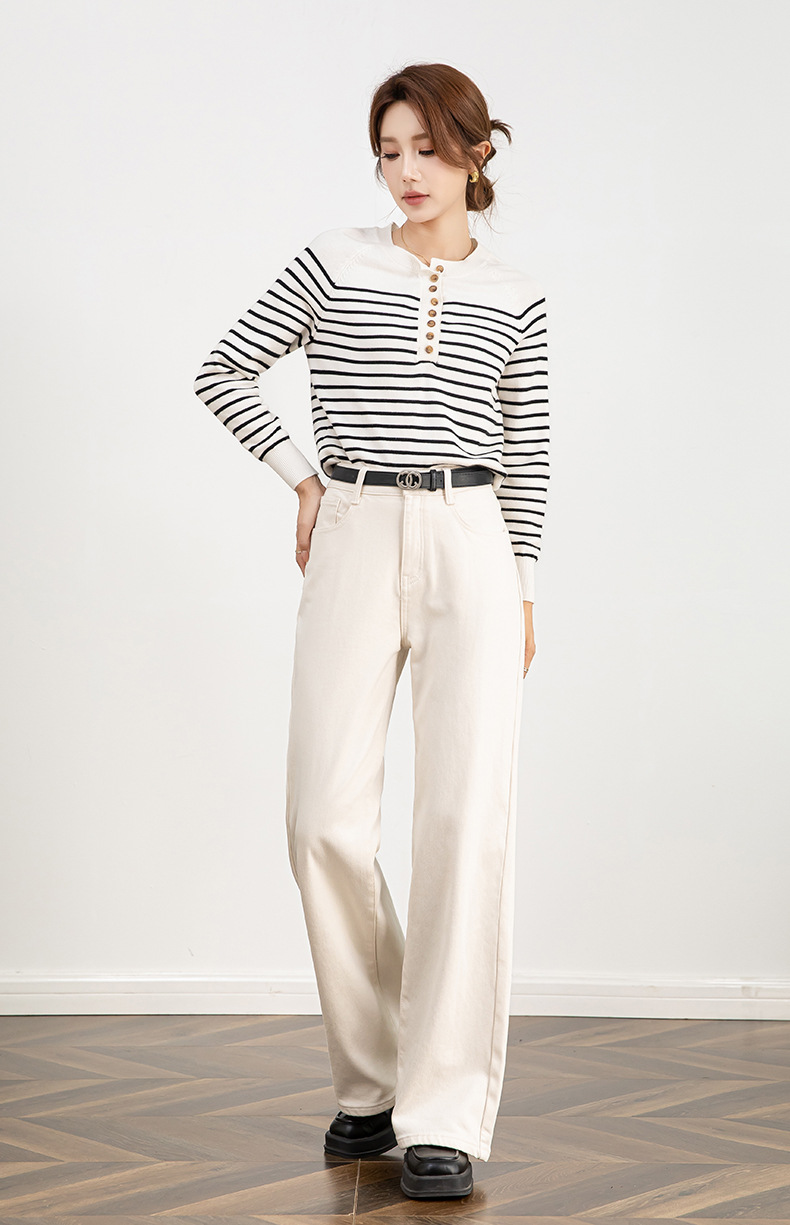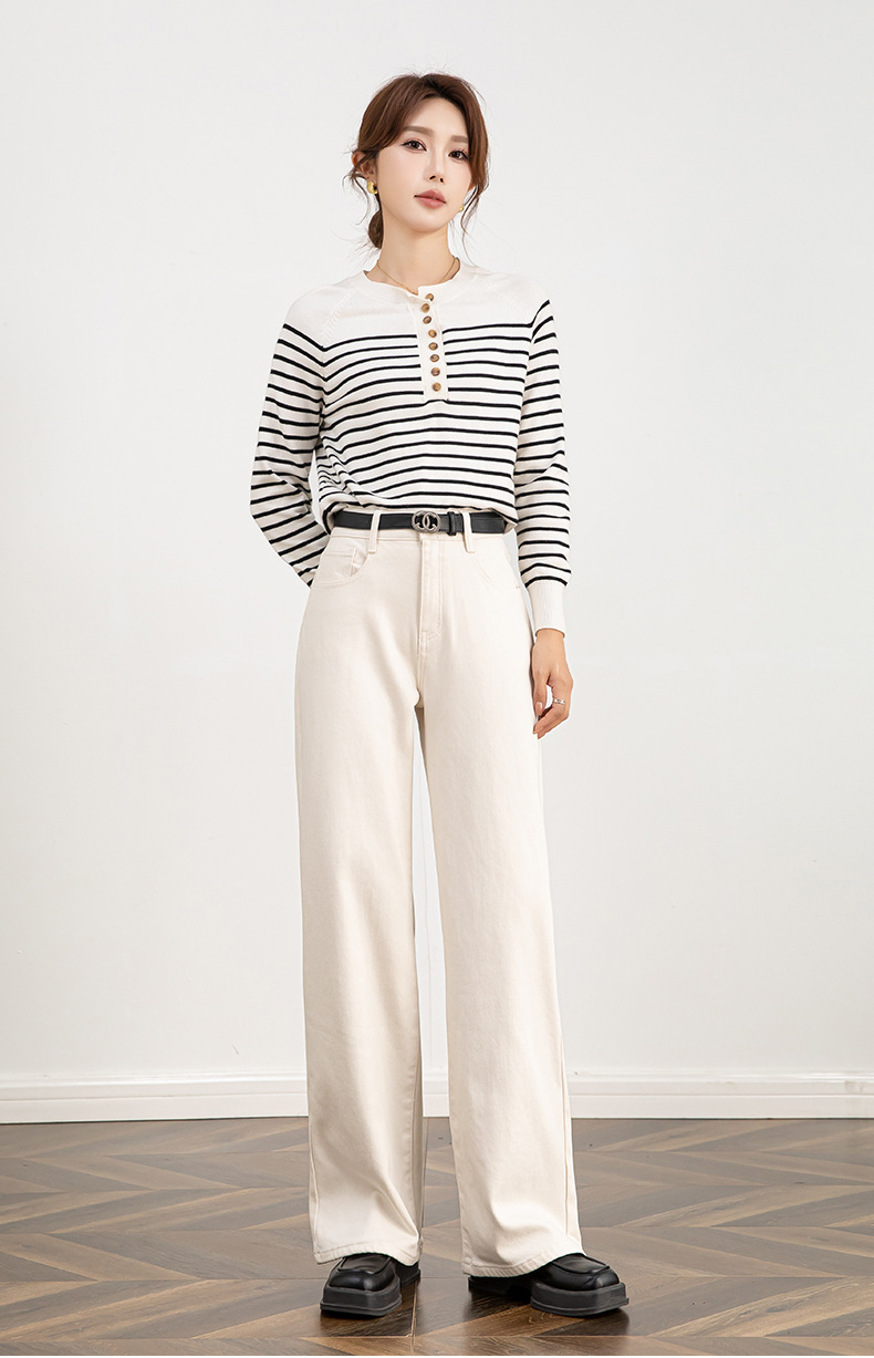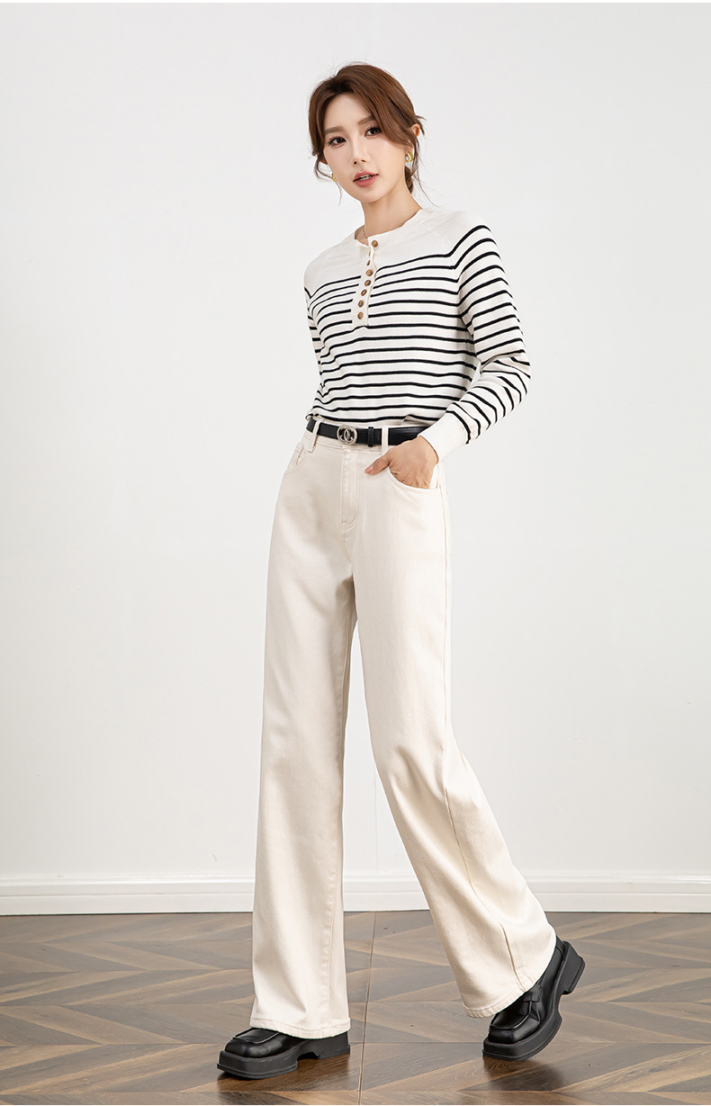 【高货rg】全新升级【铂金会员165/天猫219/差价54】(35133) 洛诗琳冬季新款米白色一体绒牛仔阔腿裤女高腰垂感直筒裤