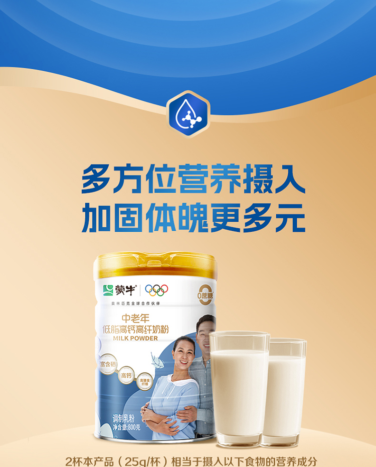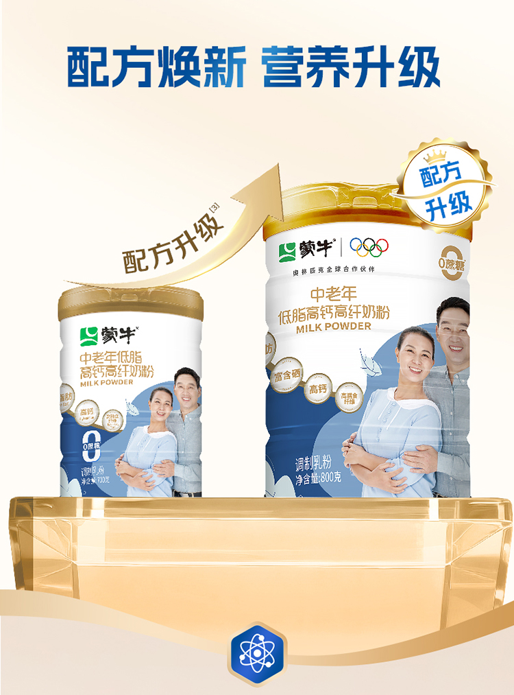 蒙牛中老年人低脂高钙高纤奶粉800g新国标(新老版本随机发)