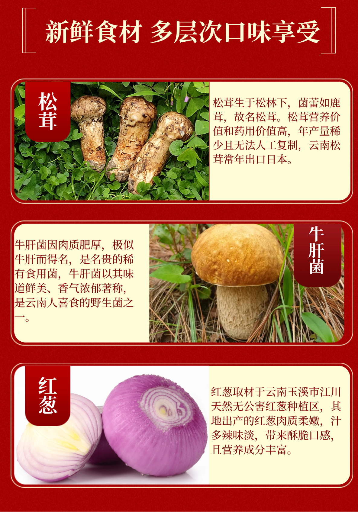 - 特选云南优质食材,恢复传统工艺,追求本真原味,提供云南原生态高品质食品。独家供应香格里拉松茸,云南油浸鸡枞。