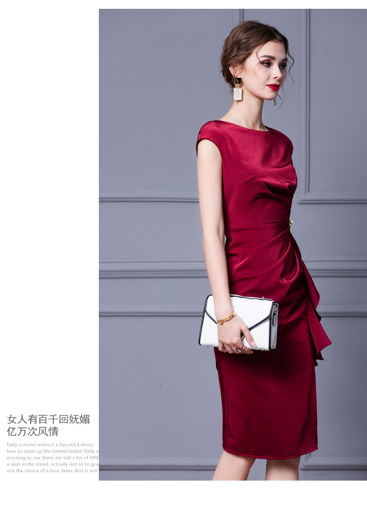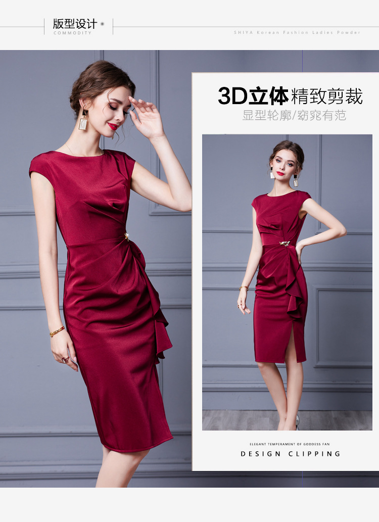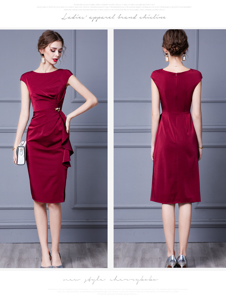 盖袖荷叶边裙 气质修身连衣裙礼服YY