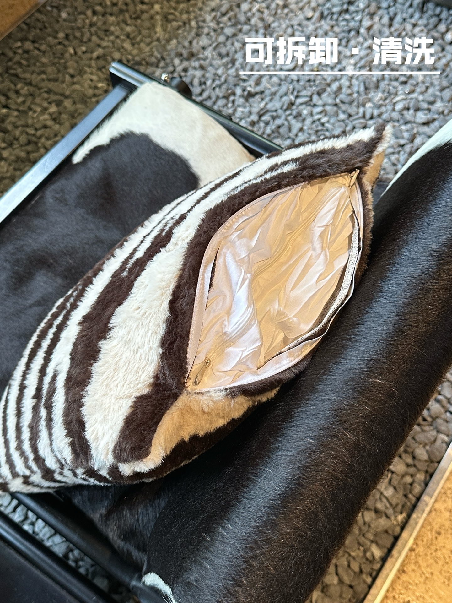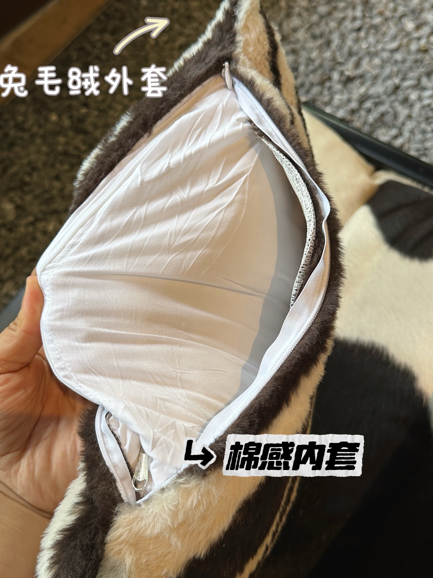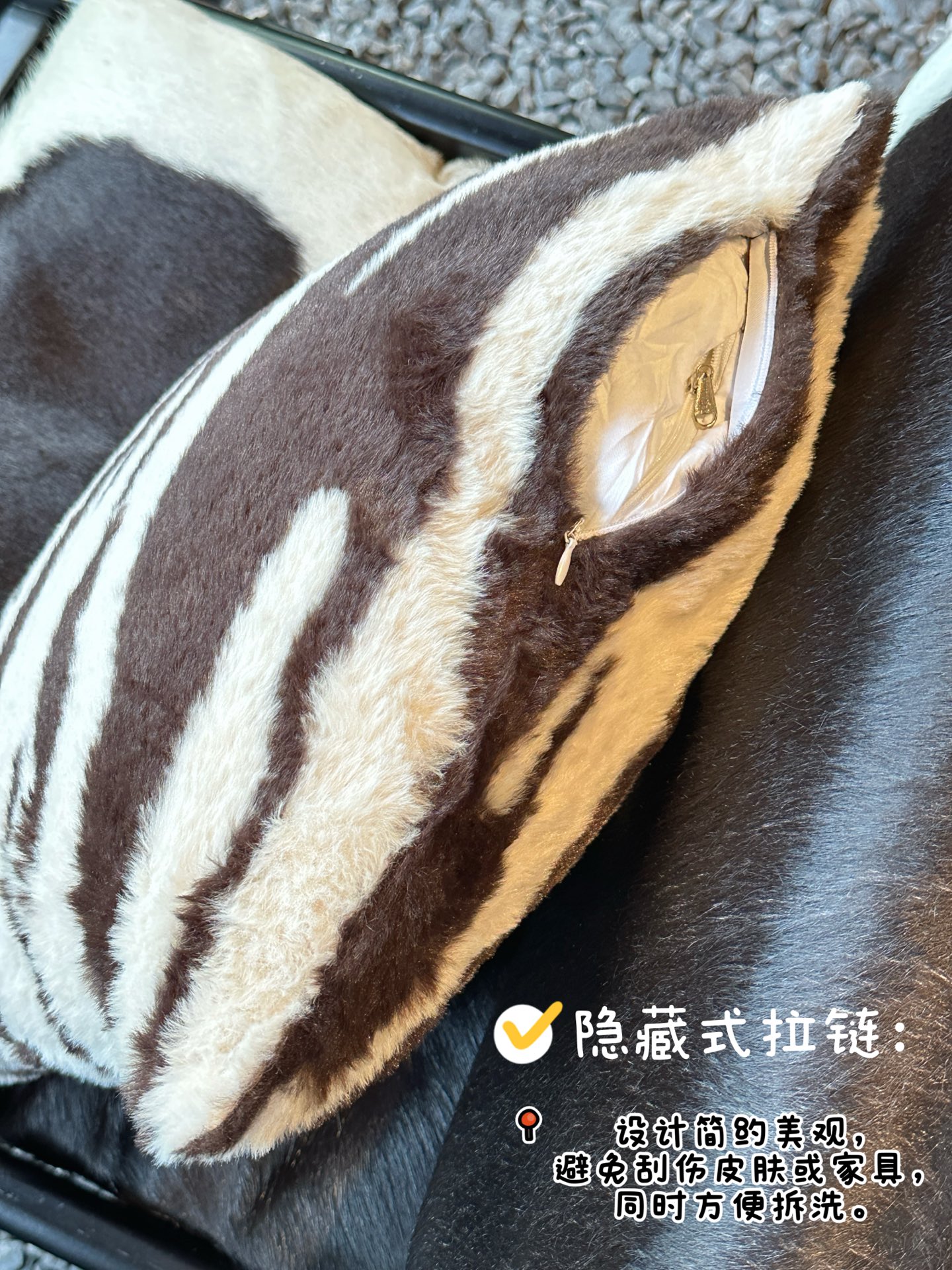一摸就上瘾的治愈感!这款斑马纹兔毛绒抱枕采用高密度兔毛绒面料,绒毛绵密细腻到像在rua真猫肚皮~🤍 精准纺织工艺让它在柔软的同时做到不易掉毛,怎么揉搓都妥妥的!黑白色系斑马纹高级感拉满,无论是瘫沙发追剧还是办公腰靠,都能瞬间提升舒适度和氛围感。