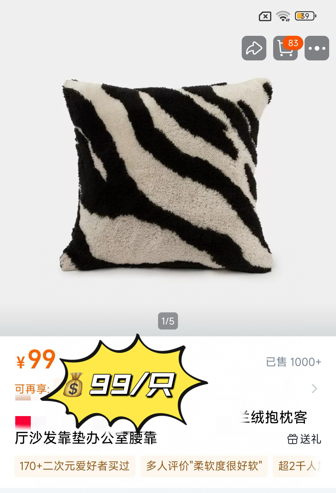 野&兽同款斑马纹兔毛绒抱枕!🌟【野&*兽同款斑马纹兔毛绒抱枕|放哪里都是高级感大片】🌟 🌟【撸猫般触感!斑马纹兔毛绒抱枕|不掉毛+巨柔软】🌟。