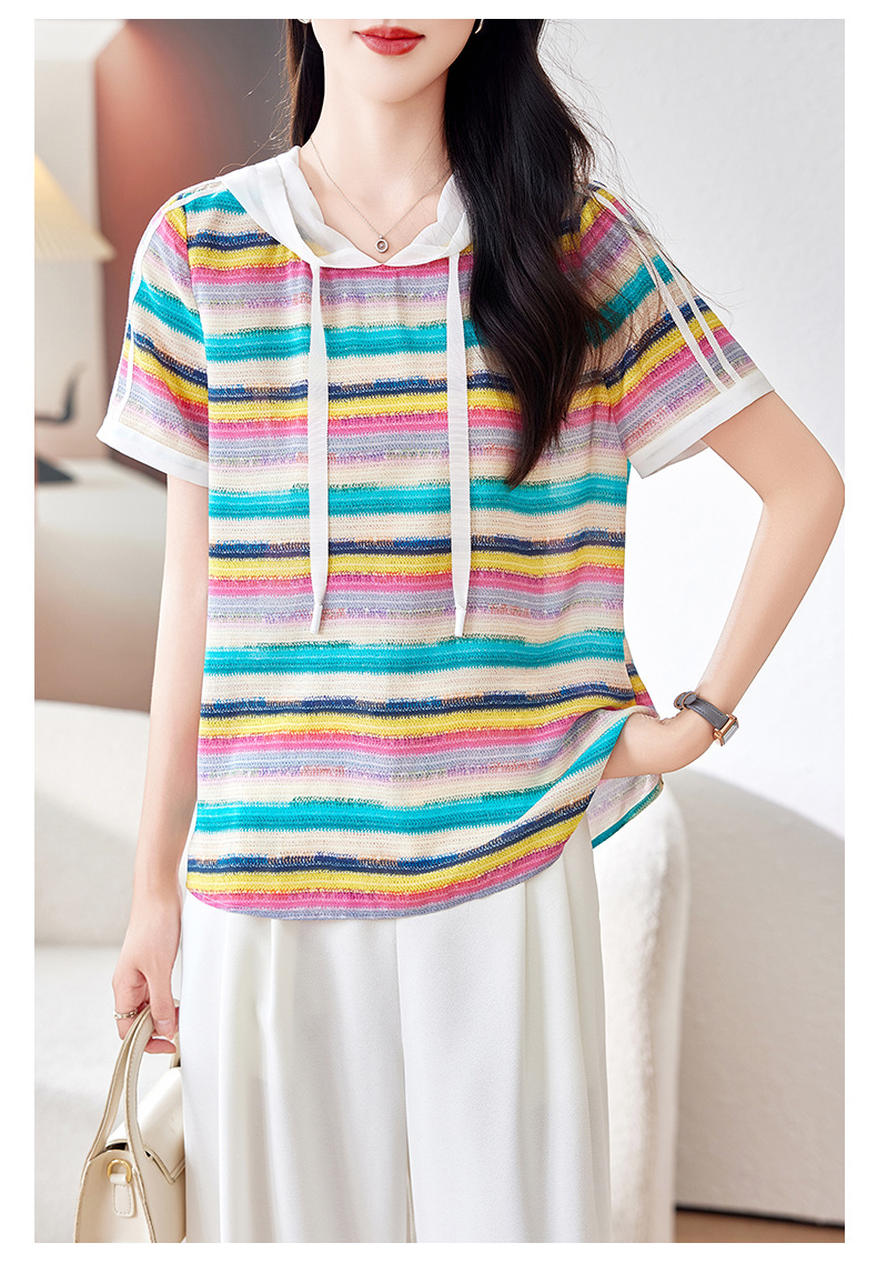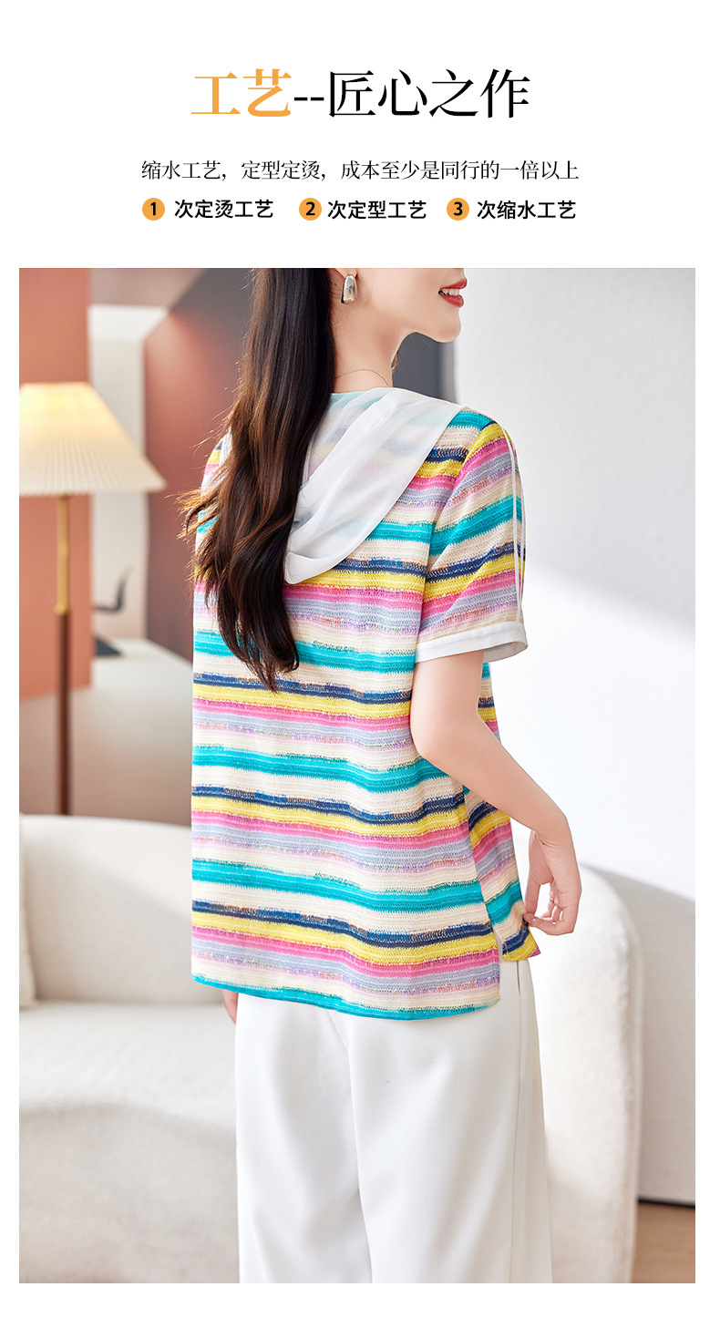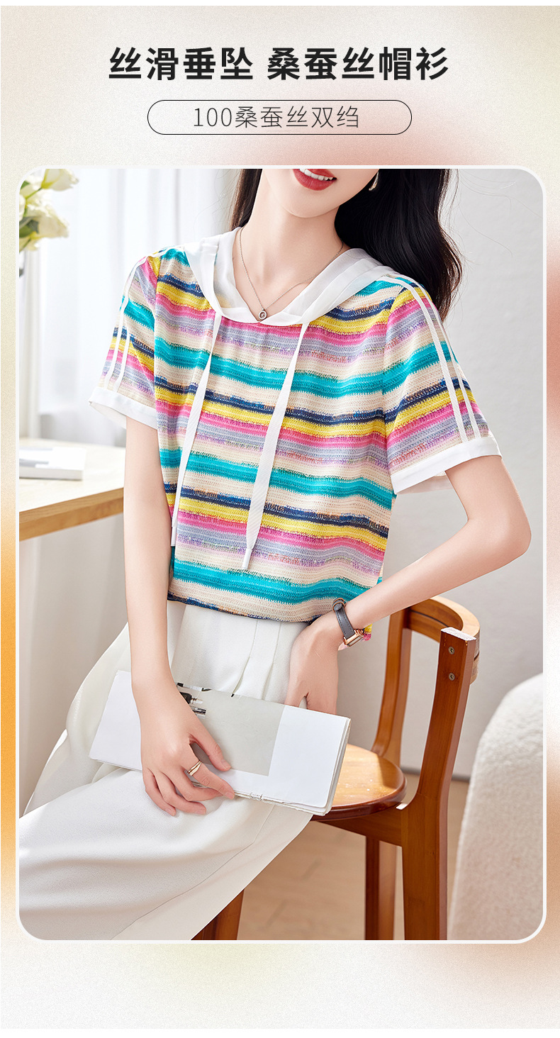 丁摩 桑蚕丝撞色真丝衬衫条纹短袖0202