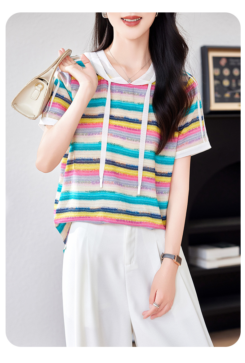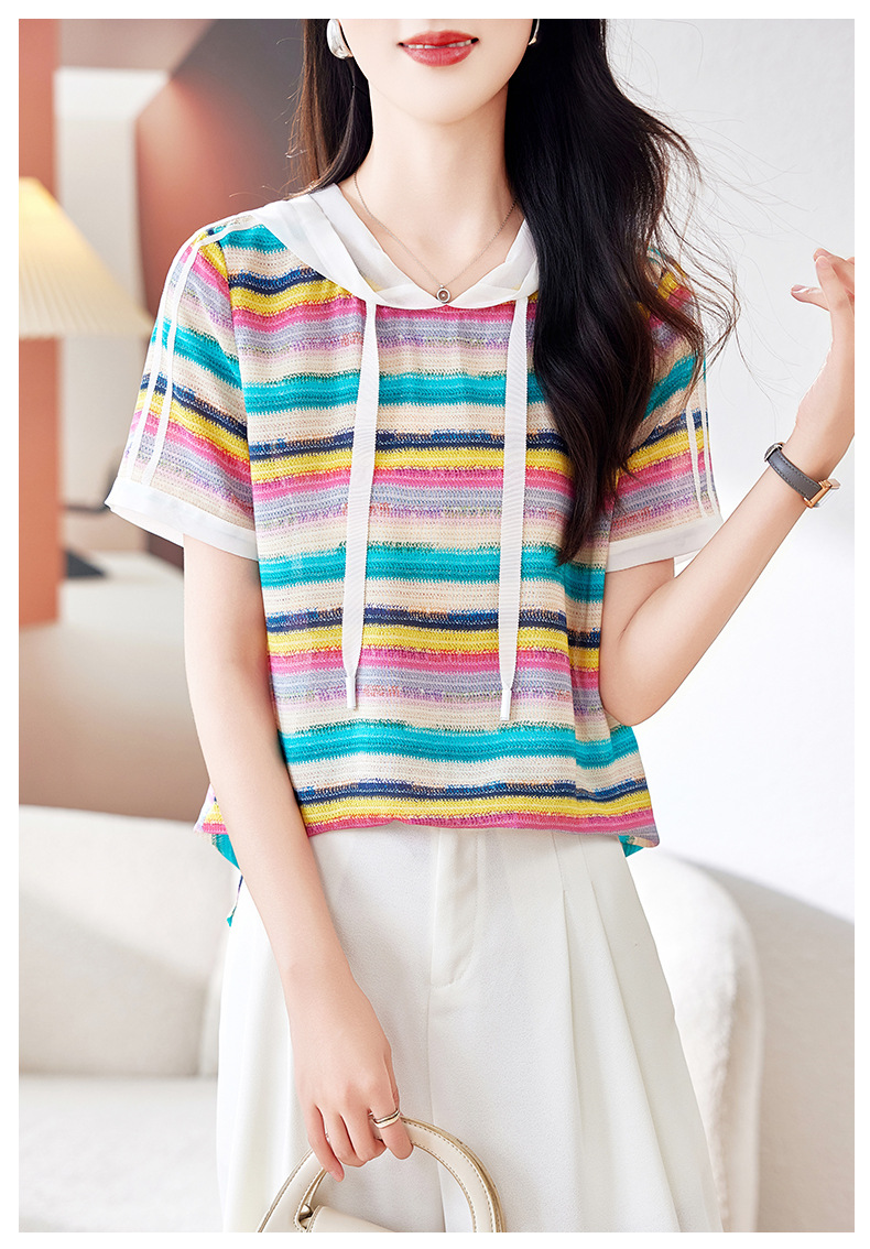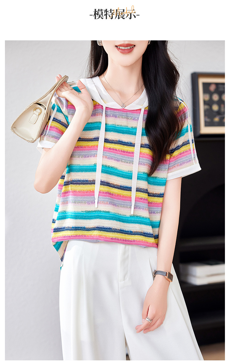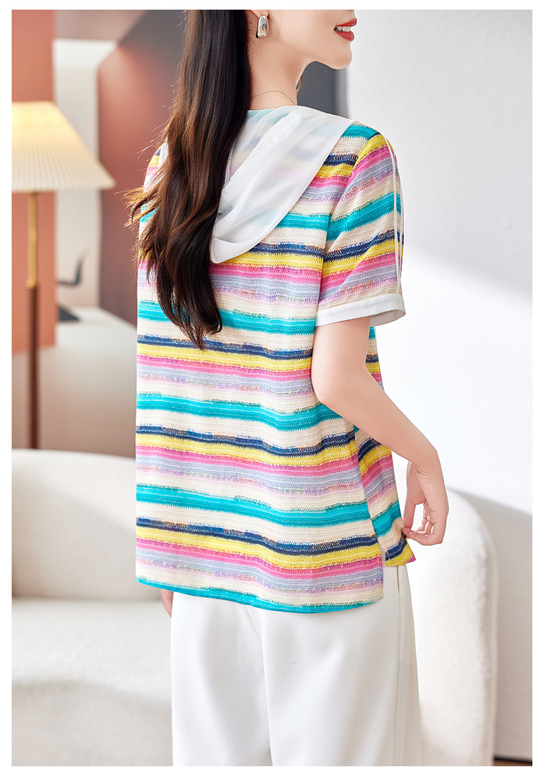 丁摩 桑蚕丝撞色真丝衬衫条纹短袖0202