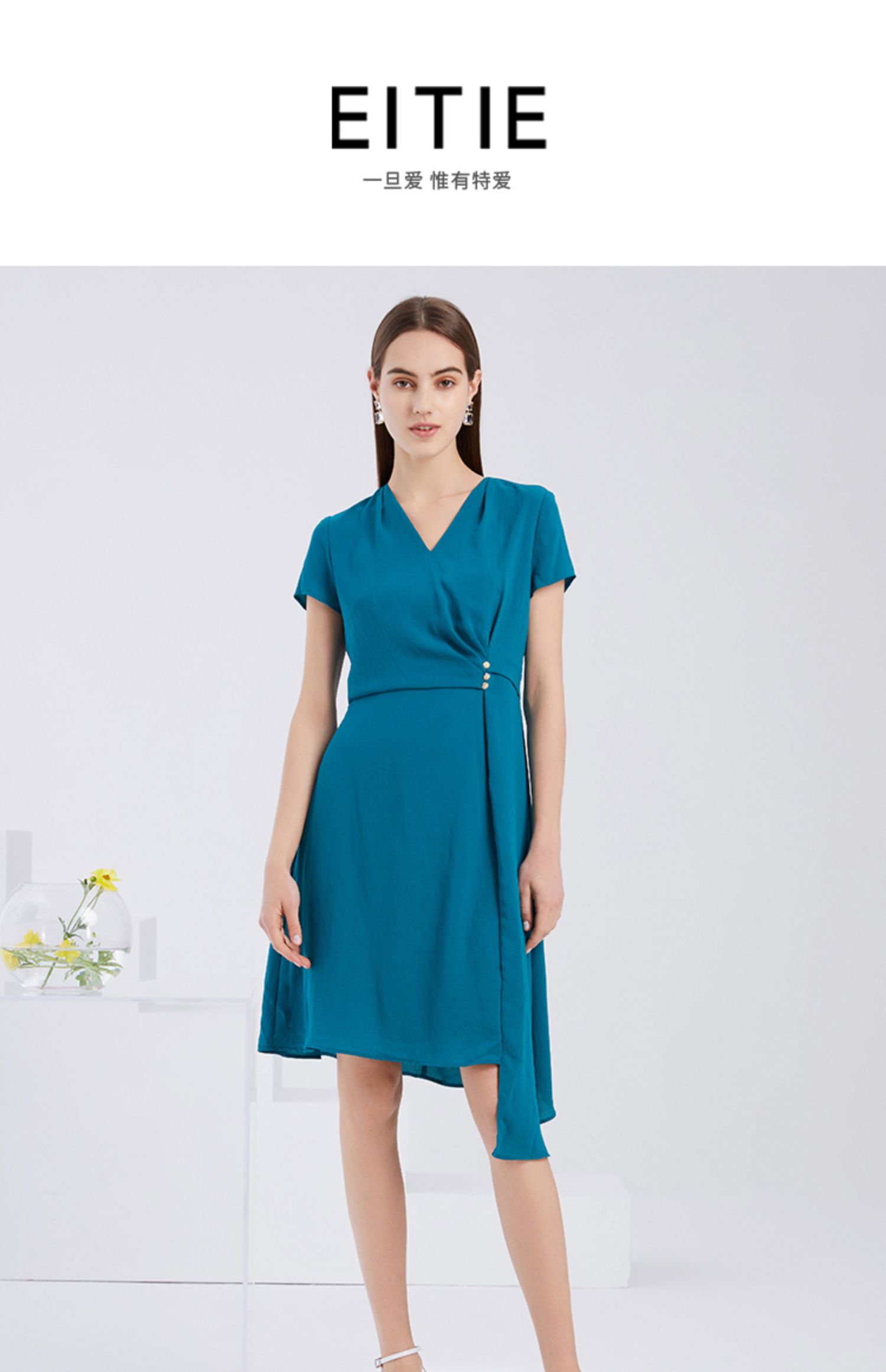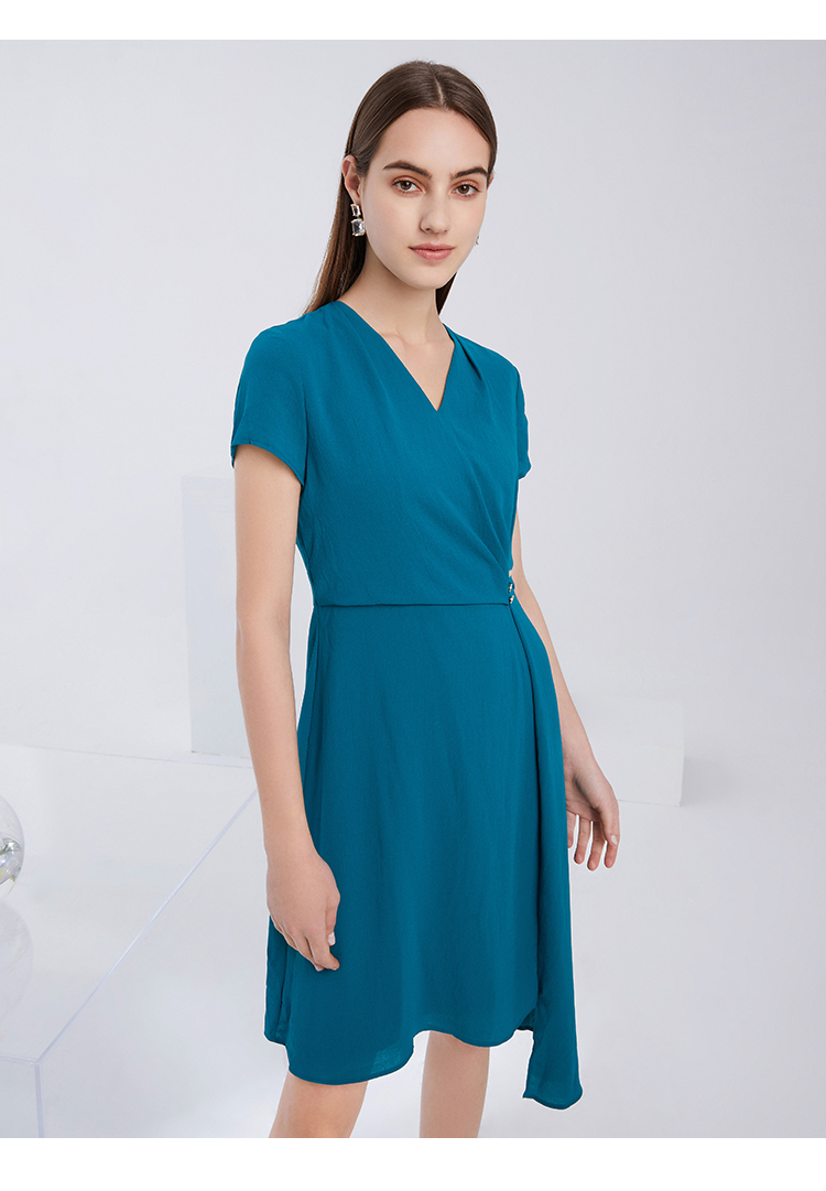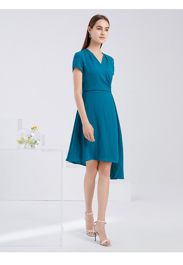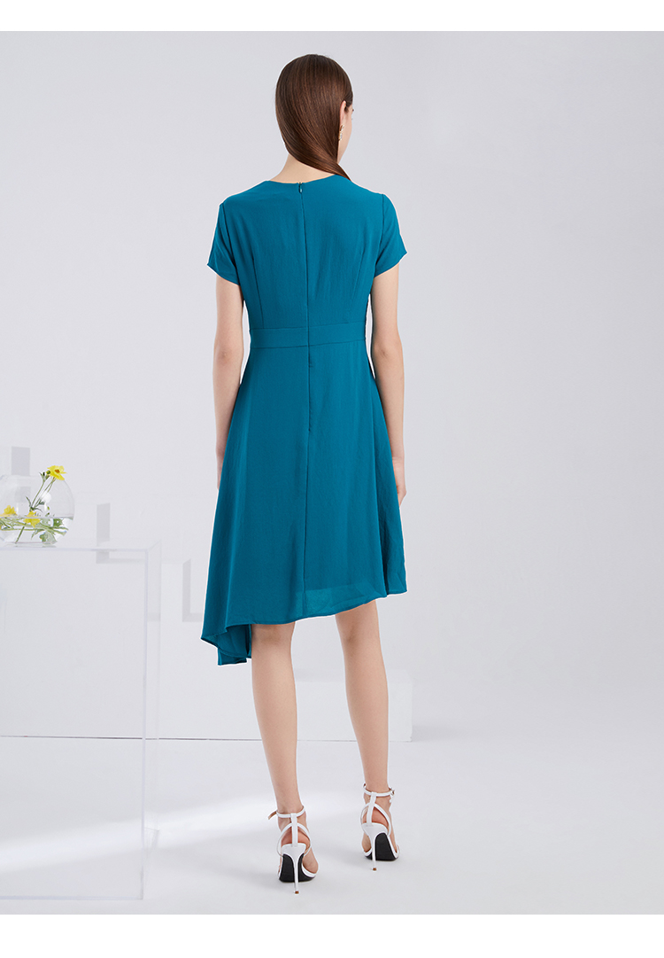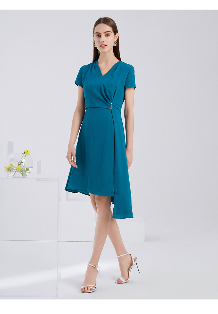 EITIE爱特爱夏季新款气质V领收腰显瘦不规则A字裙摆连衣裙女6207959