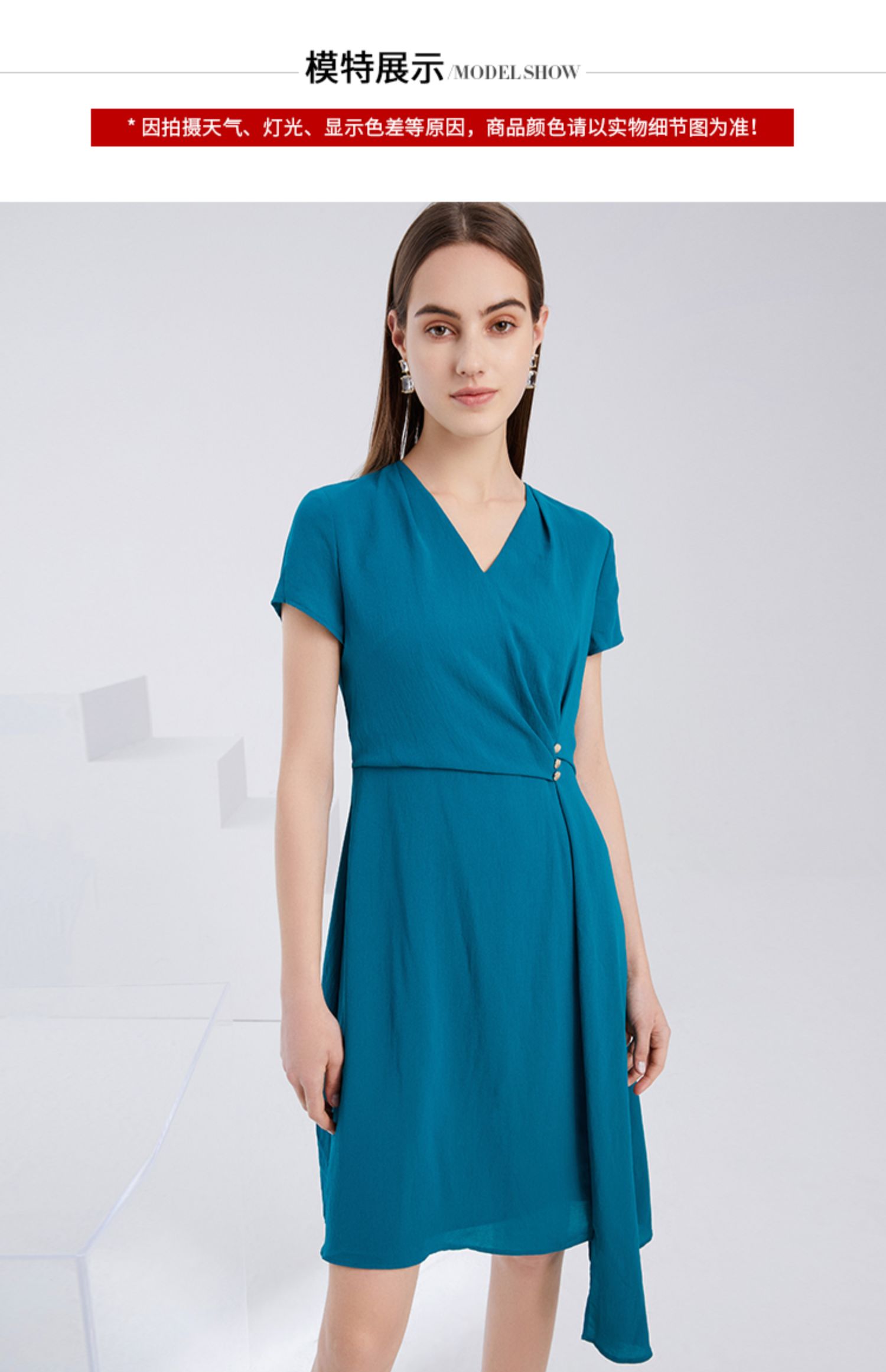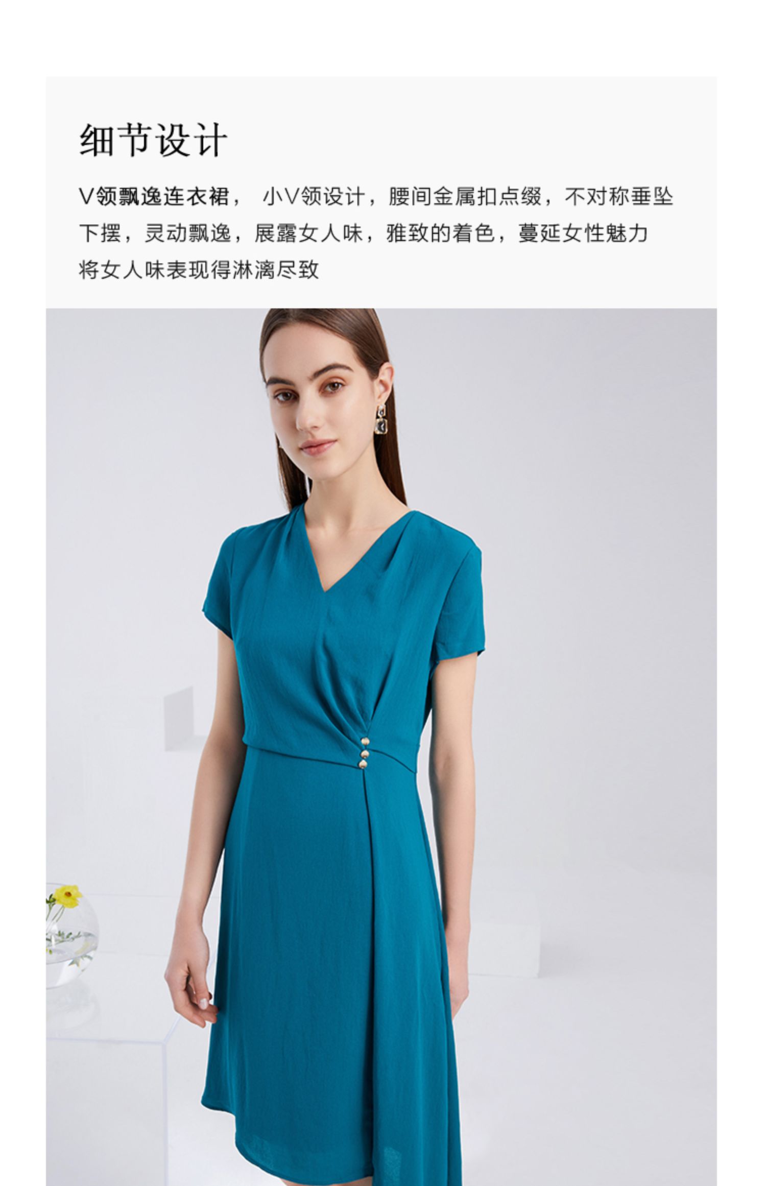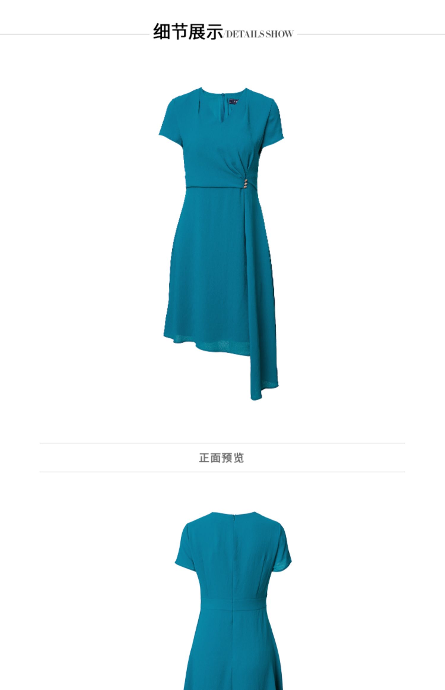 EITIE爱特爱夏季新款气质V领收腰显瘦不规则A字裙摆连衣裙女6207959
