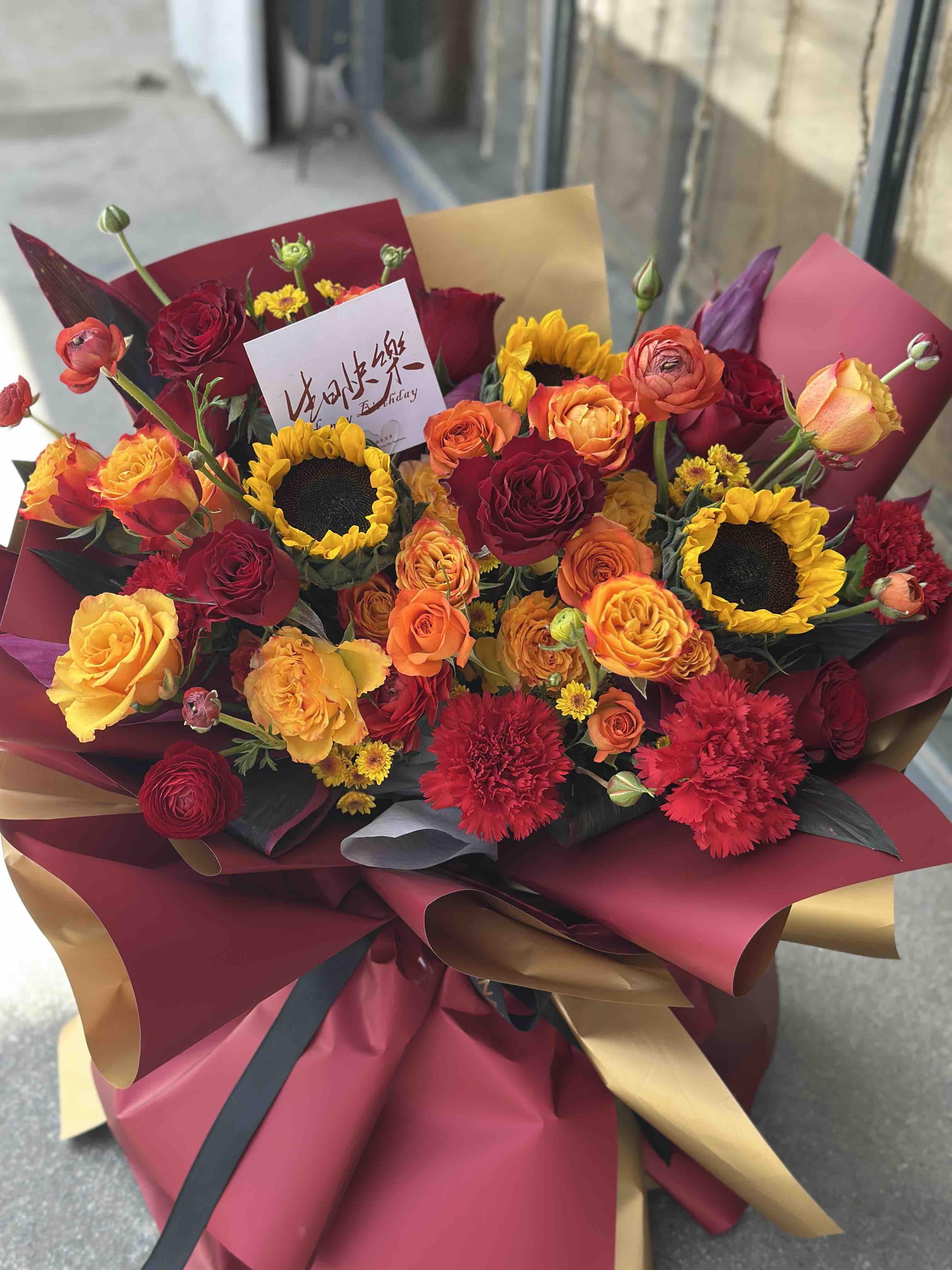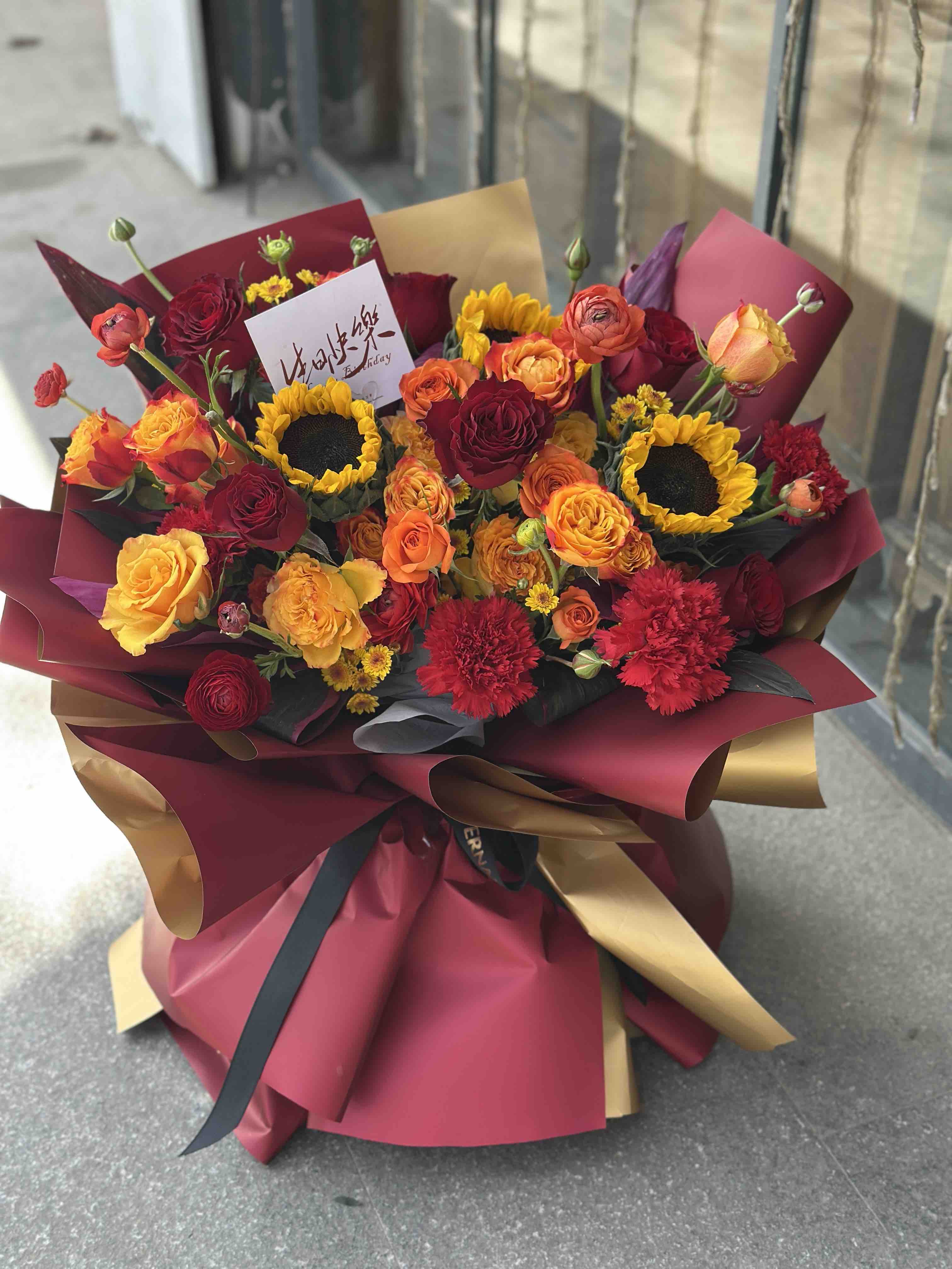 【产品规格】花材丰富饱满 如图包装,花都是下单后现做,1-2小时送达 ( 节日只保证当天送达,请理解)。下单请填写订花人电话谢谢,和送达时间,防止联系不到收花人。本店都是当天新到花材,如图包装制作,(部分花材缺货可能用相似或等价值花材替换)如查询配送进度可以联系我们。我们免费赠送可利鲜鲜花保鲜剂和一张贺卡,贺卡内容需要下单填写哦。