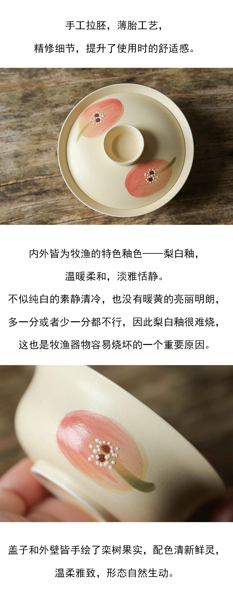 茶香记 牧渔 小乔栾树盖碗 陶瓷 景德镇手作 手工薄胎 生动手绘 清新别致